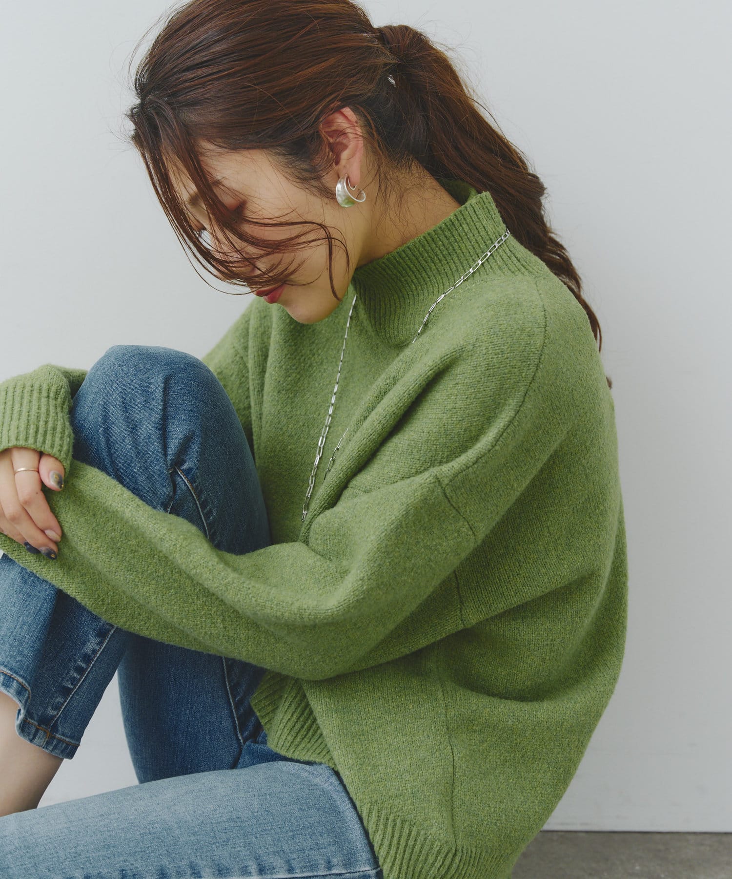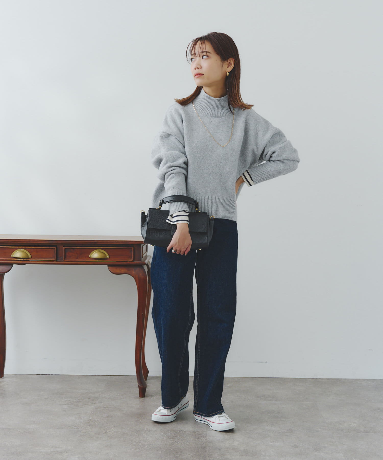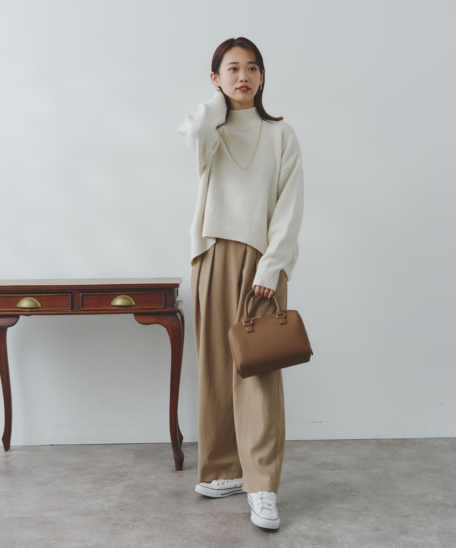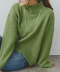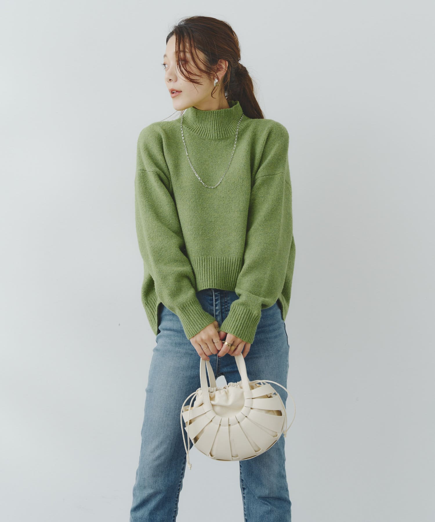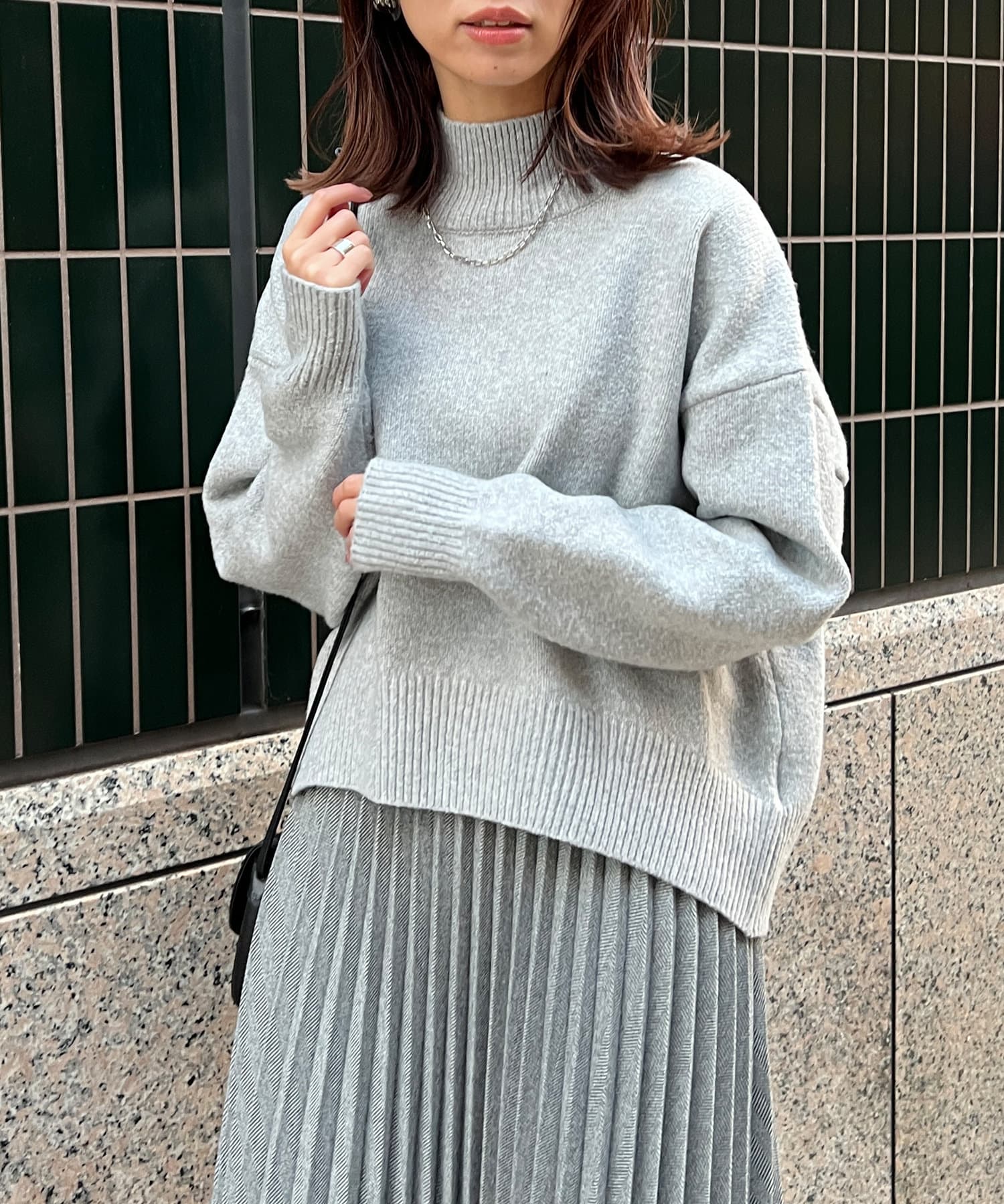 バックスリットがこなれ感を出してくれるシンプルなハイネックニット。