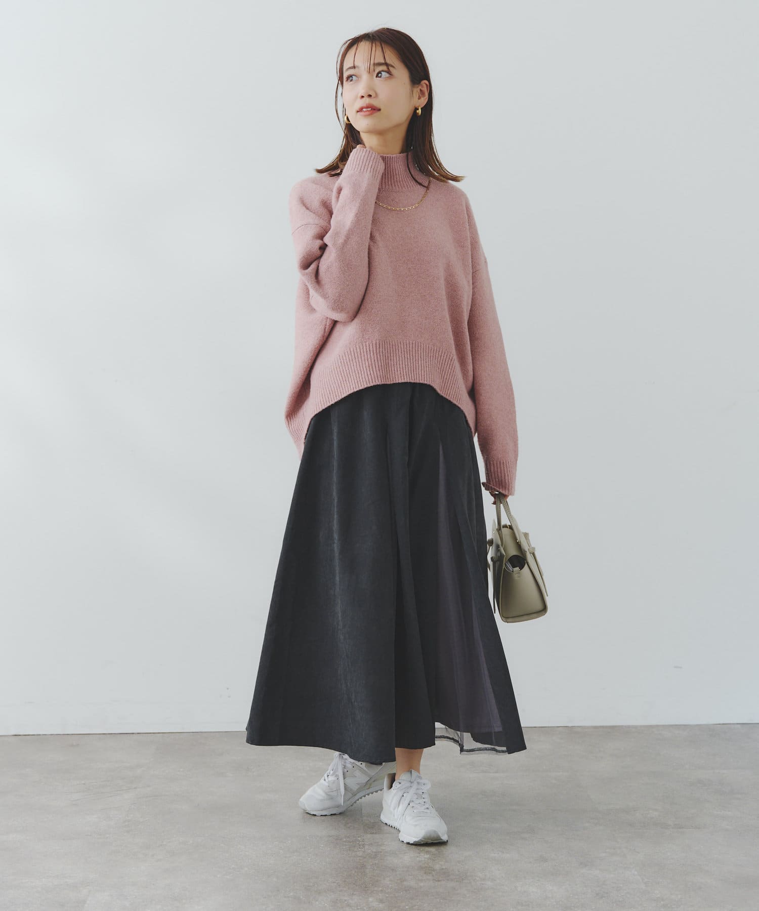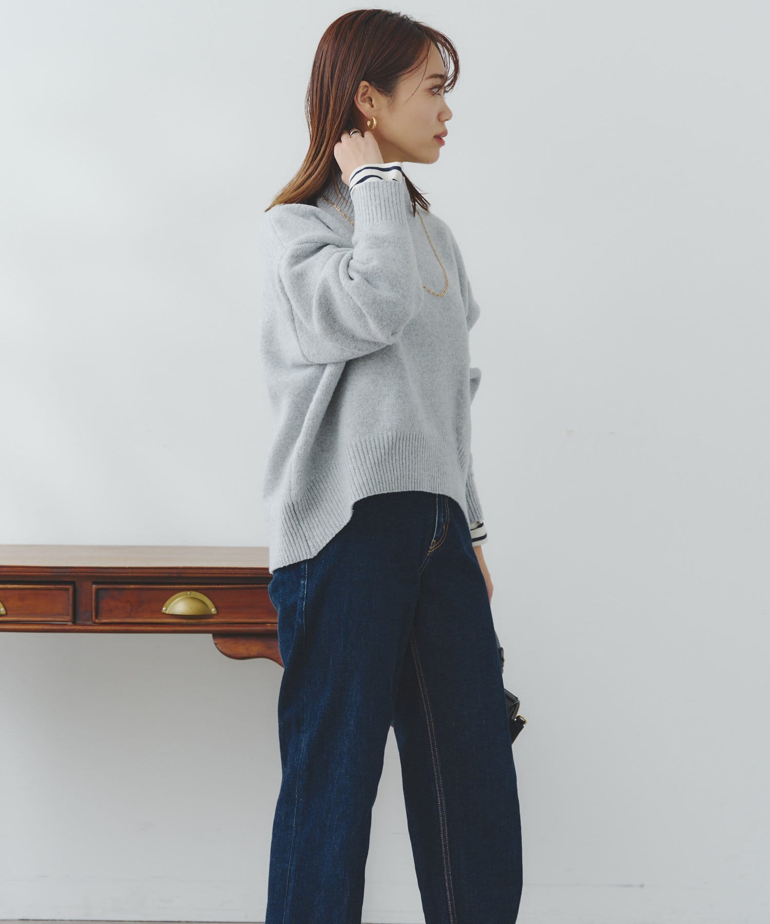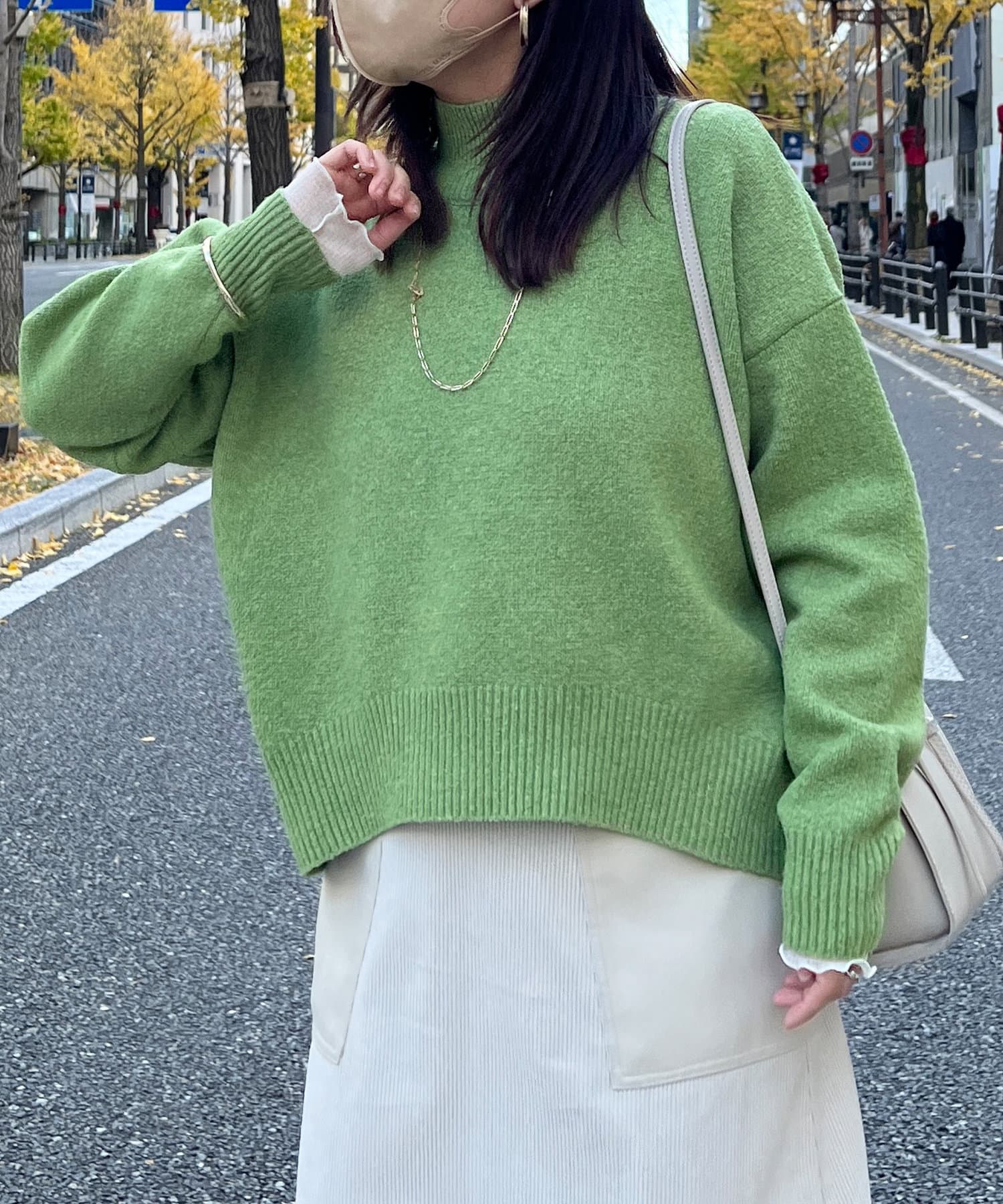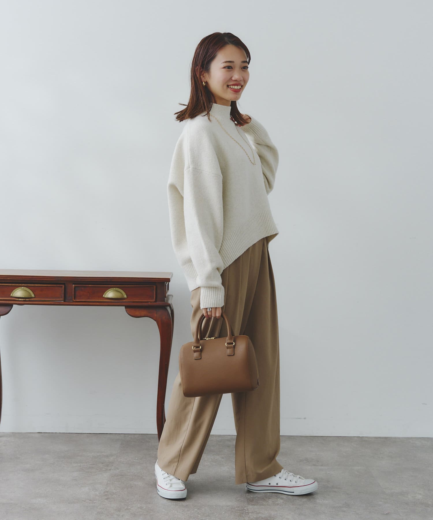 バックスリットがこなれ感を出してくれるシンプルなハイネックニット。
