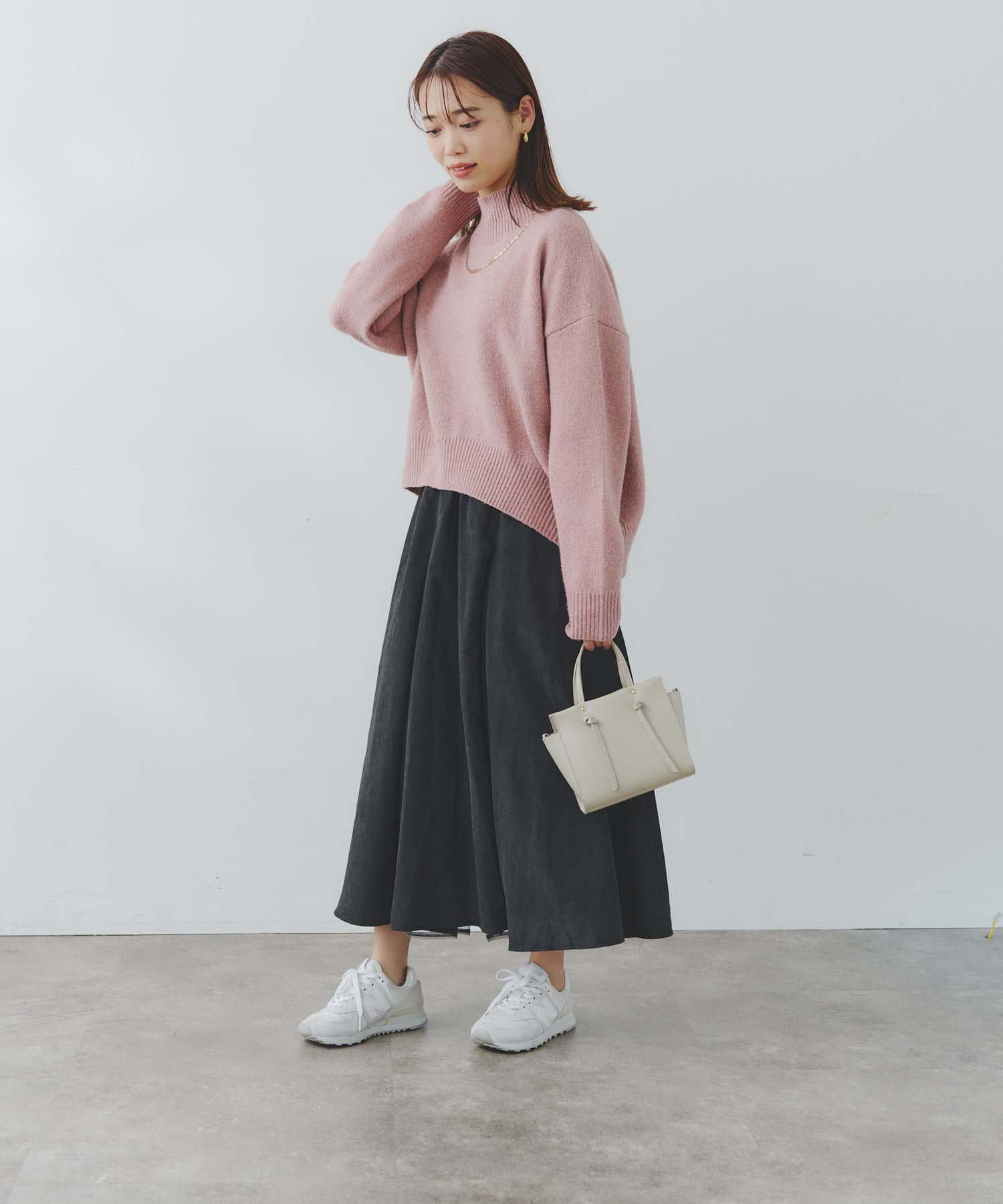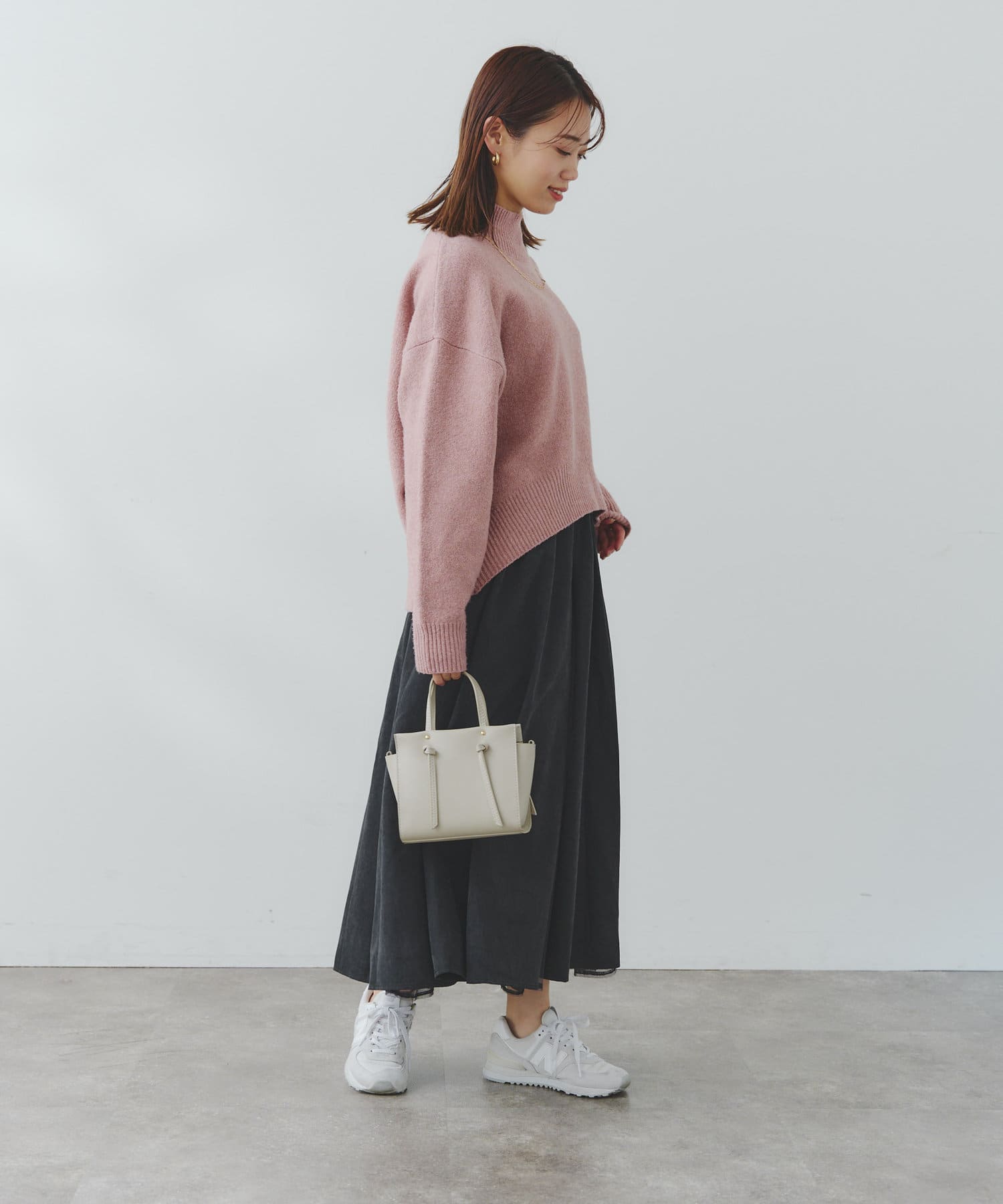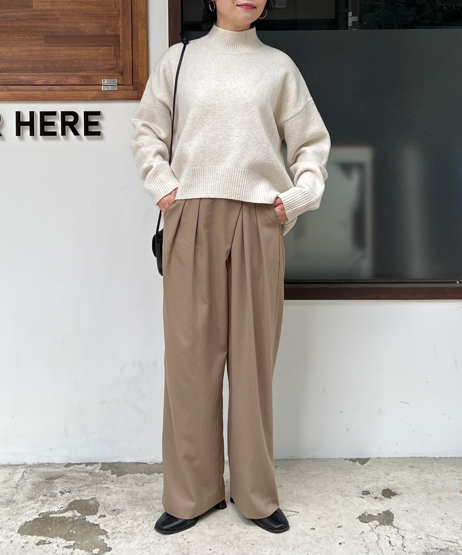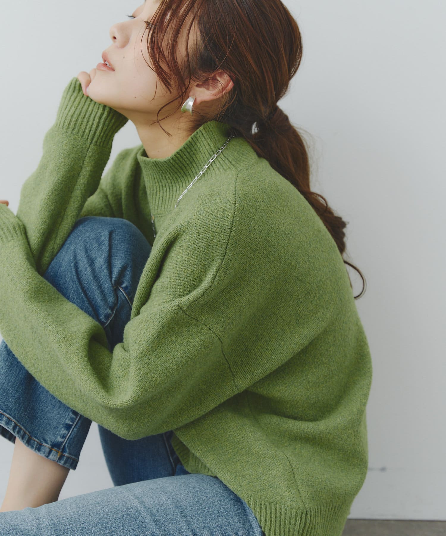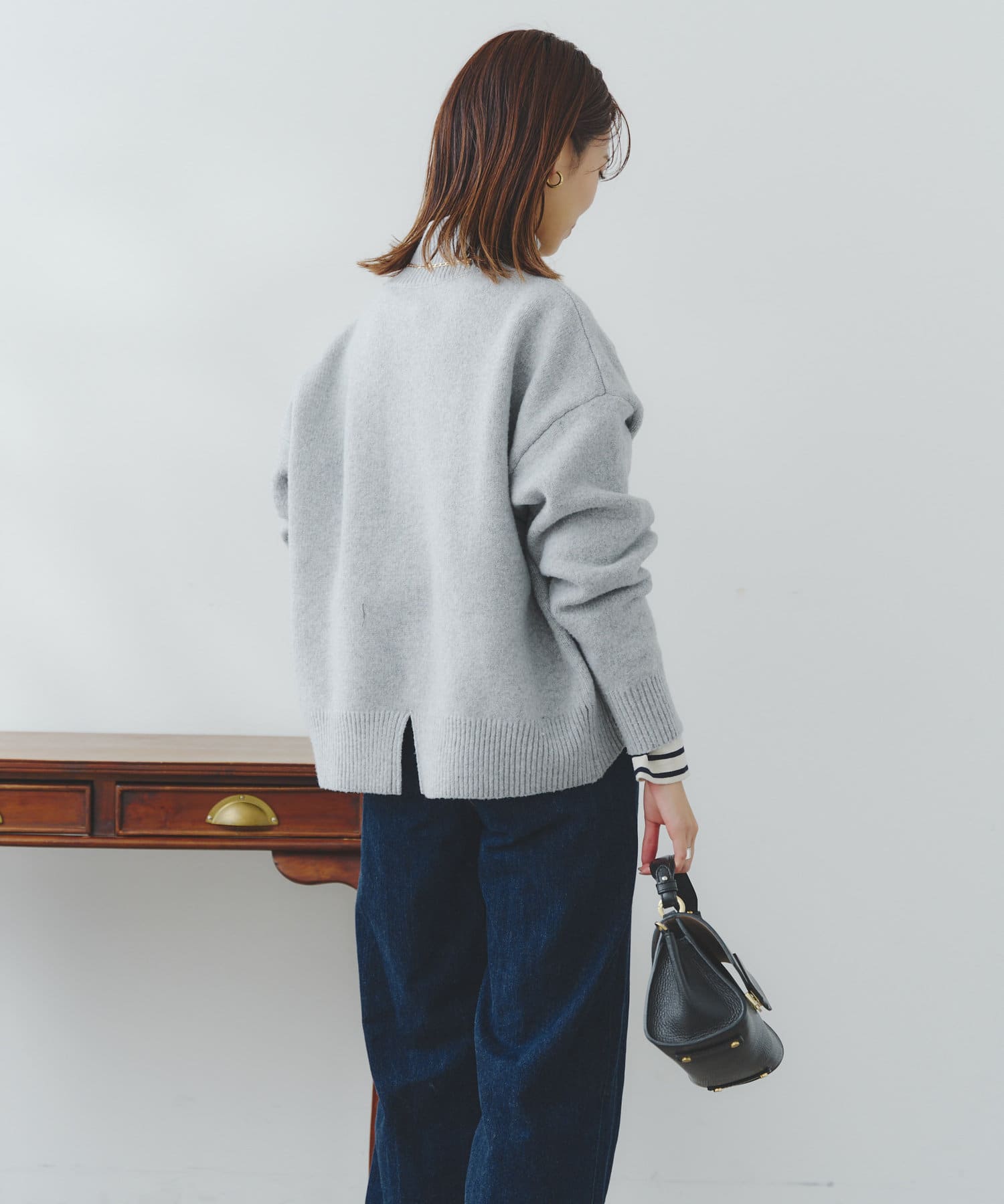 バックスリットがこなれ感を出してくれるシンプルなハイネックニット。
