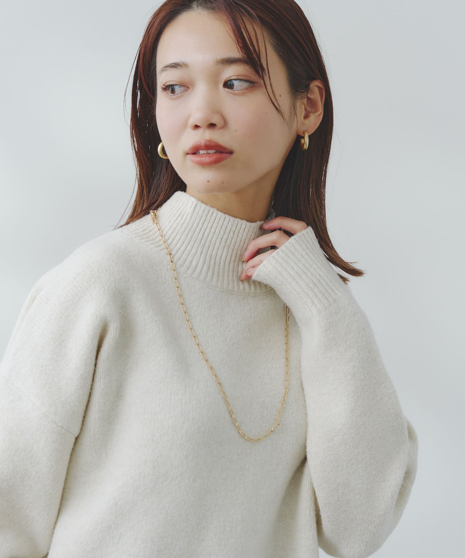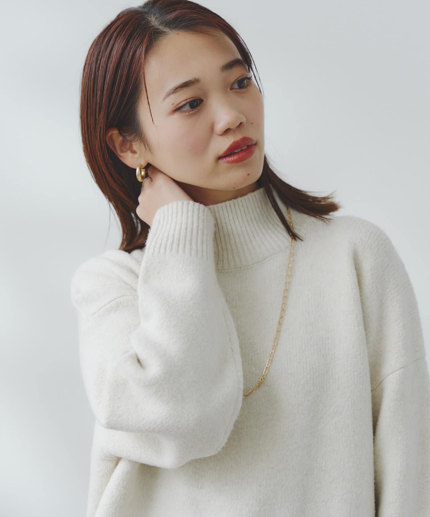 チクチク感のない肌当たりが魅力的。さらに、高過ぎないハイネックでお顔周りもすっきりと見せてくれます。