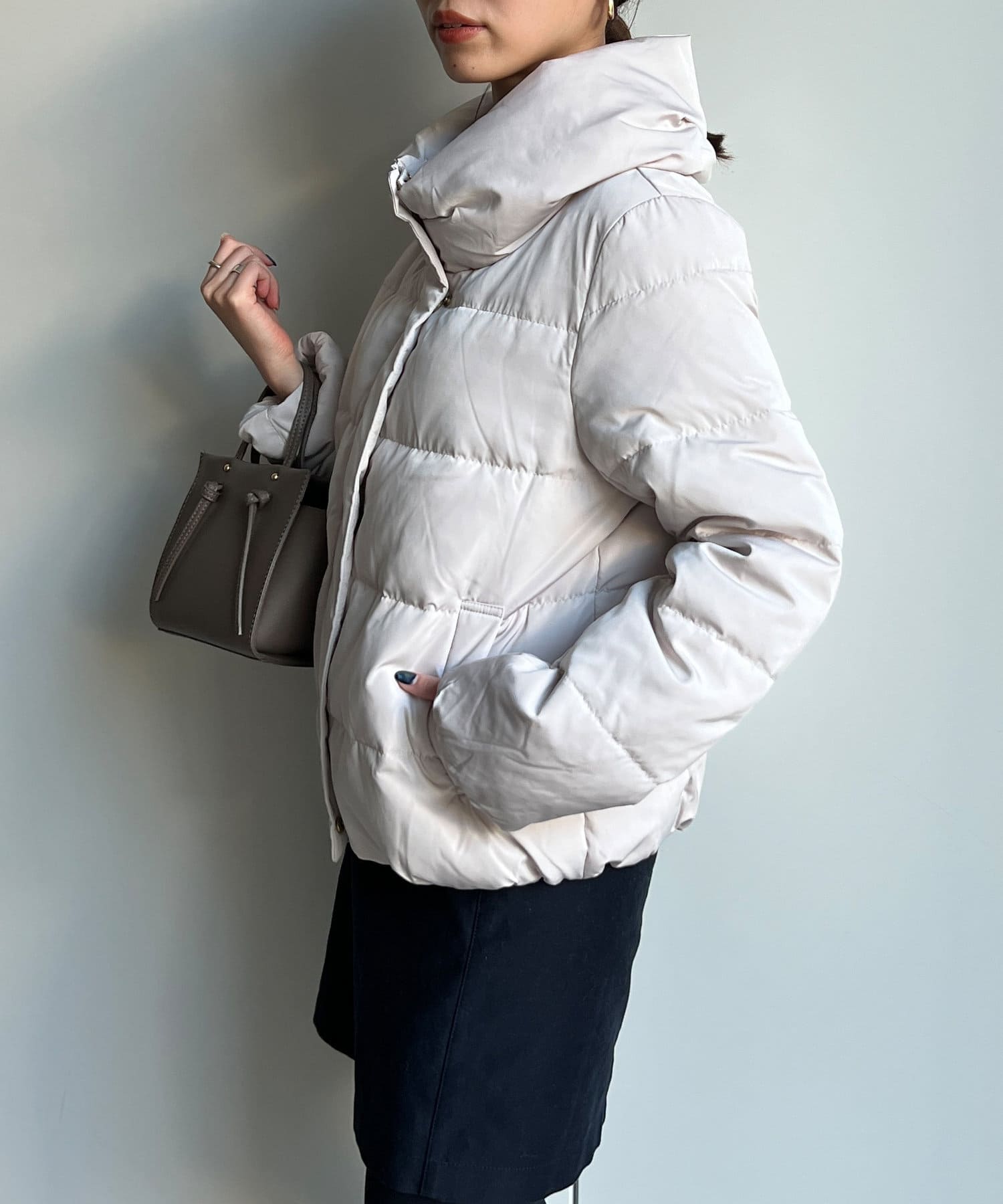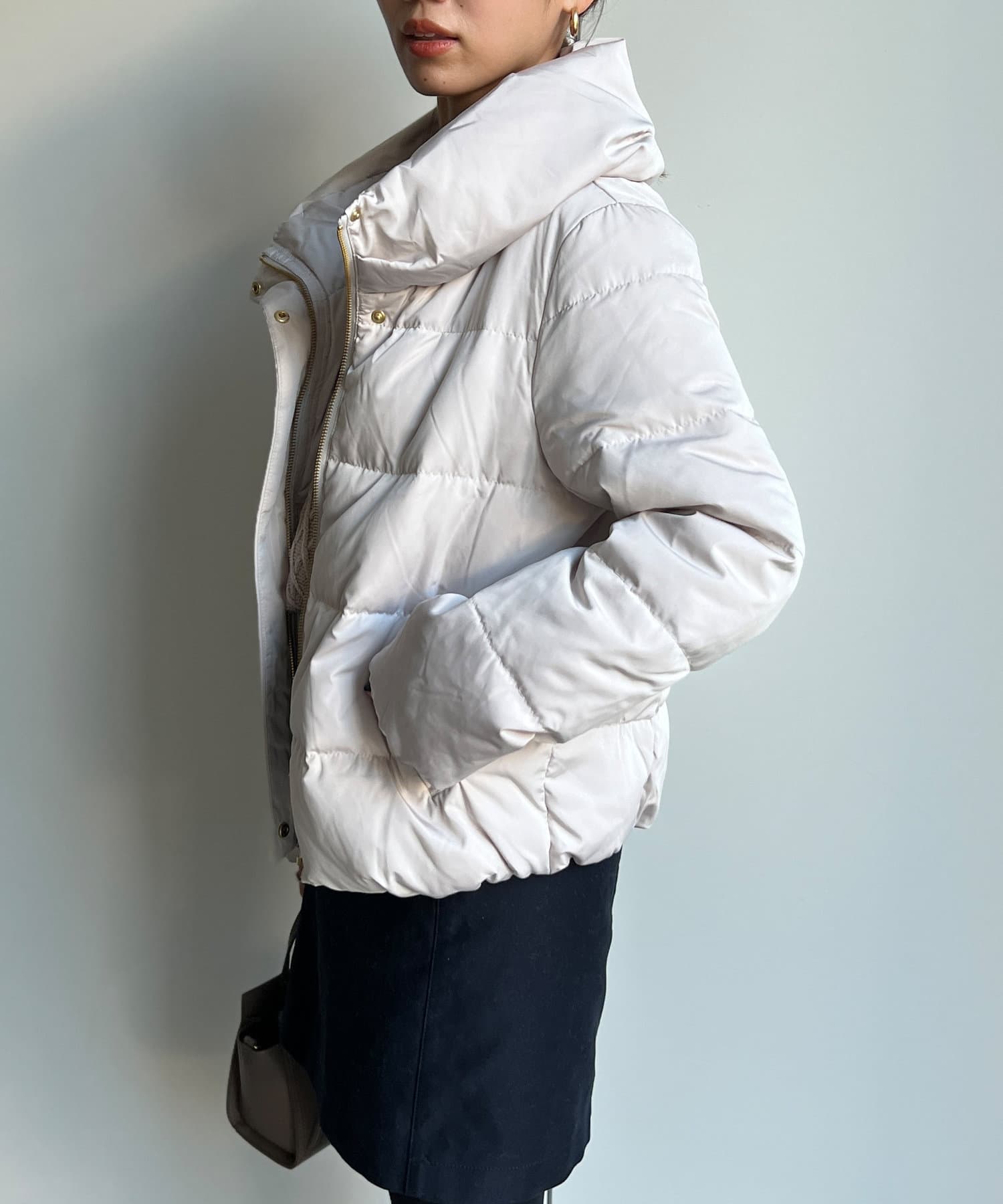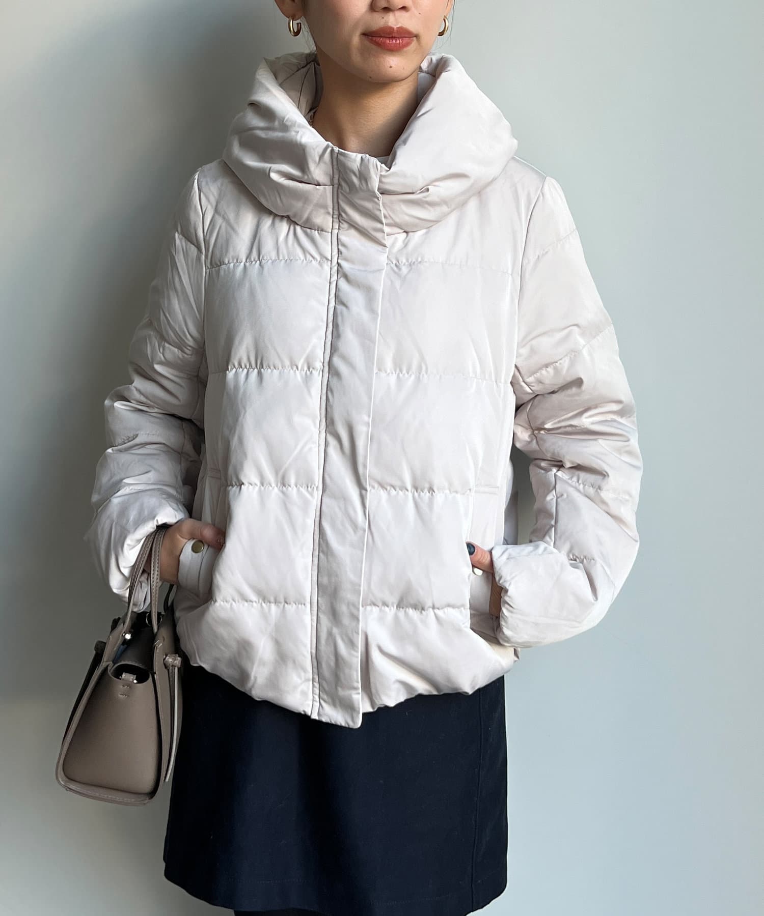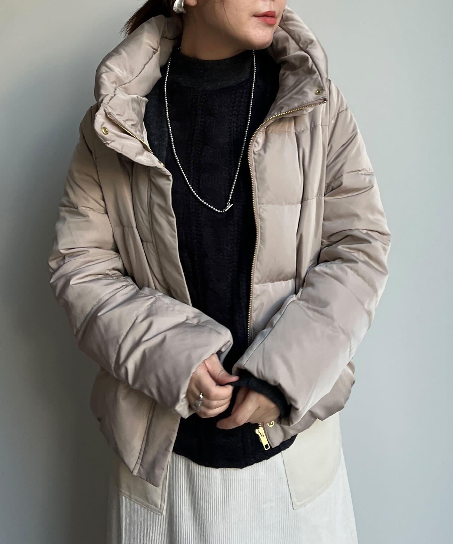 コンパクトなサイズ感と首回りの程よいボリューム感がポイントのショートダウンです。