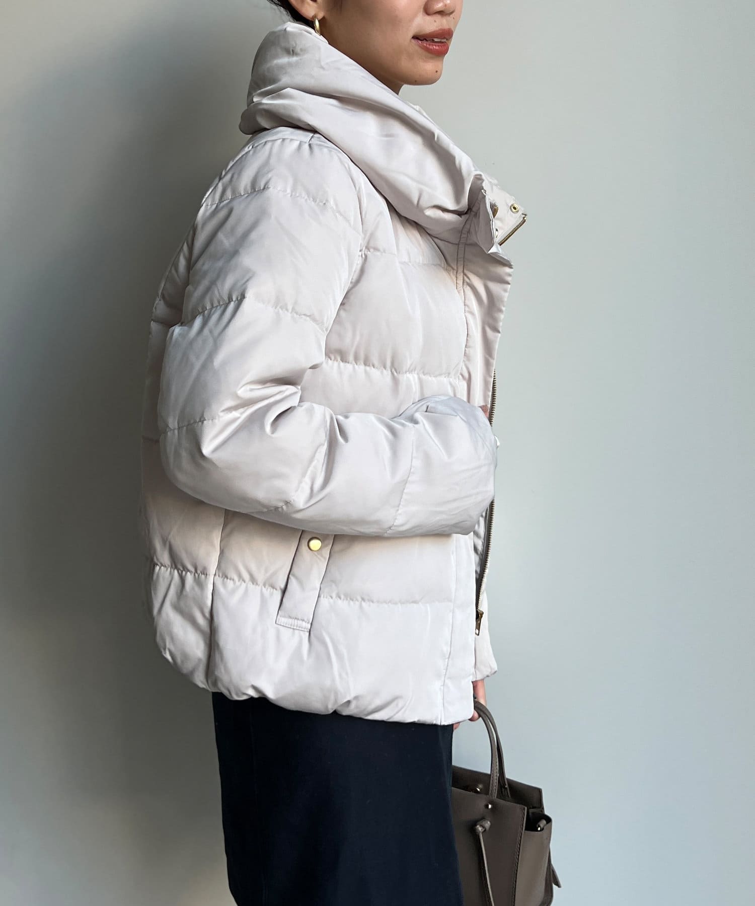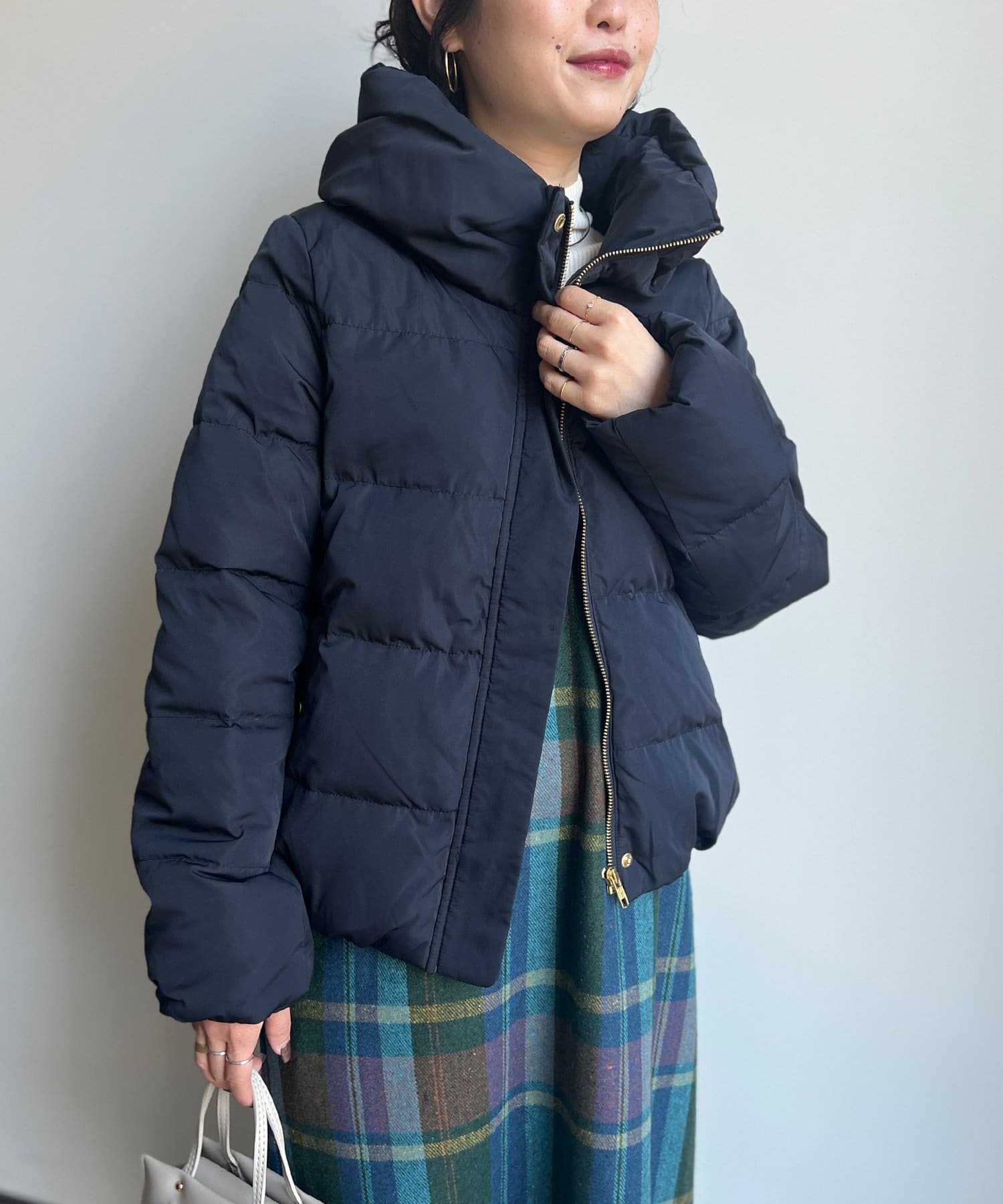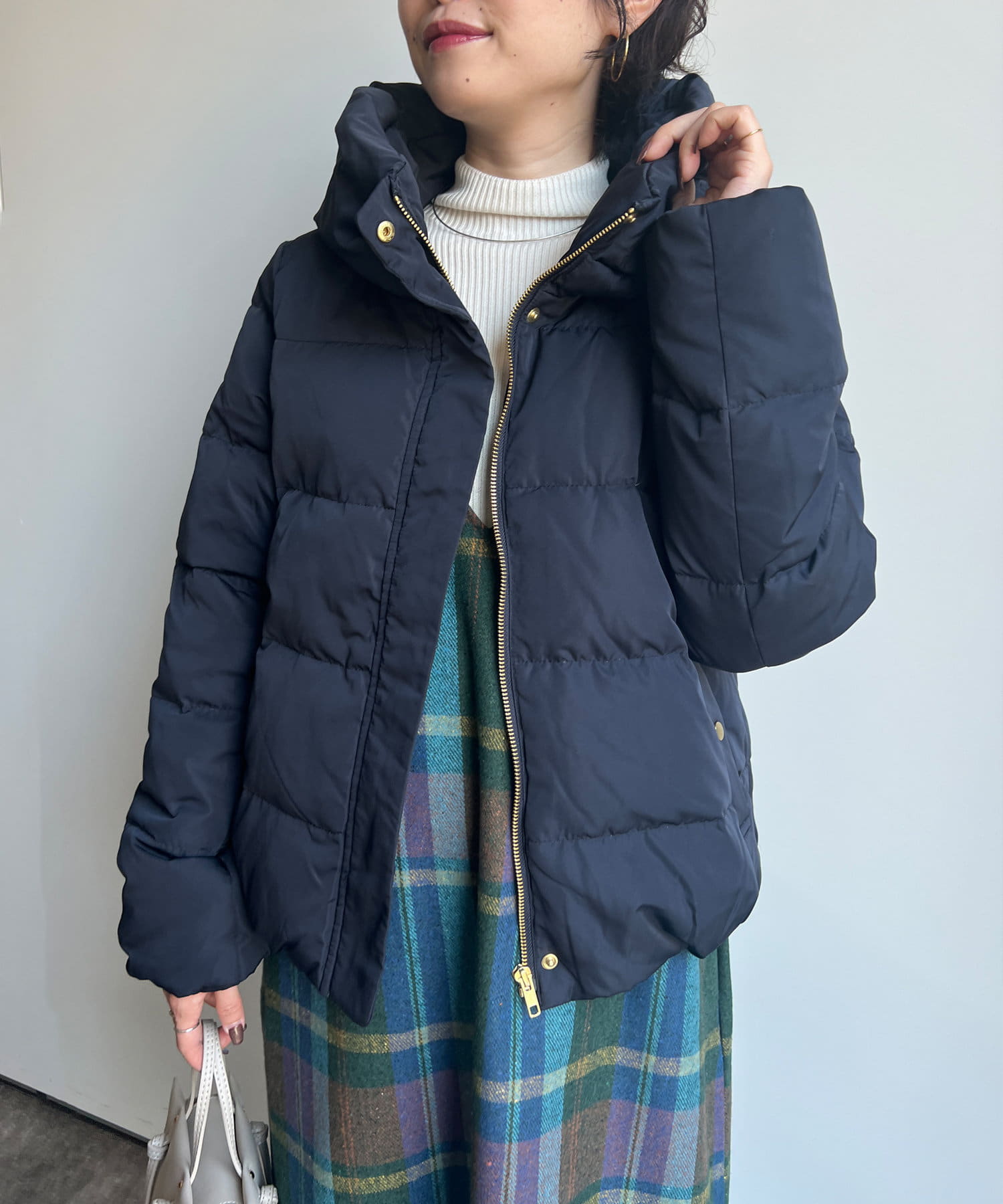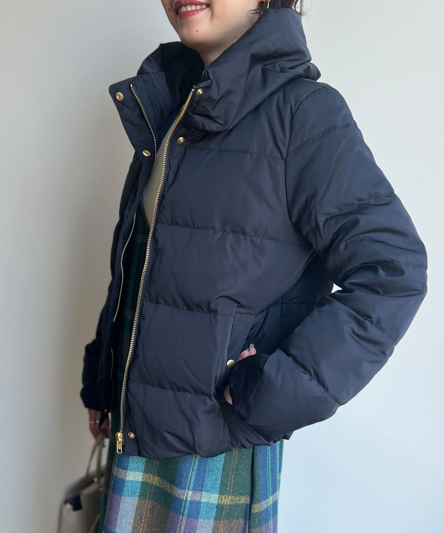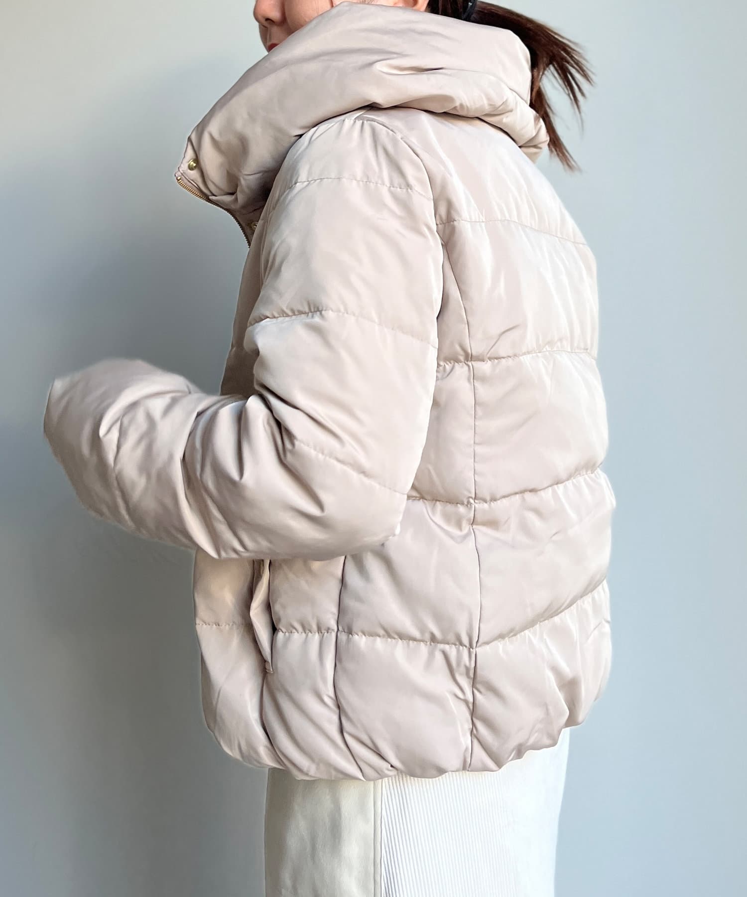 コンパクトなサイズ感と首回りの程よいボリューム感がポイントのショートダウンです。