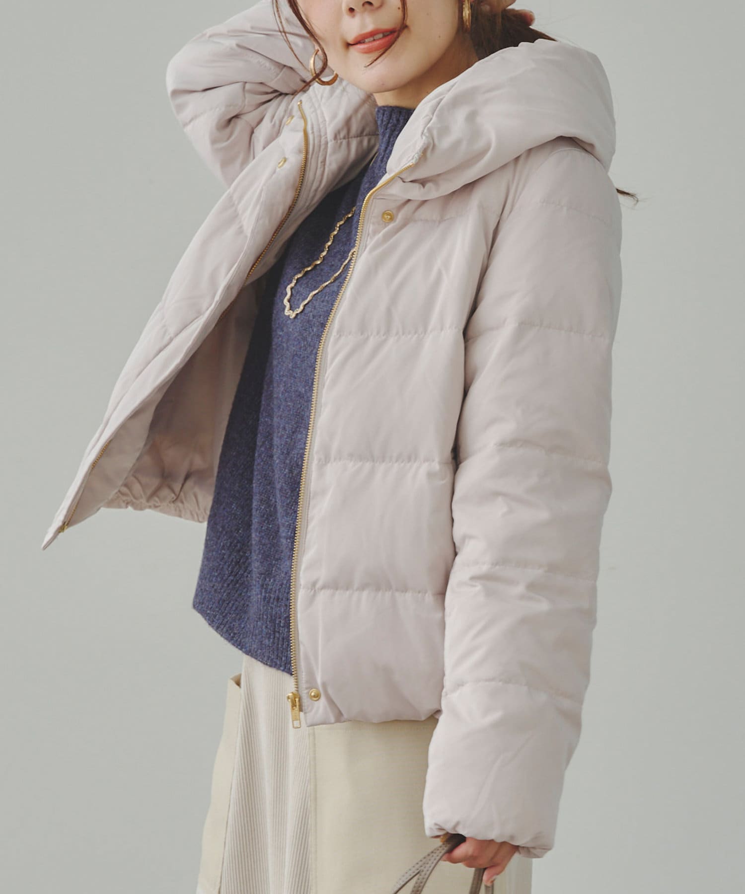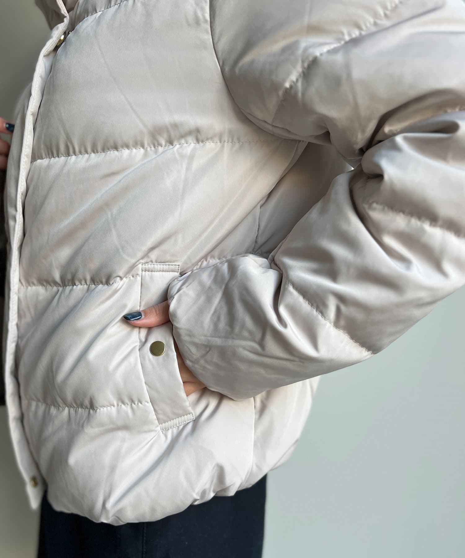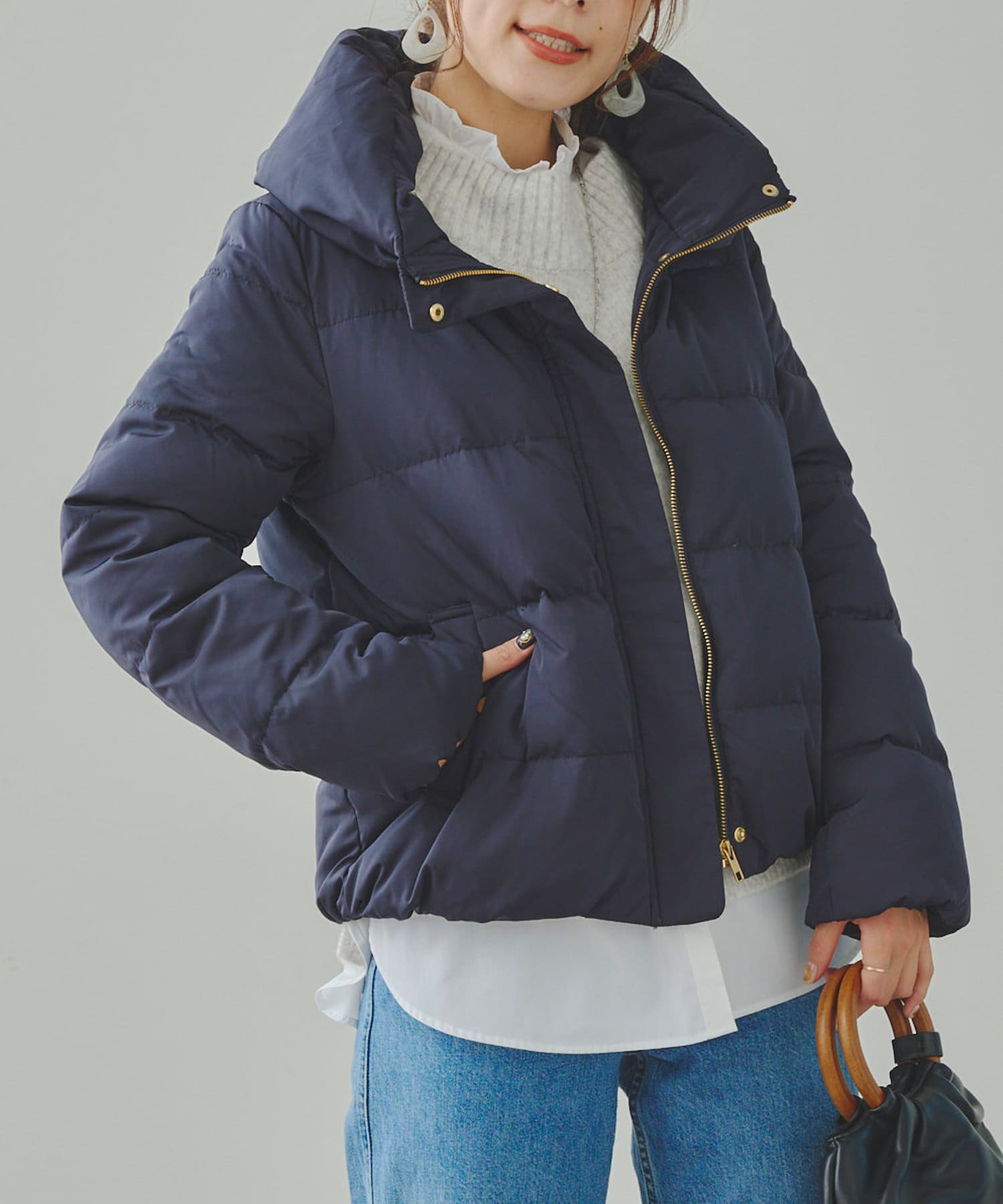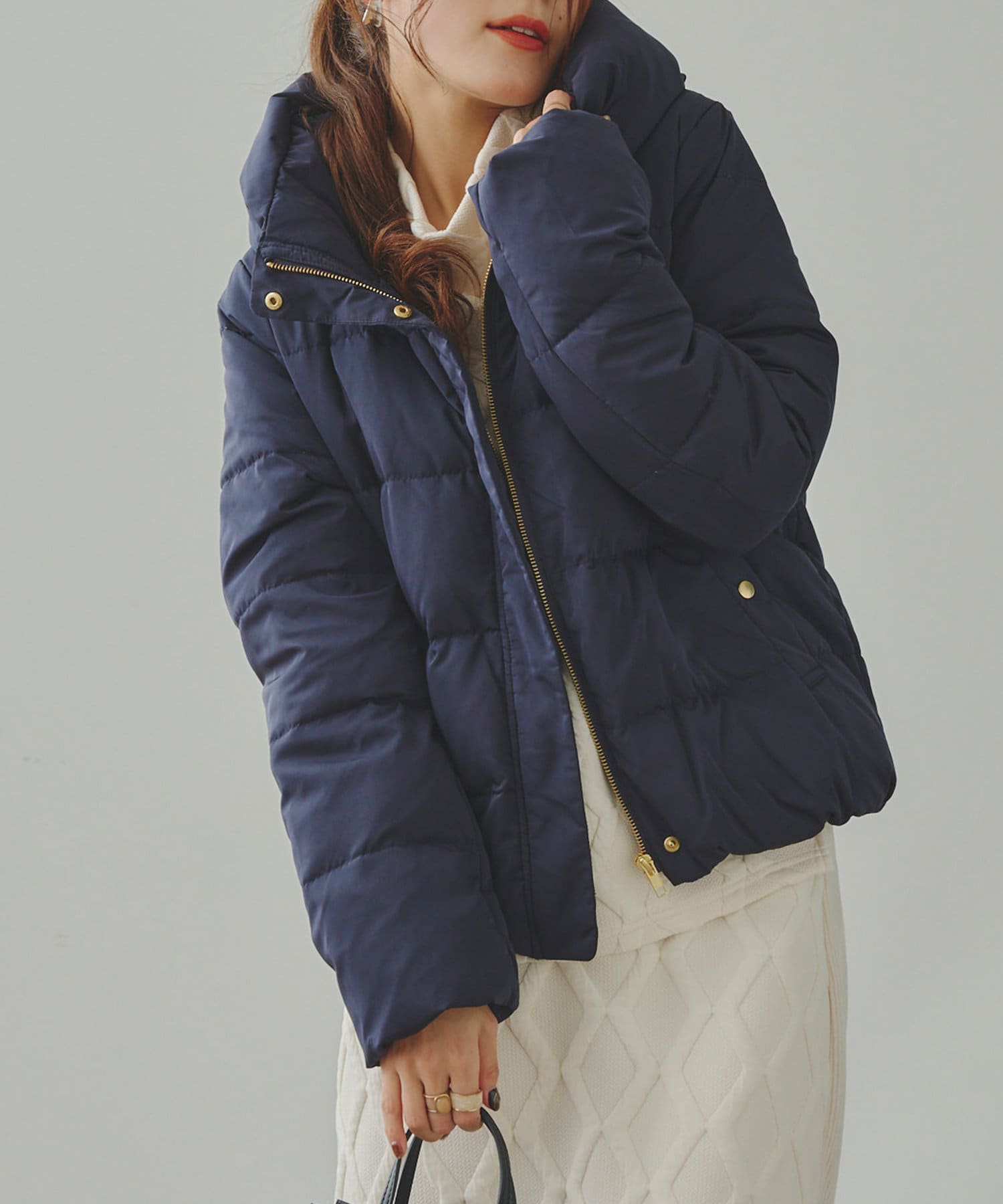 コンパクトなサイズ感と首回りの程よいボリューム感がポイントのショートダウンです。