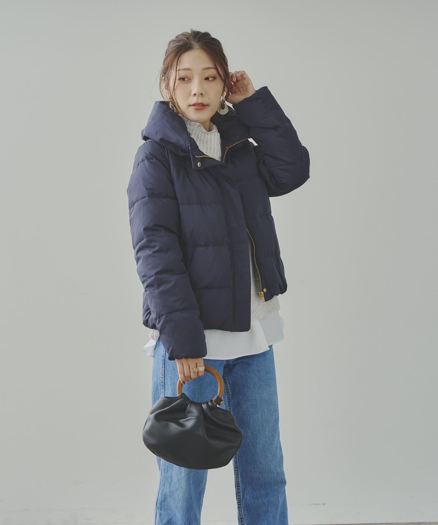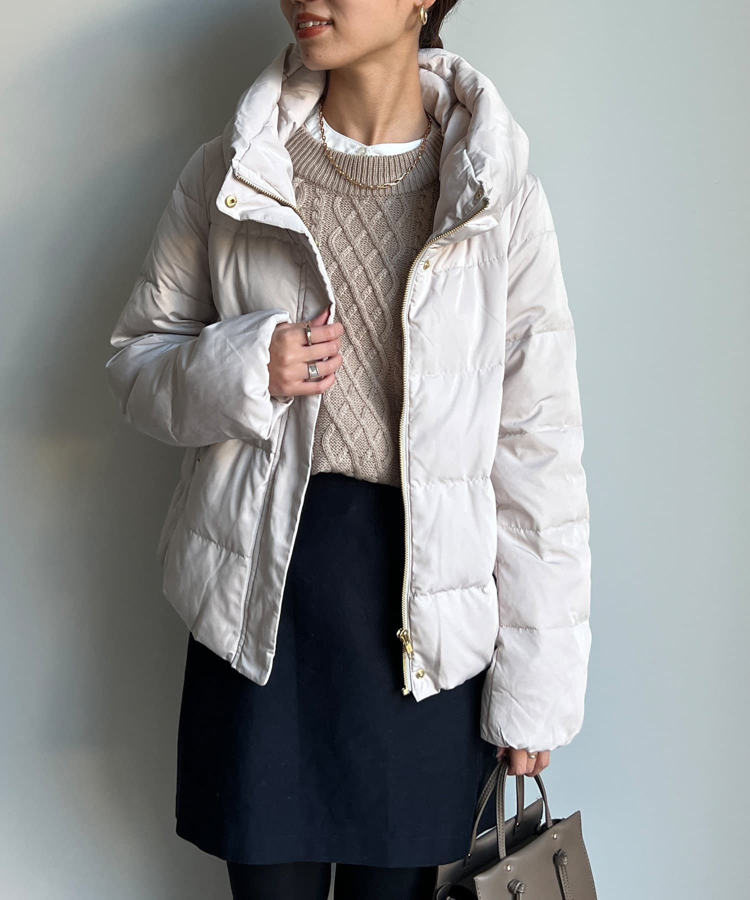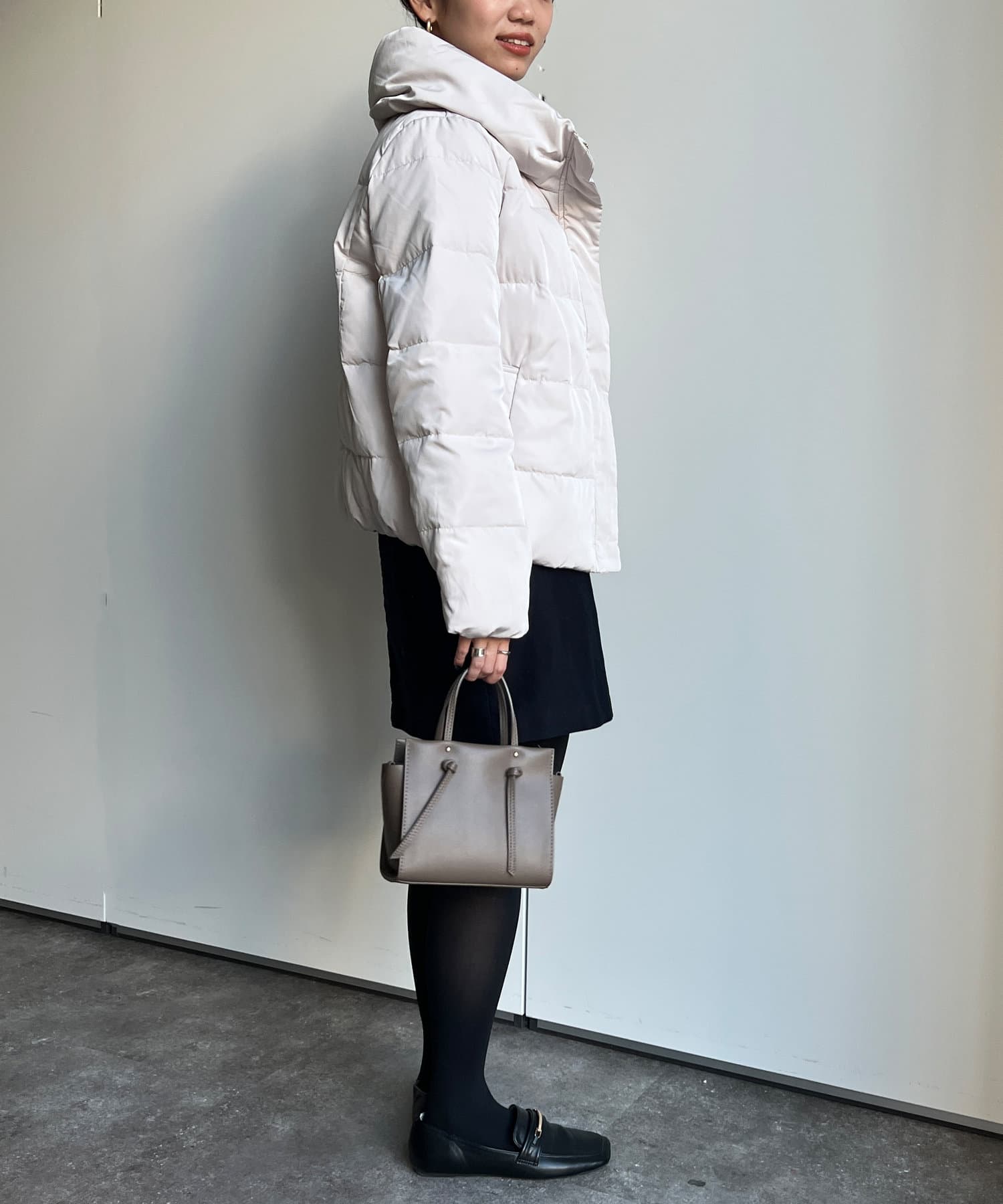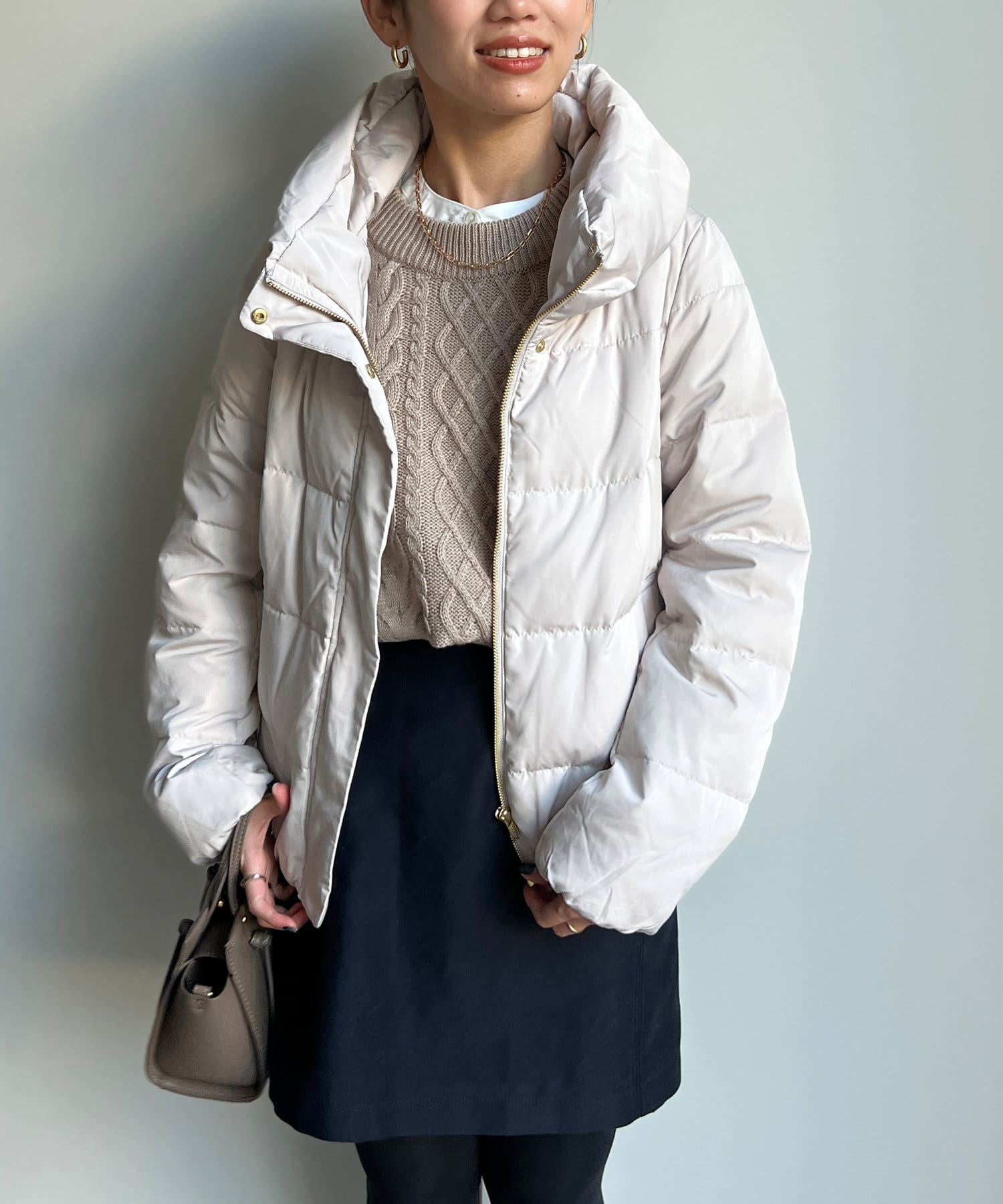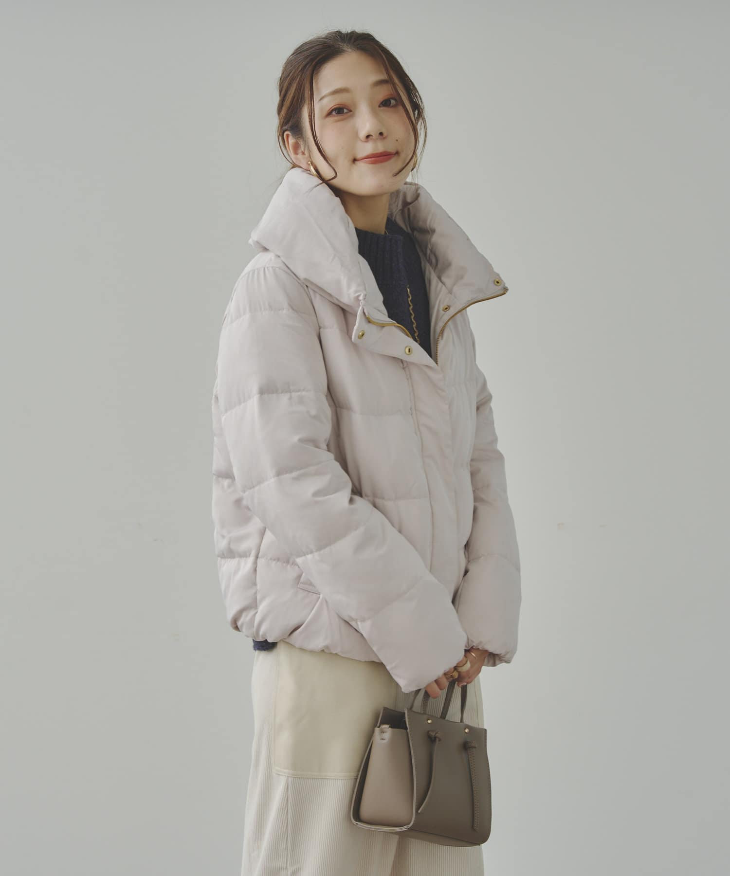 コンパクトなサイズ感と首回りの程よいボリューム感がポイントのショートダウンです。