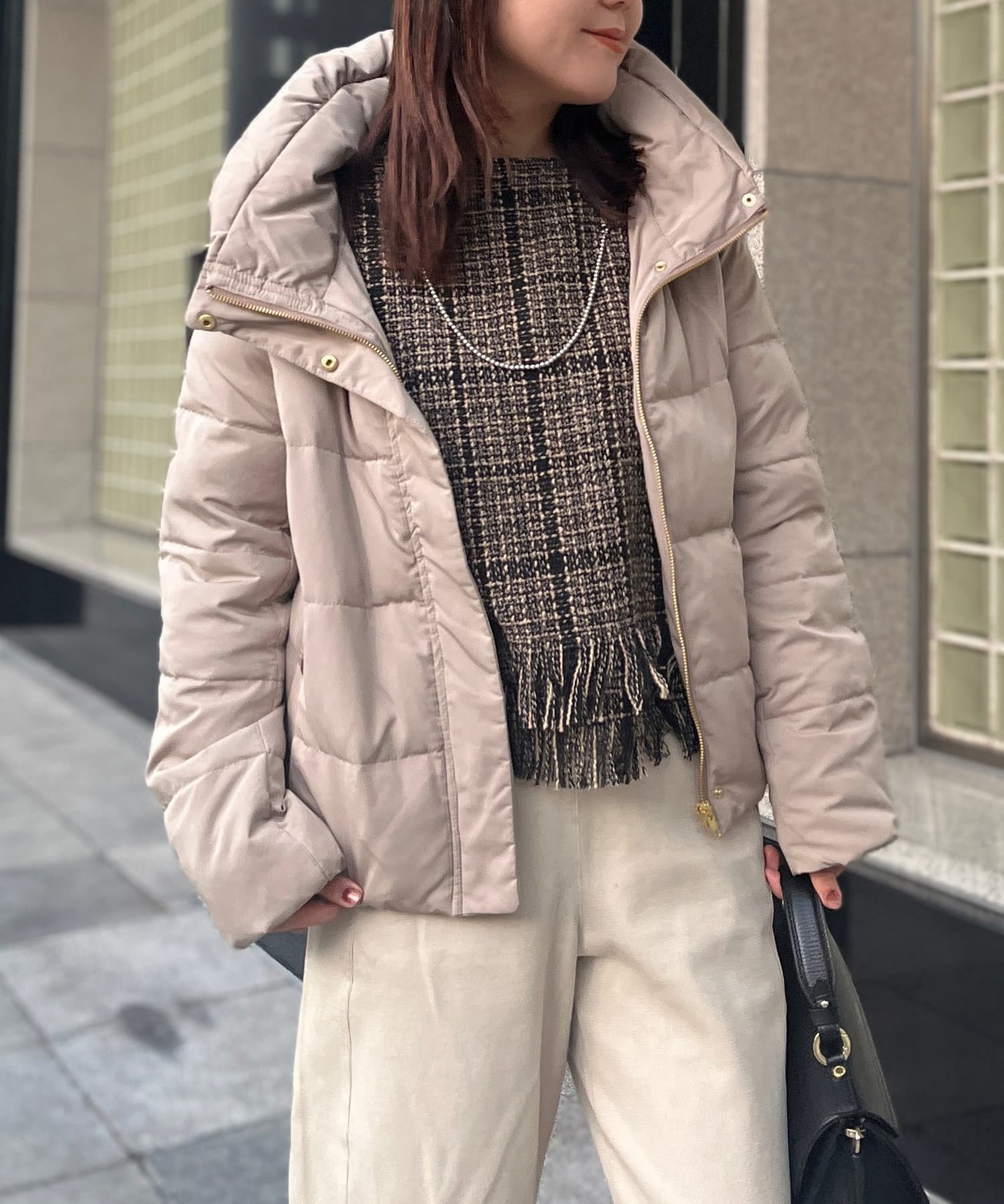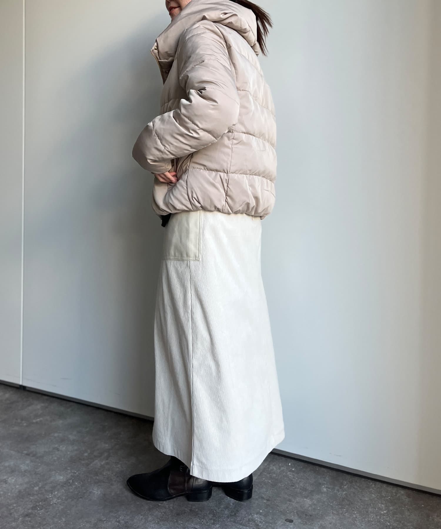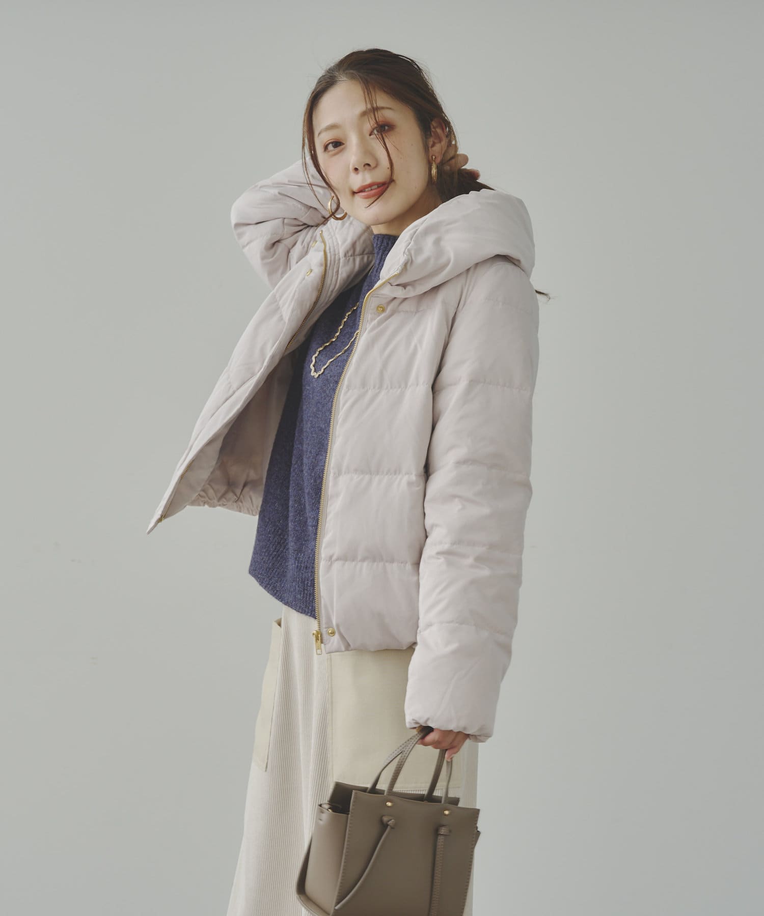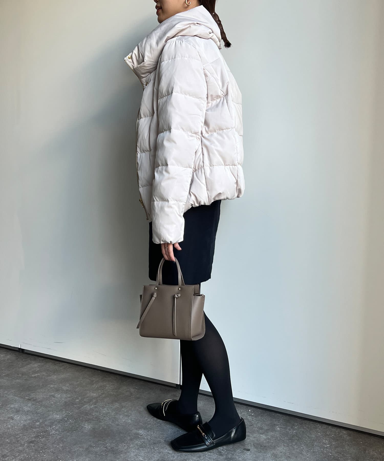 コンパクトなサイズ感と首回りの程よいボリューム感がポイントのショートダウンです。