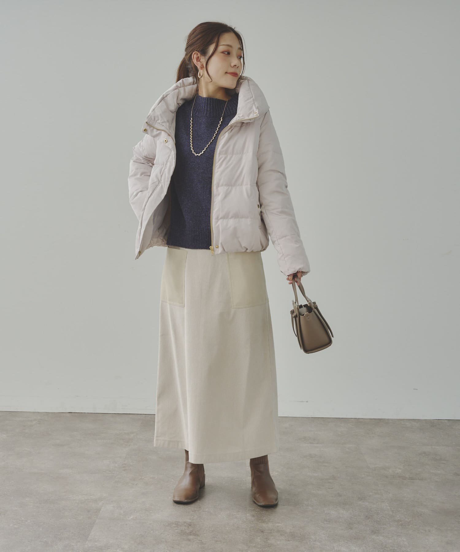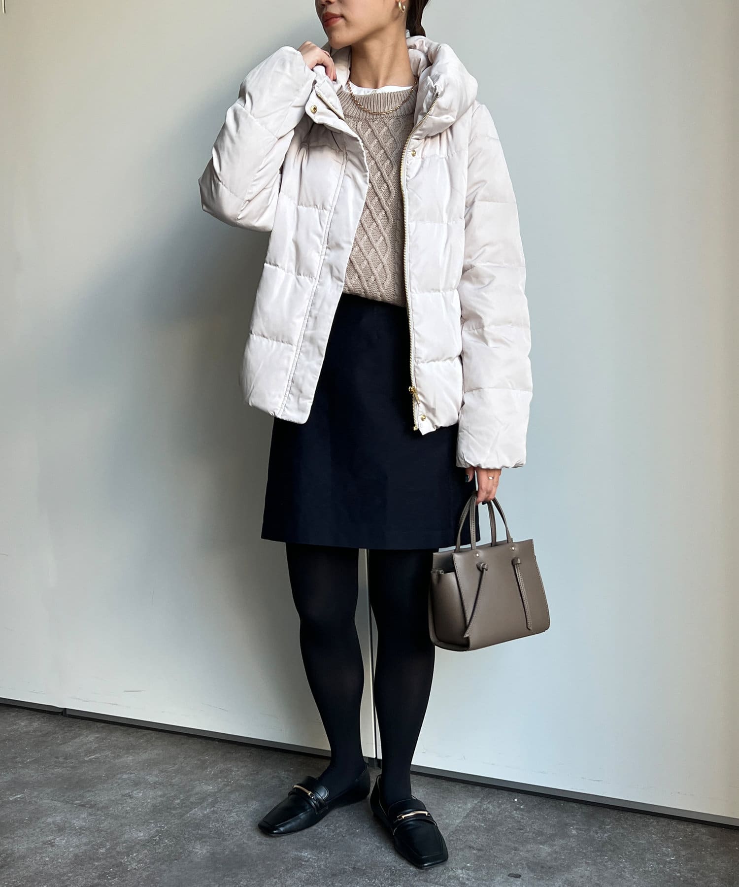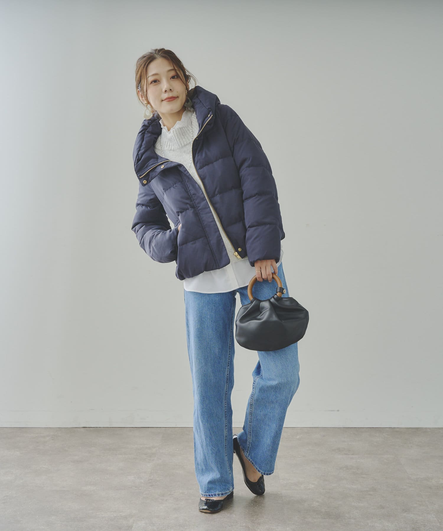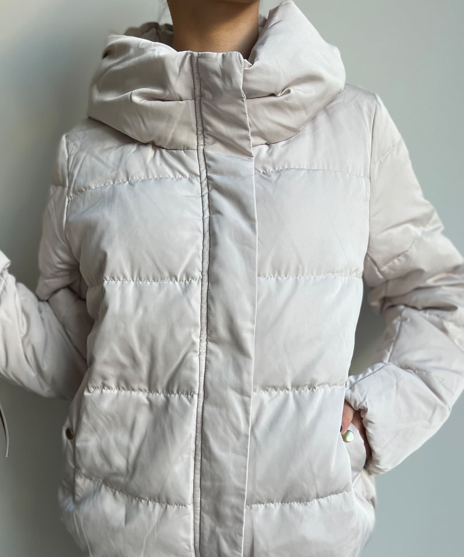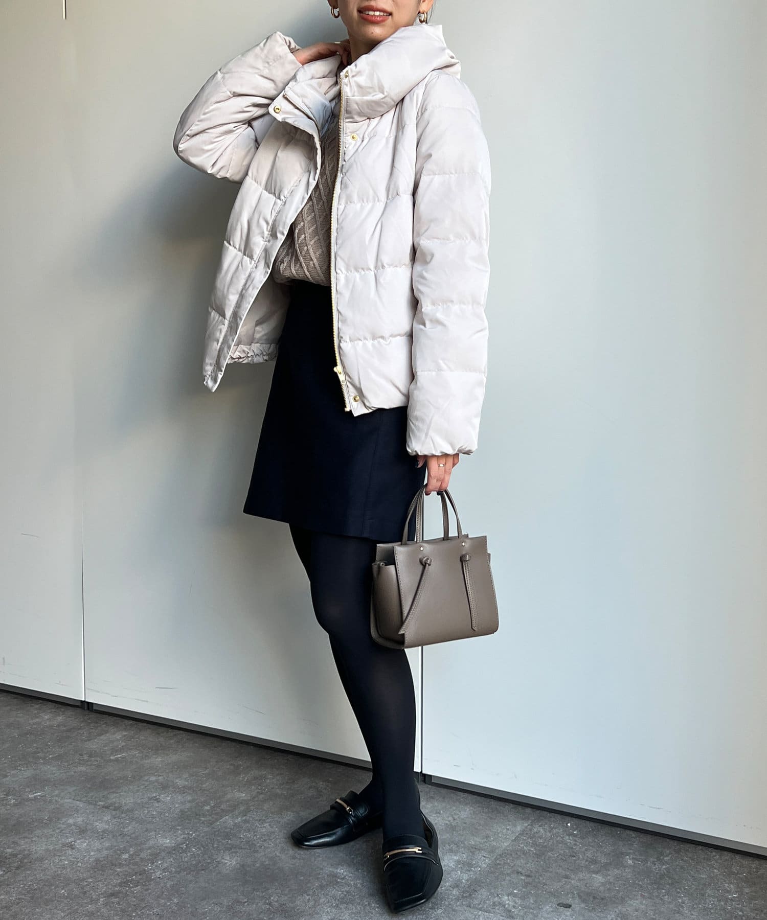 コンパクトなサイズ感と首回りの程よいボリューム感がポイントのショートダウンです。