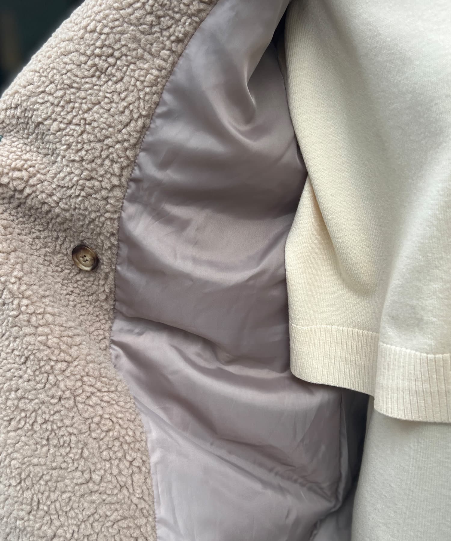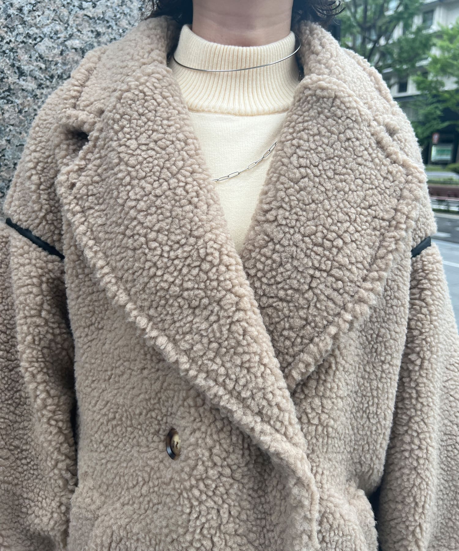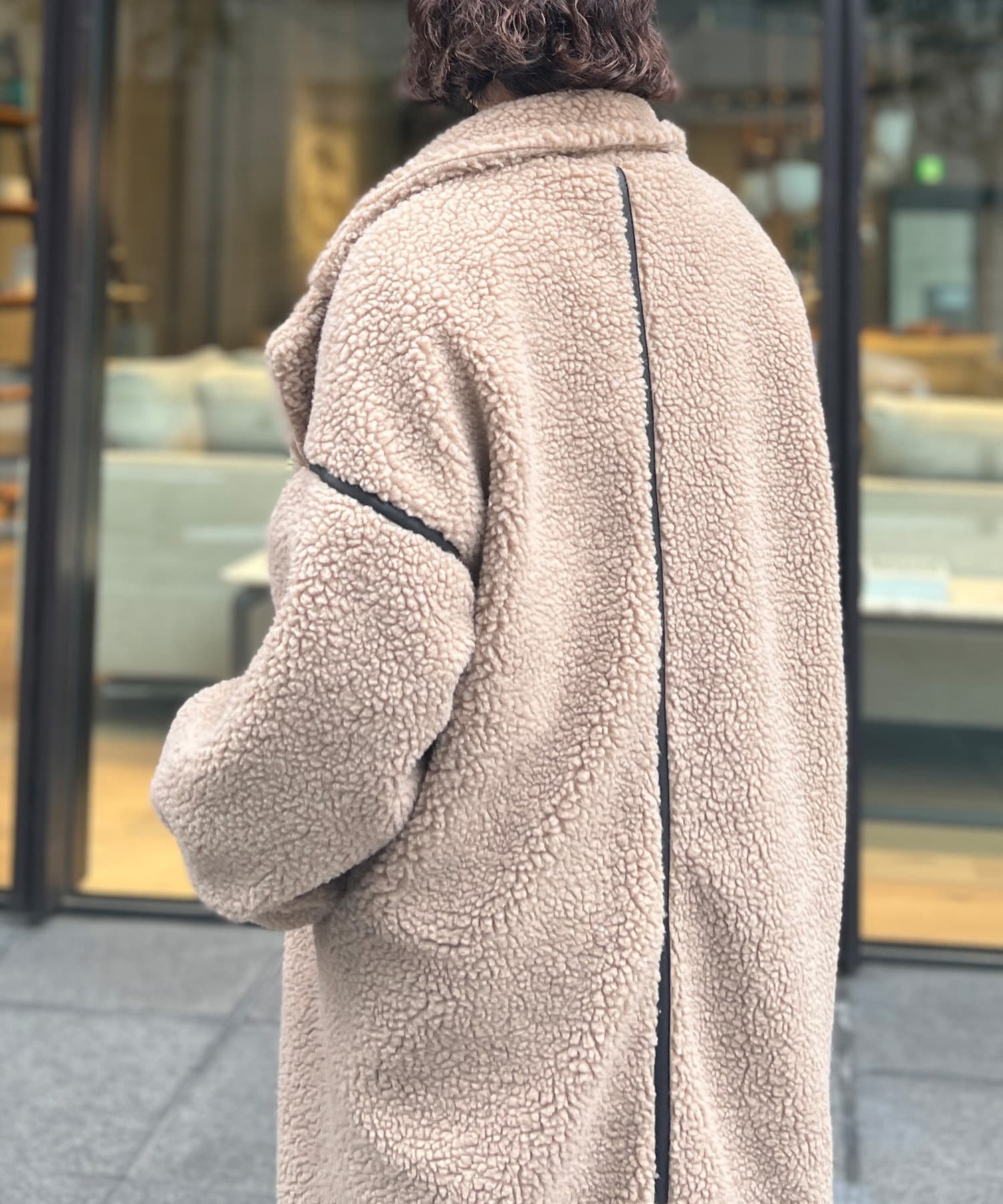 ボリューム感のあるボア素材をベースにしたチェスターコート