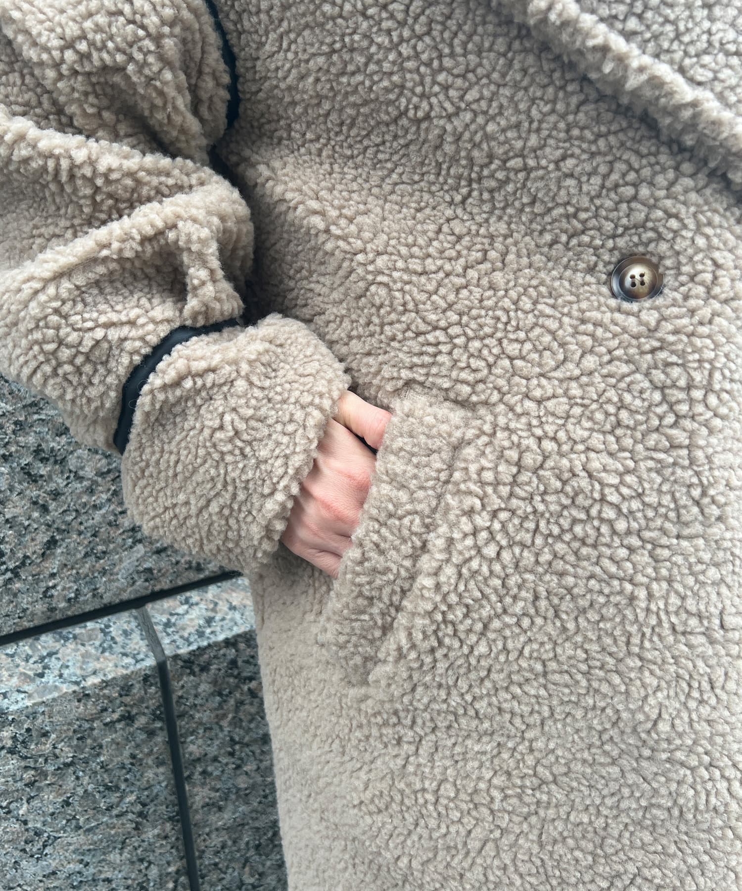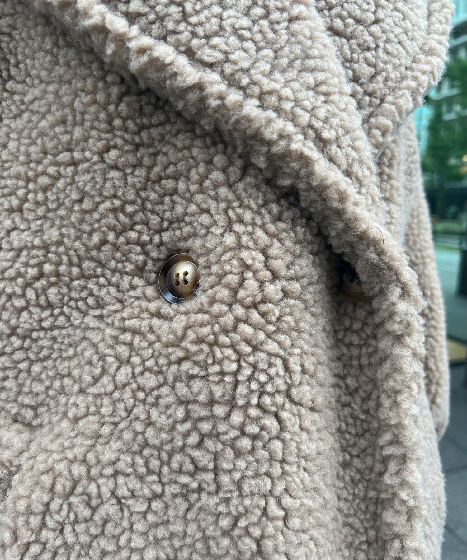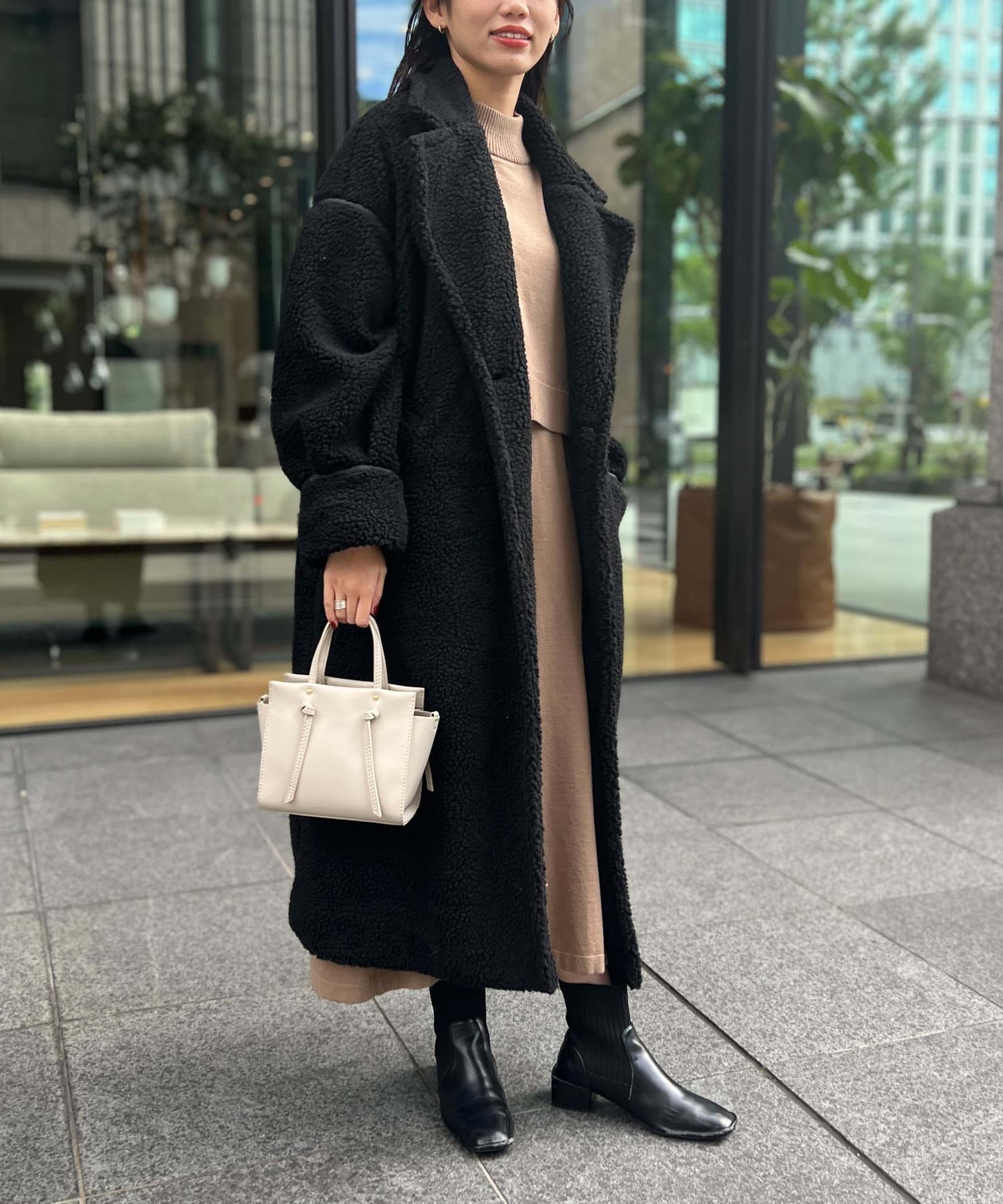 ボリューム感のあるボア素材をベースにしたチェスターコート