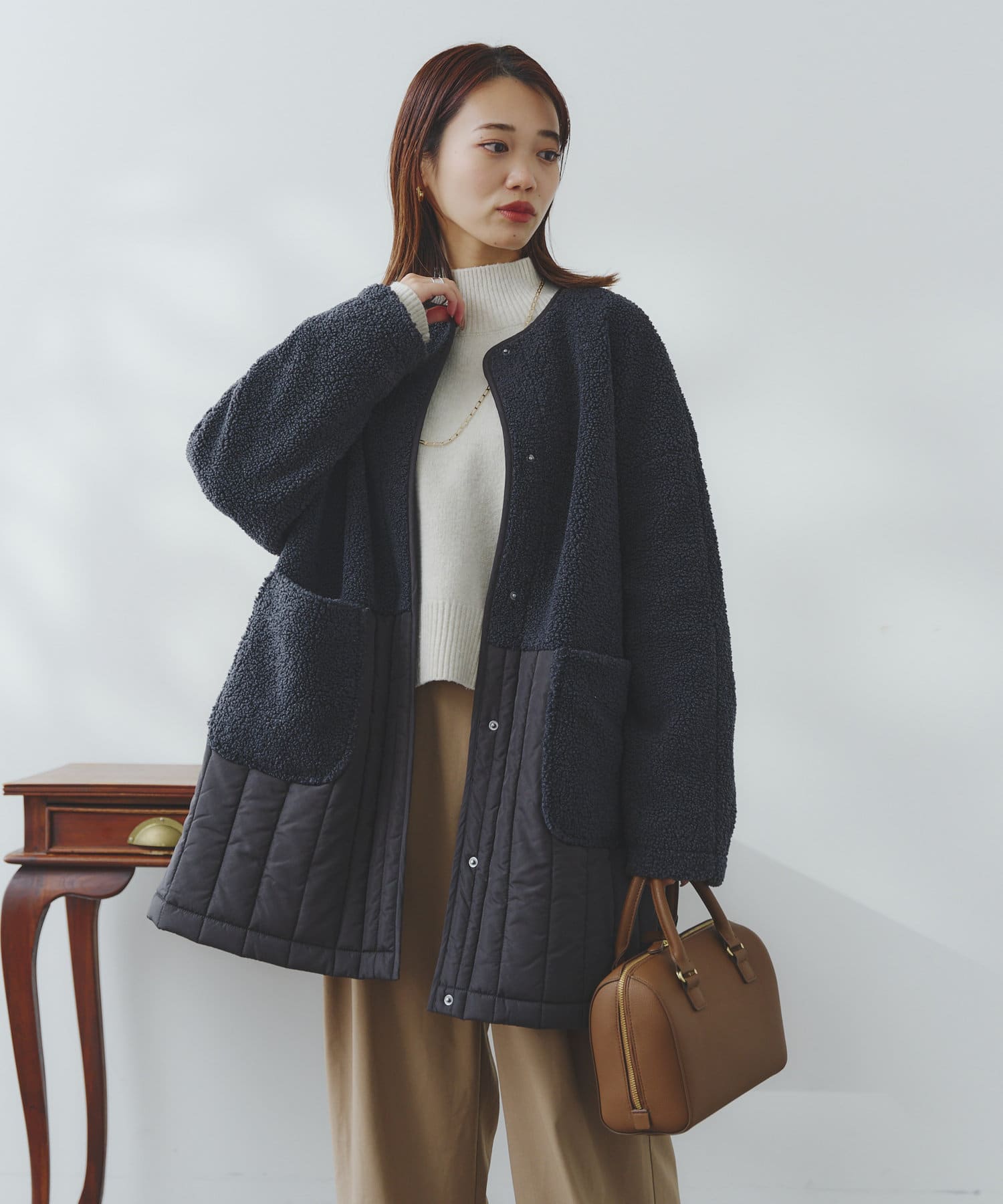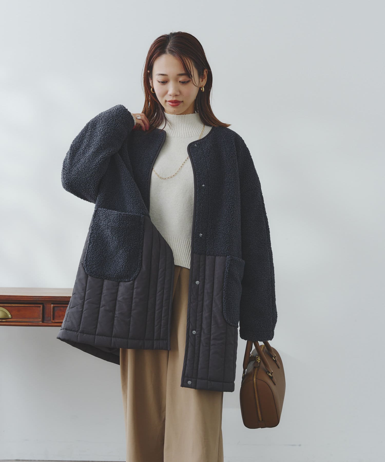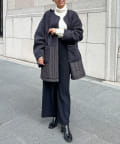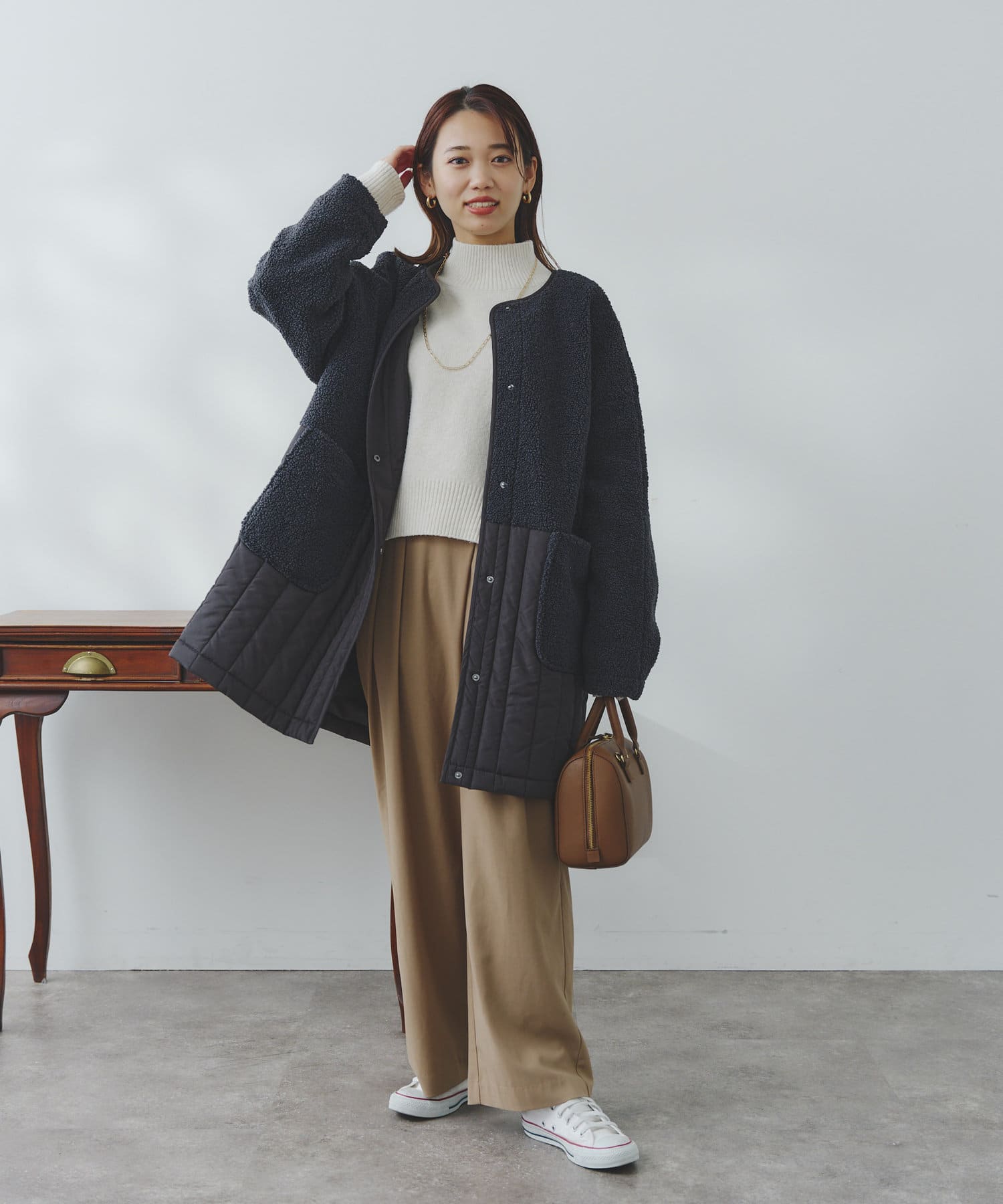 中綿入りで暖かく、またゆとりがあるシルエットはボリュームトップスとも相性が良いので、寒い秋の日から真冬まで着用していただけるアウターです。