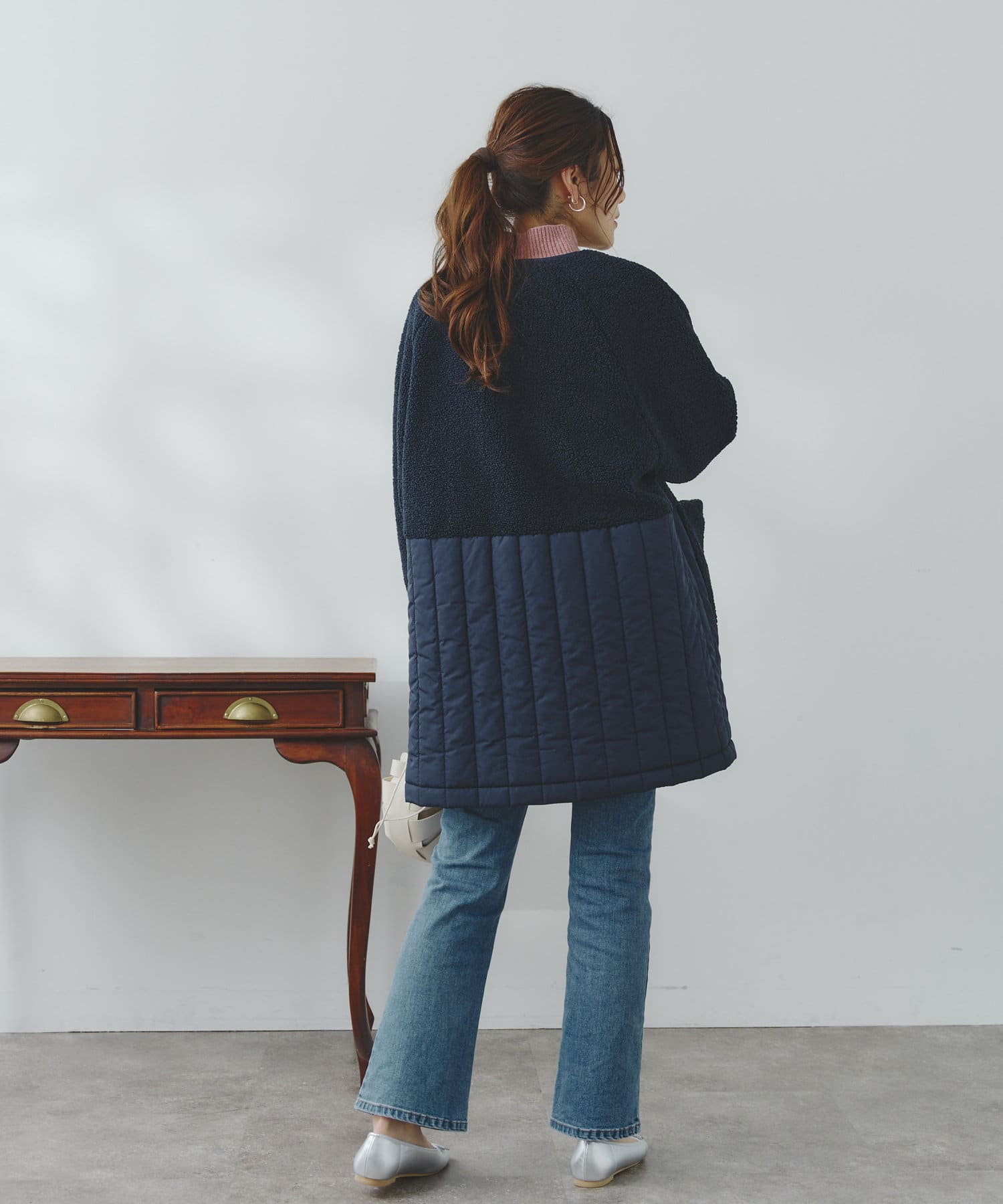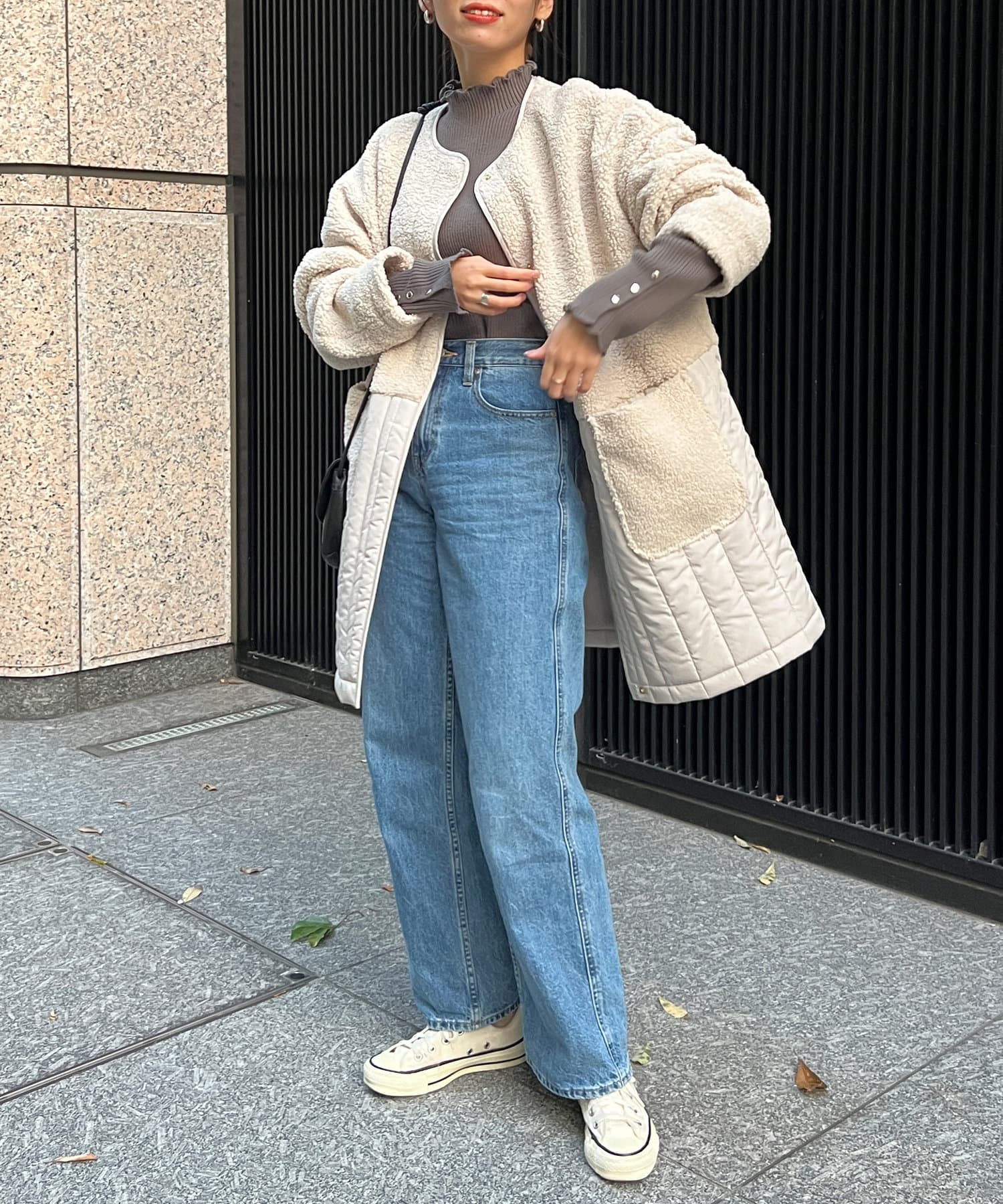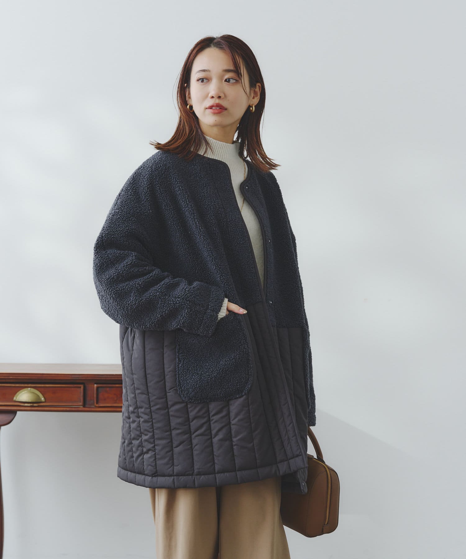中綿入りで暖かく、またゆとりがあるシルエットはボリュームトップスとも相性が良いので、寒い秋の日から真冬まで着用していただけるアウターです。