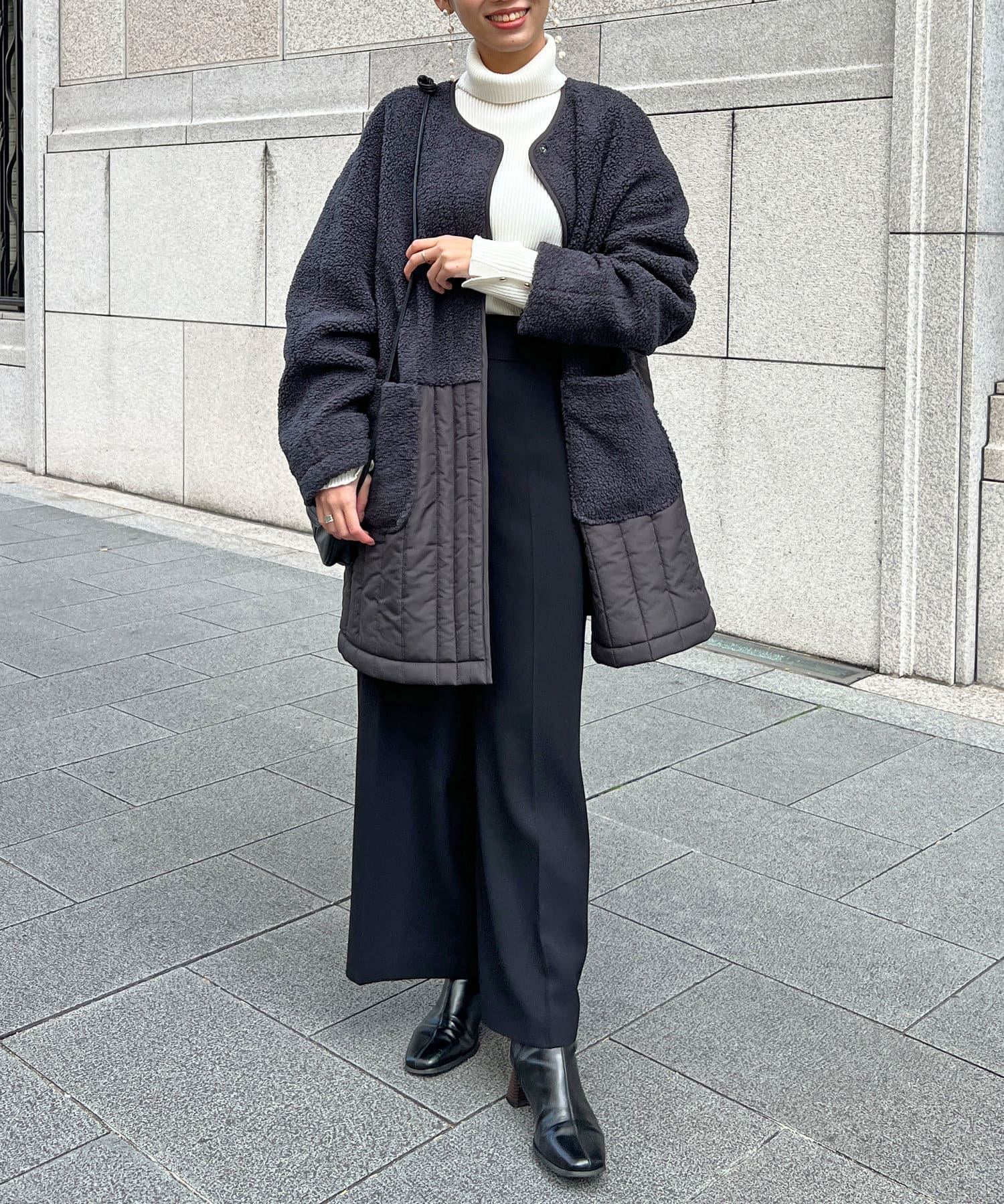 ノーカラーデザインなので、タートルネックとの相性も抜群です。