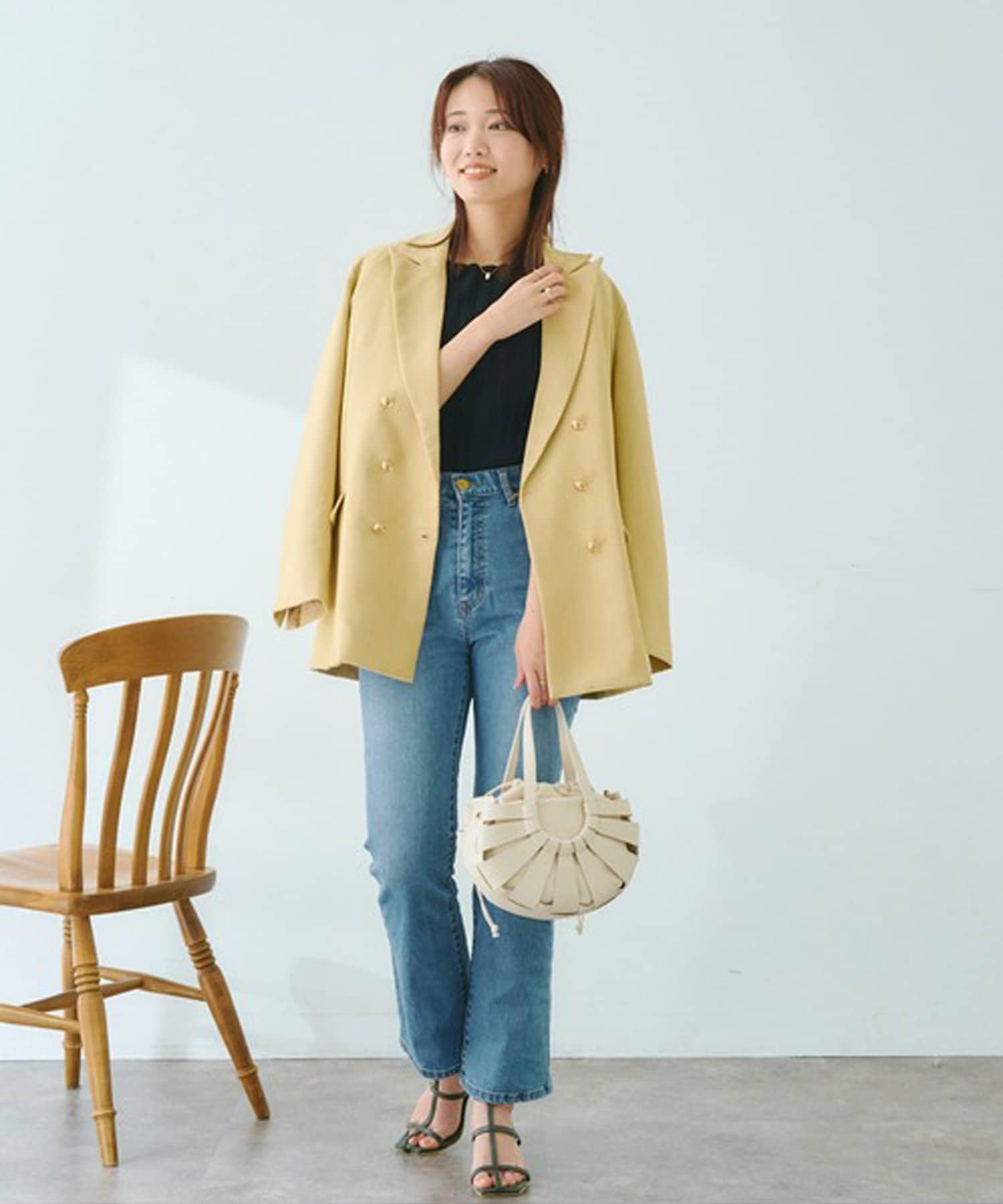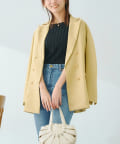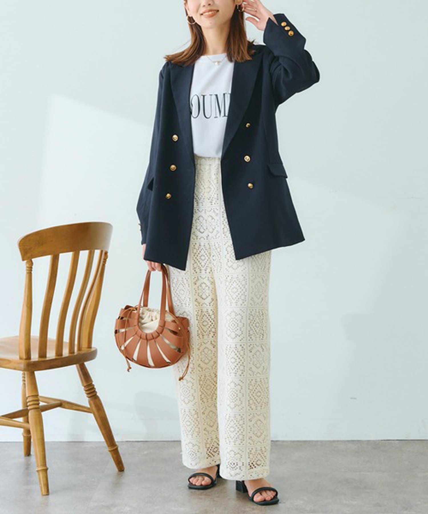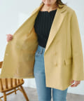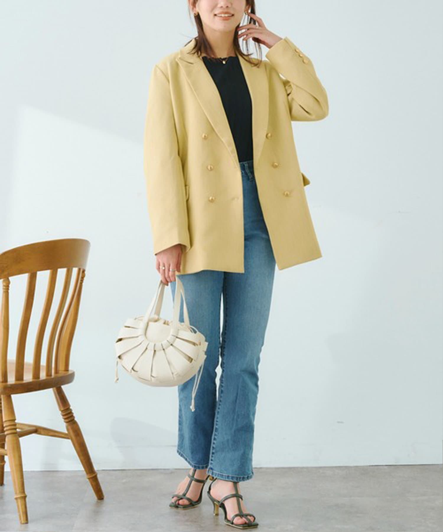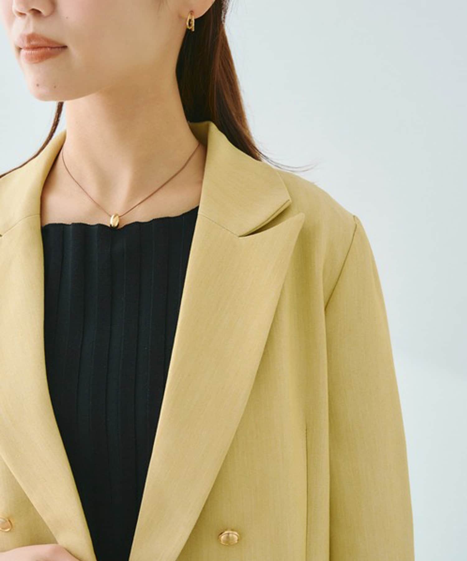 ゴールドボタンがアクセントになるダブルテーラードジャケット。