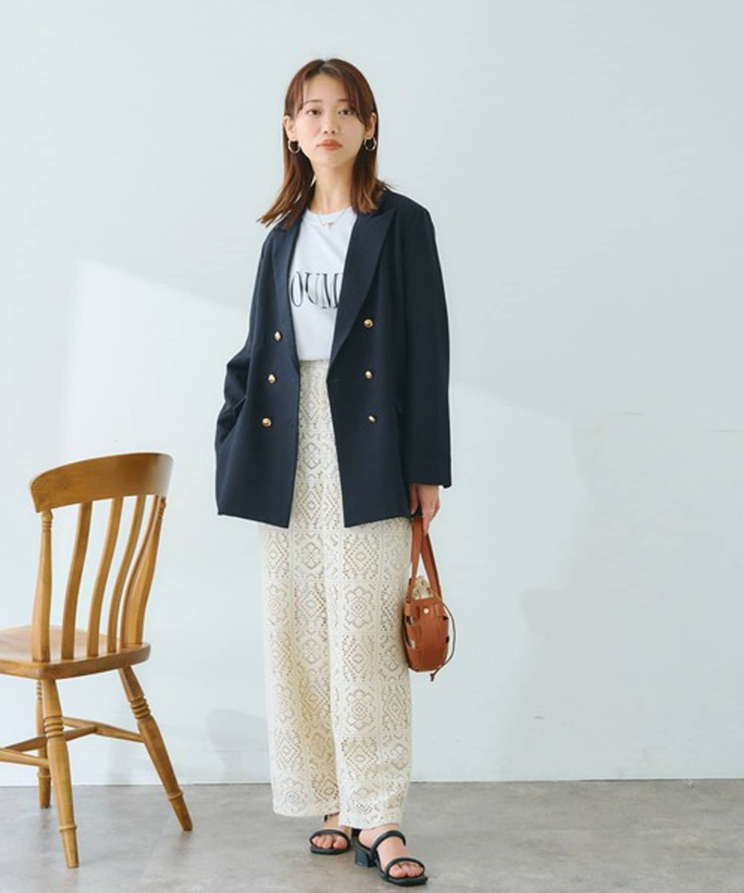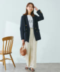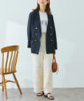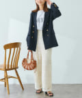 コーデを上品に仕上げてくれるゴールドボタンがアクセントに。