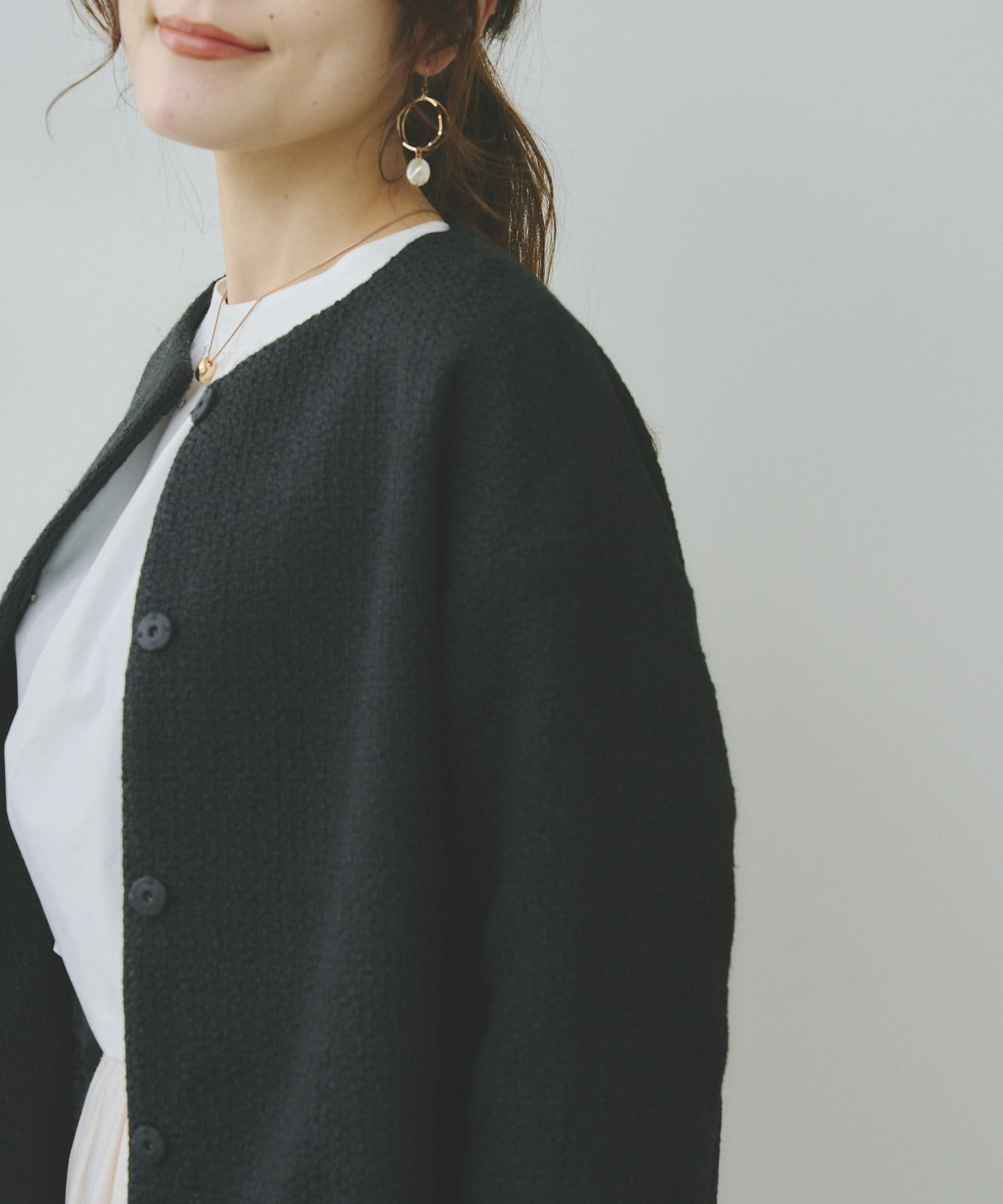 ・ノーカラーでシンプルなデザインは合わせやすさ抜群!