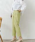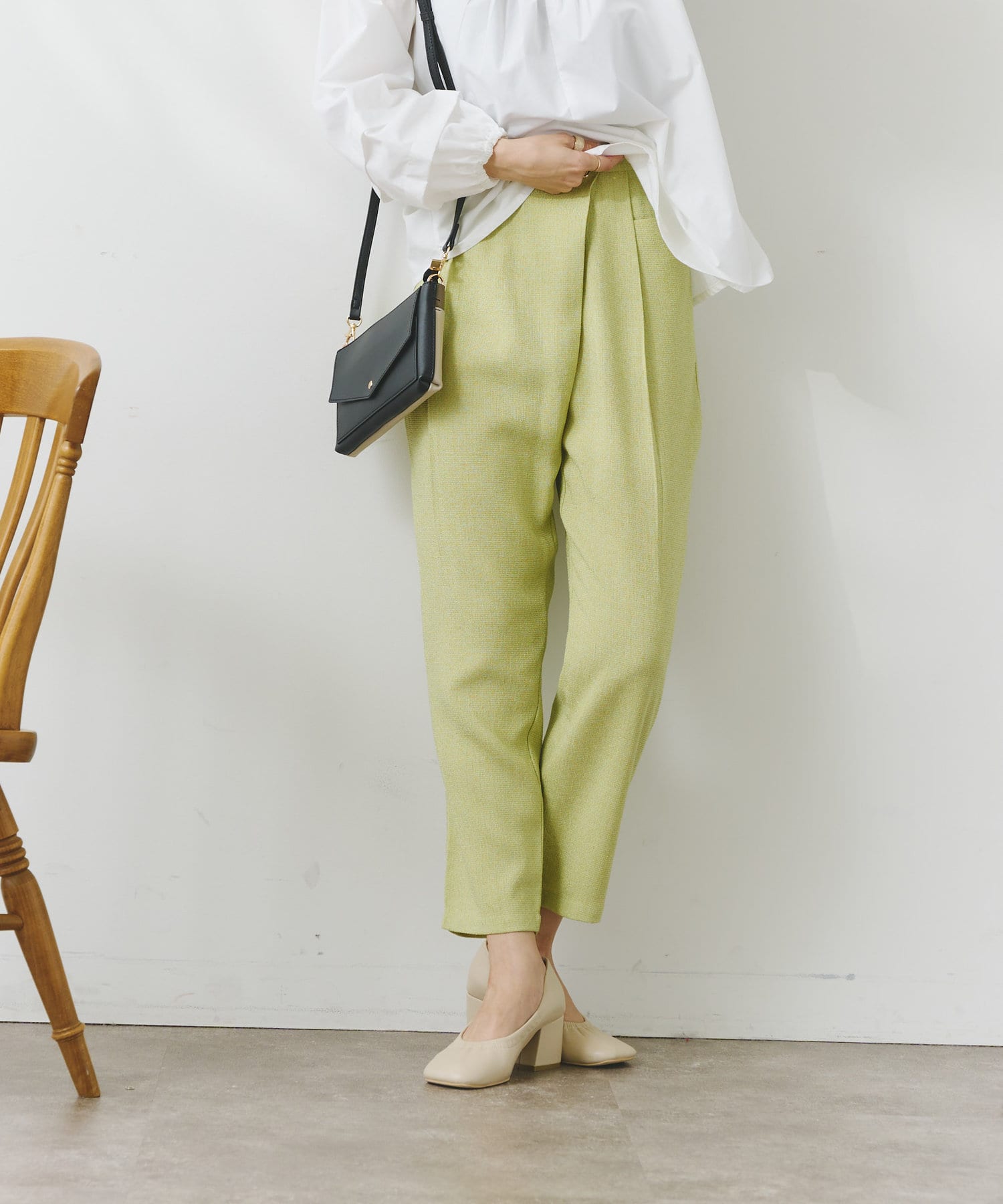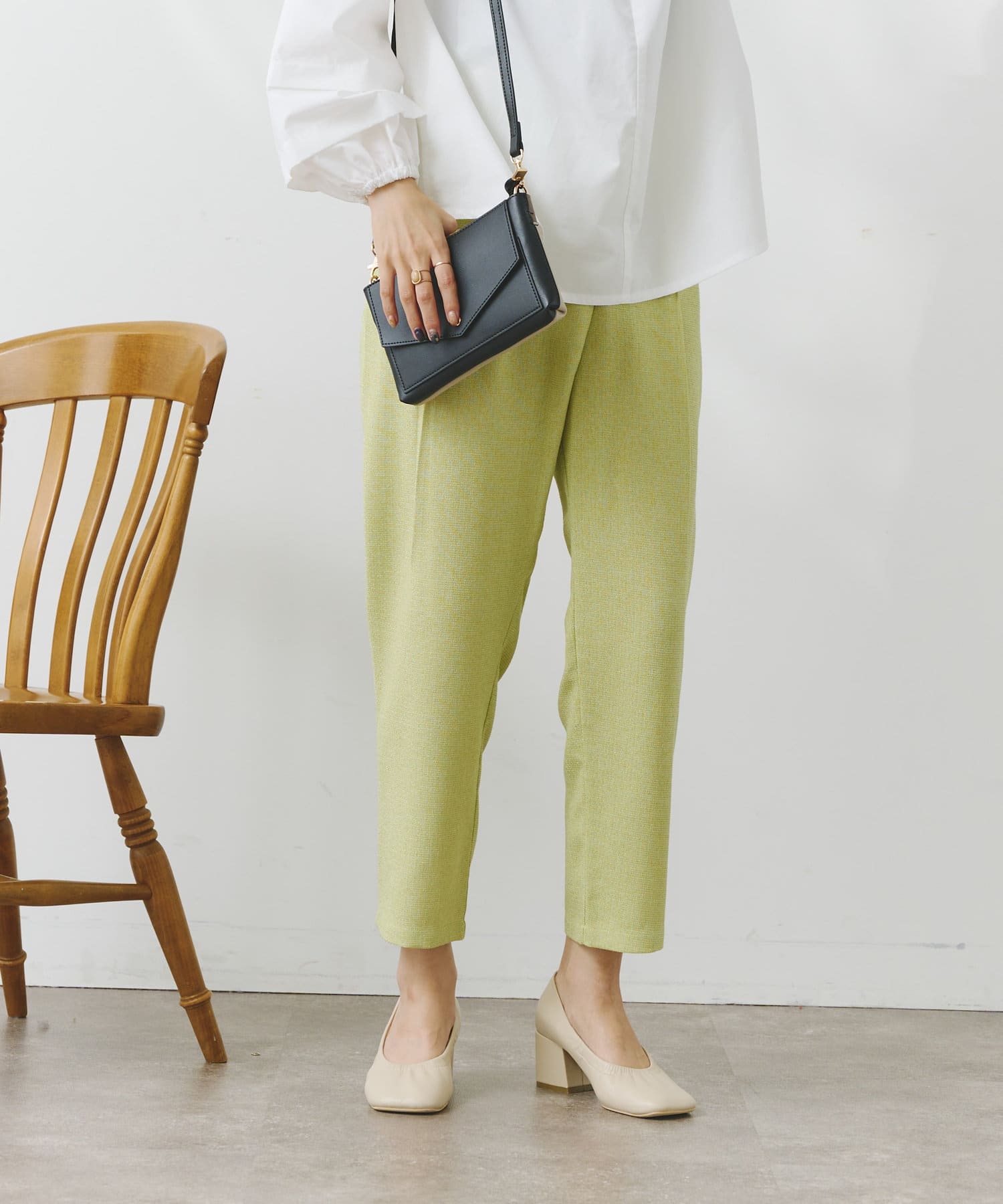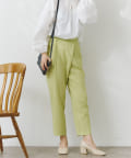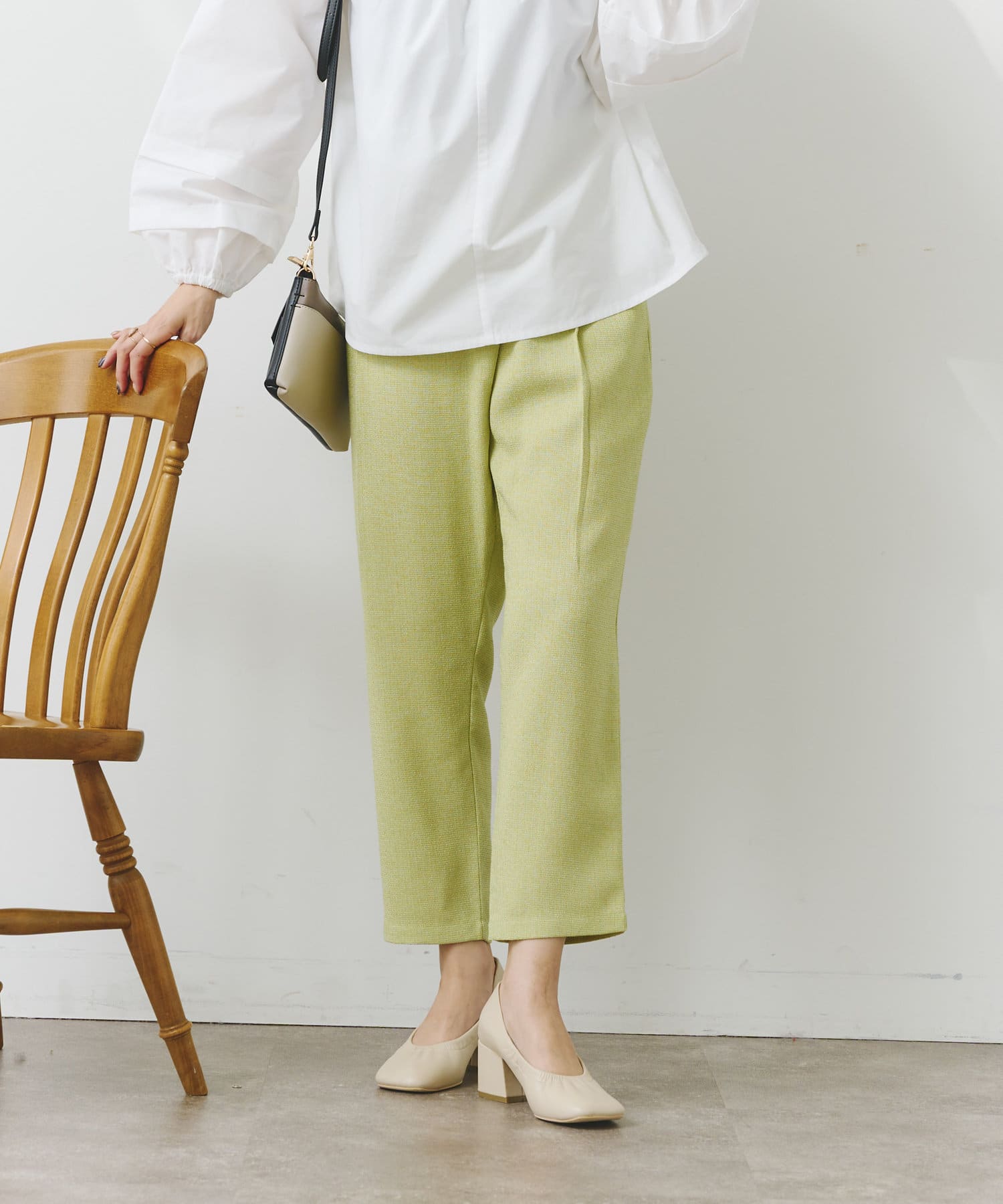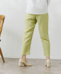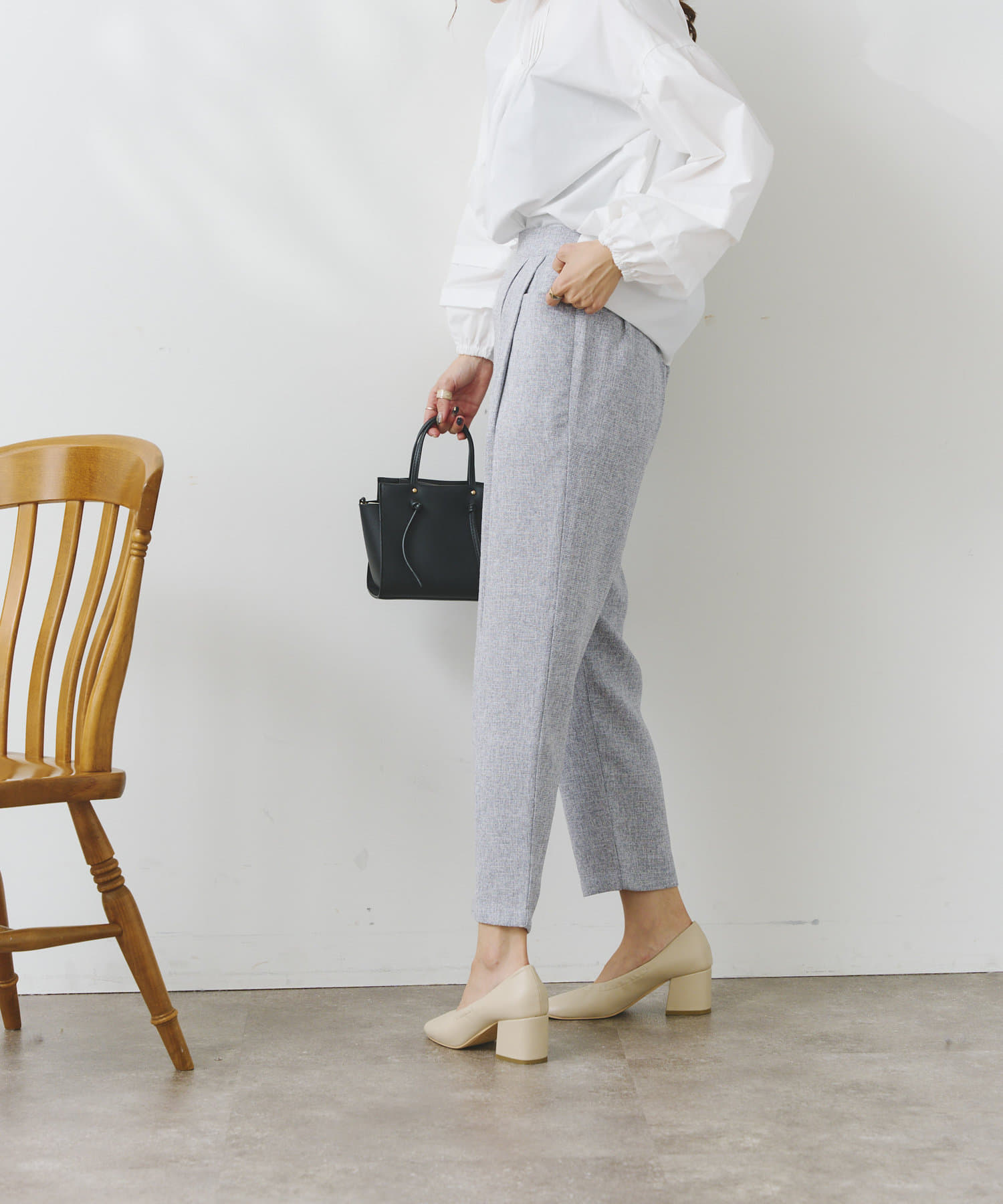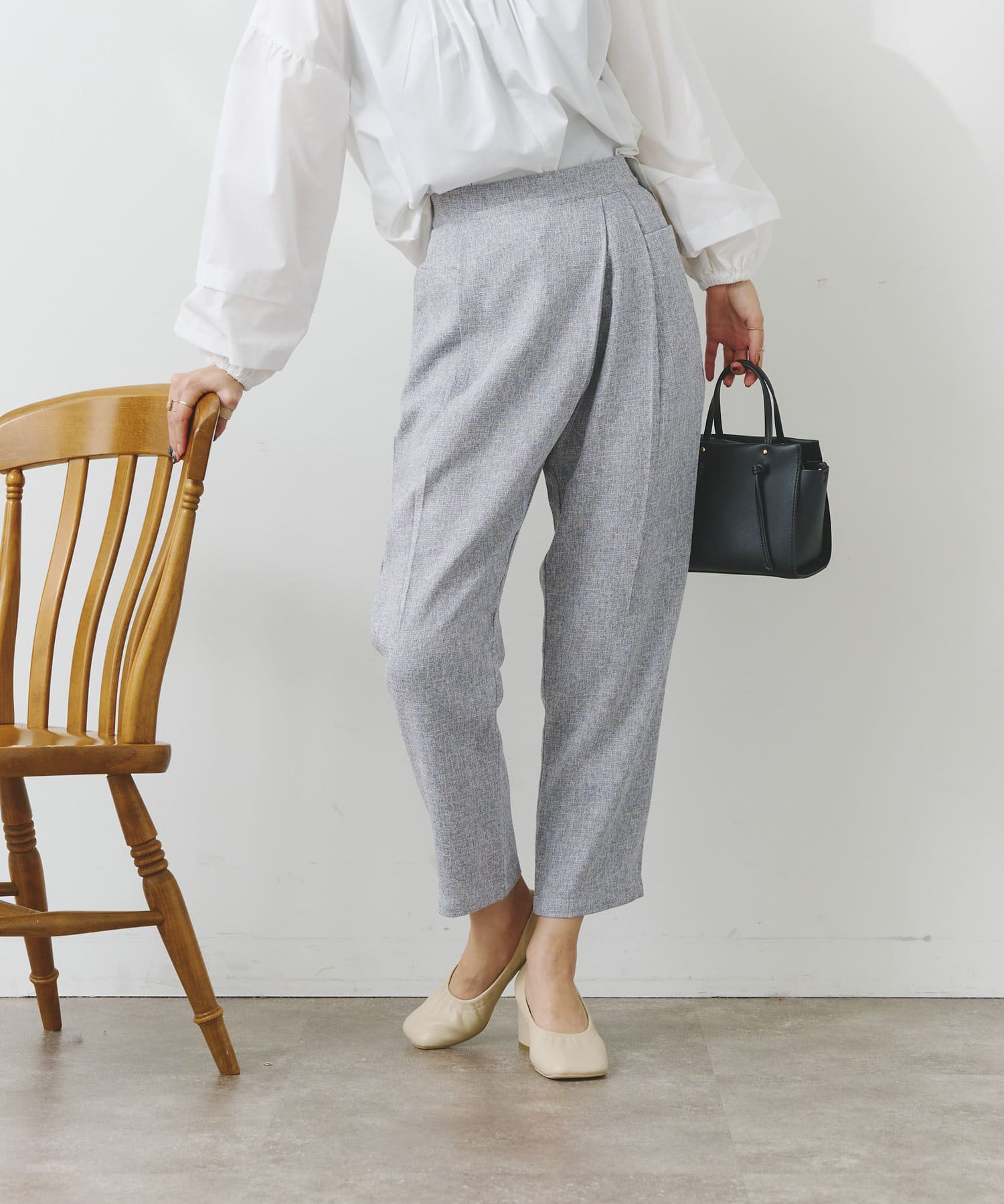 ウエストの後ろベルト部分のみゴム仕様でストレスフリーな履き心地に。