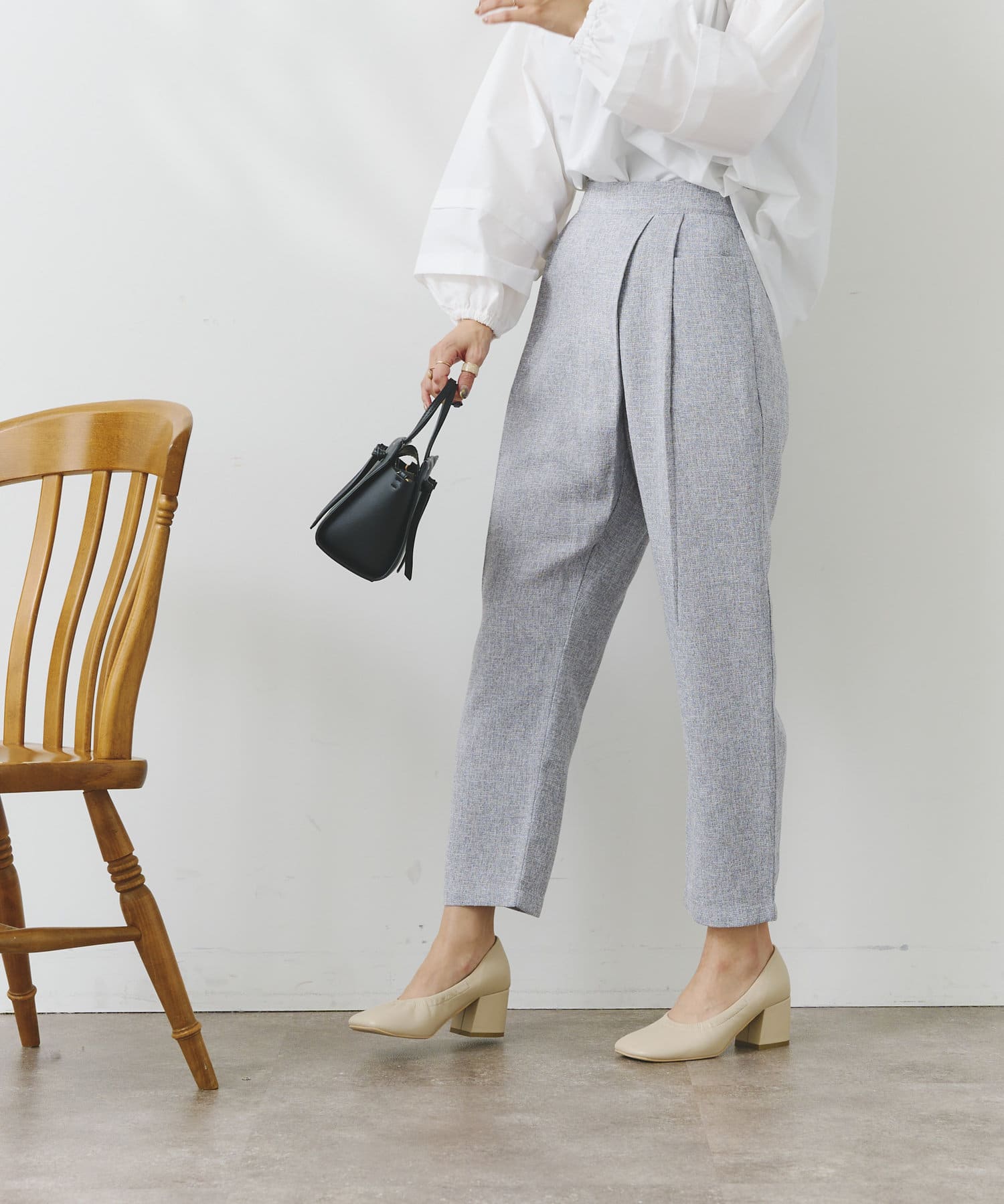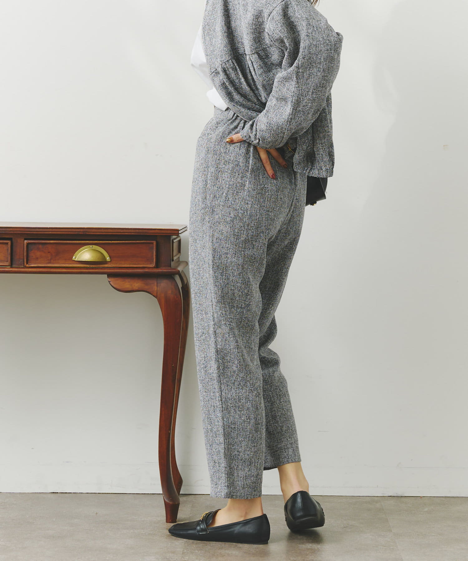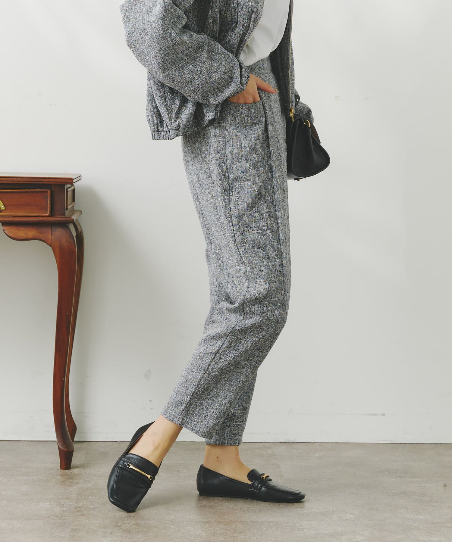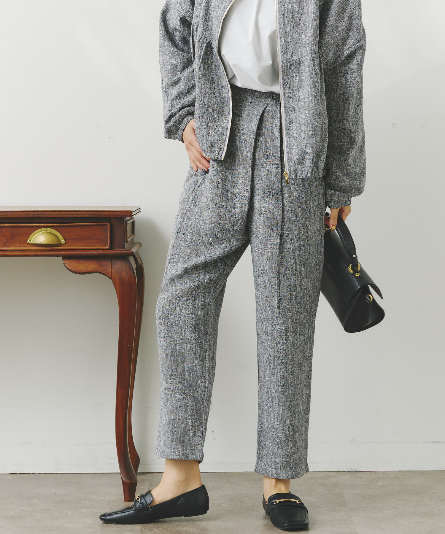 同素材のPGC1031107A0003 ツイードヨーク切替ギャザーブルゾンと合わせてセットアップ風に着ていただけます。