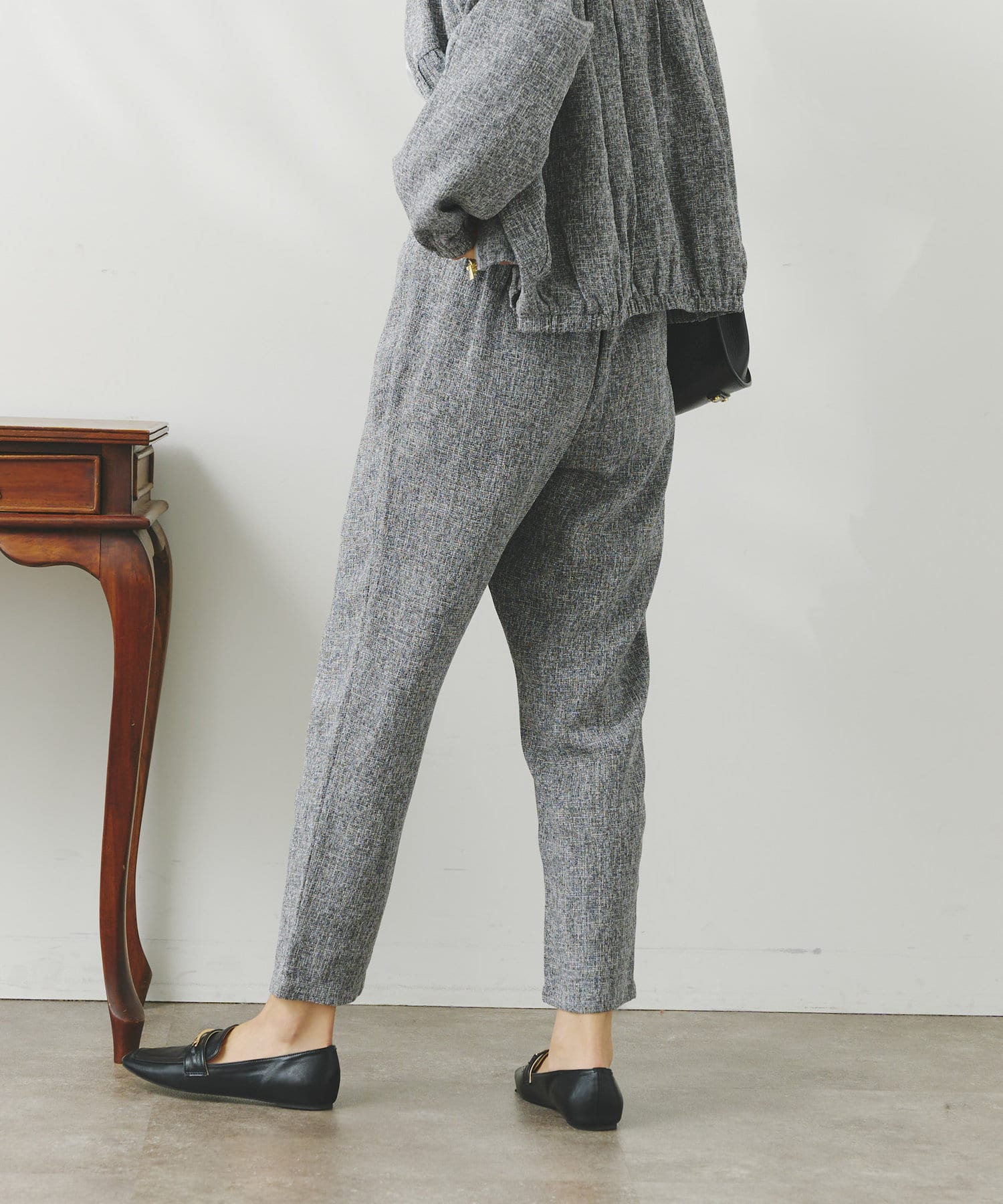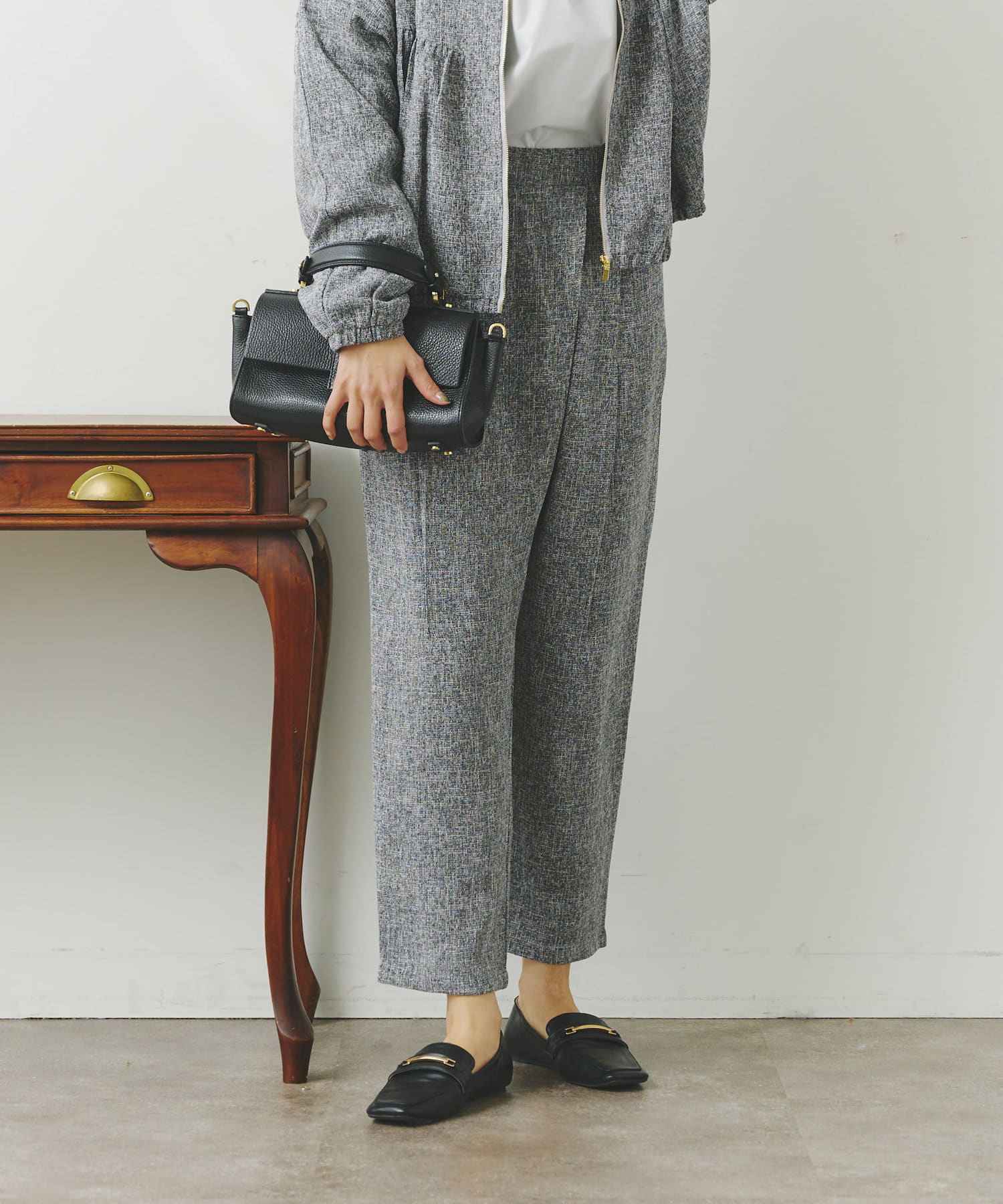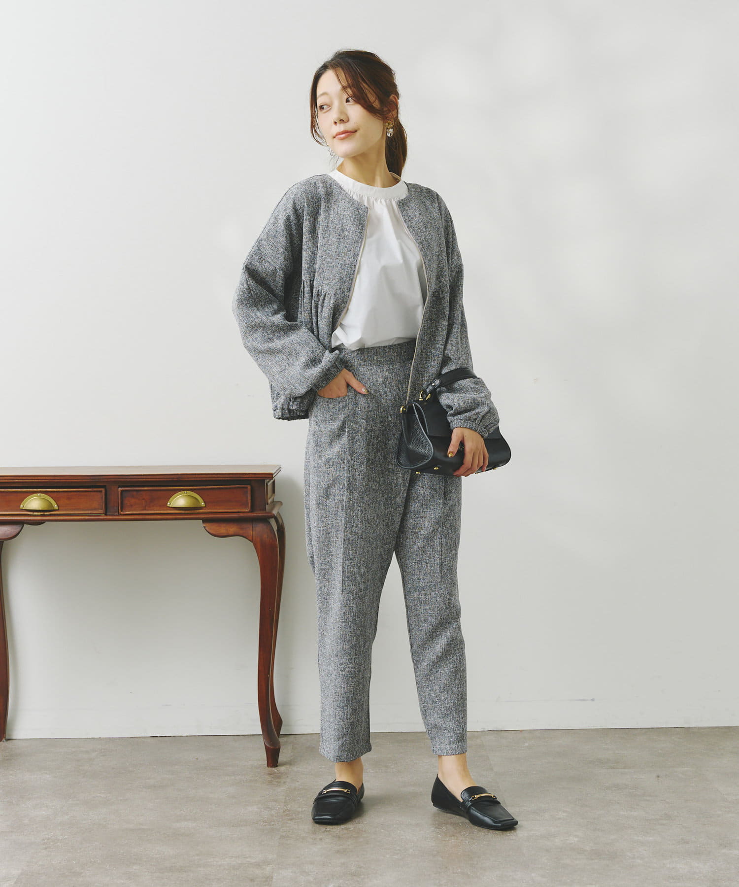 また、【PGC1031107A0003 ツイードヨーク切替ギャザーブルゾン】と同素材なのでセットで着用もできます。