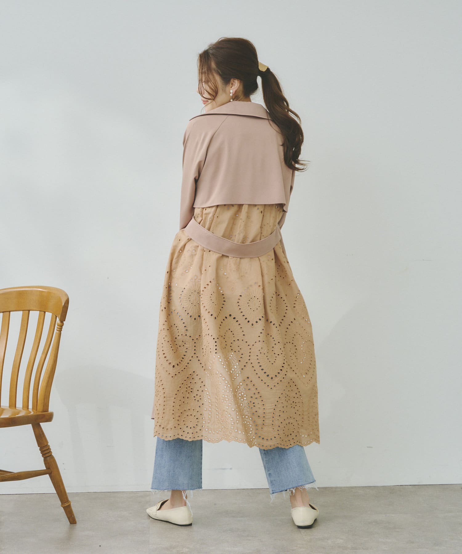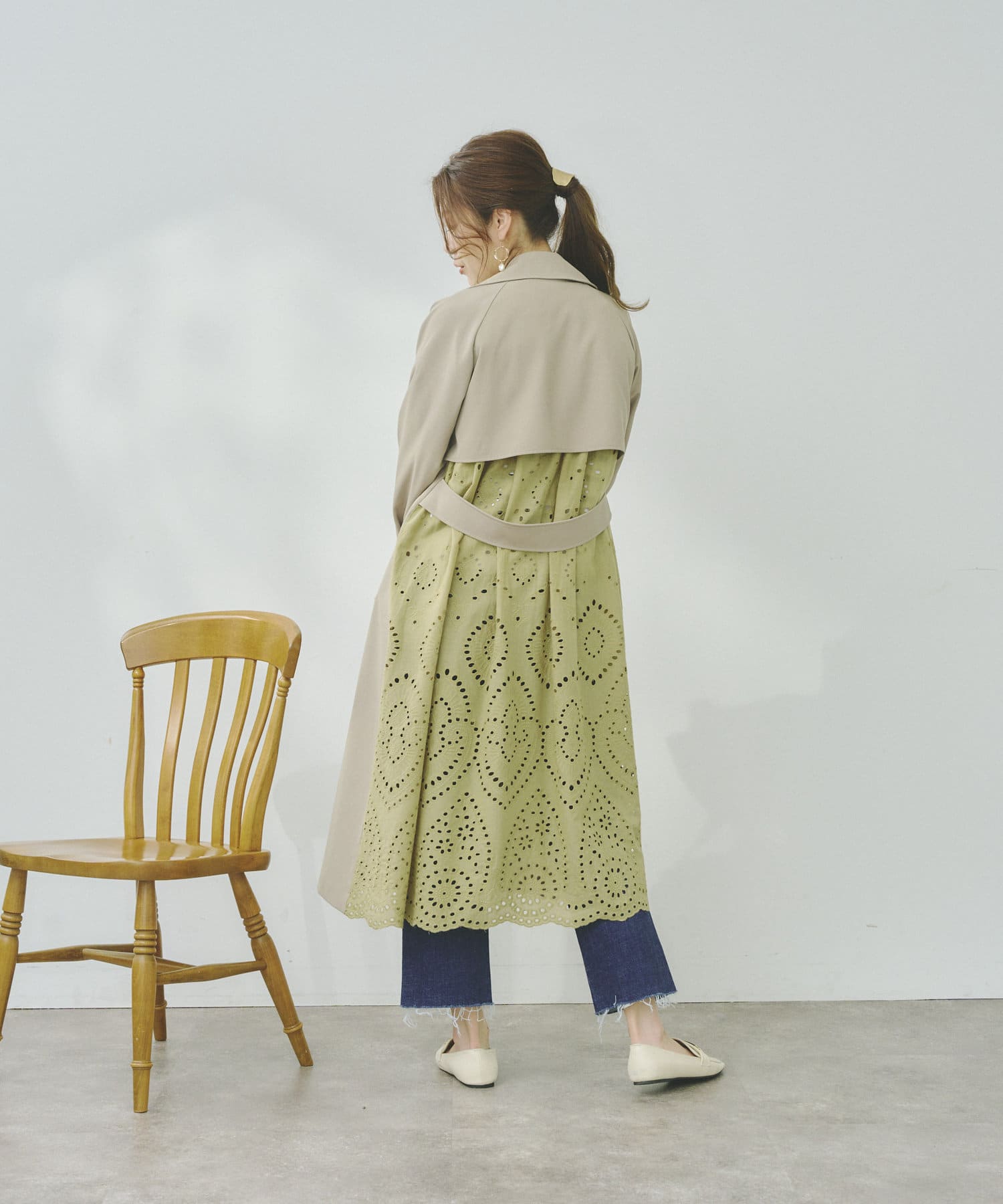 ・後ろ身頃のみレースの切替になっているので、軽い印象で着ていただけます。