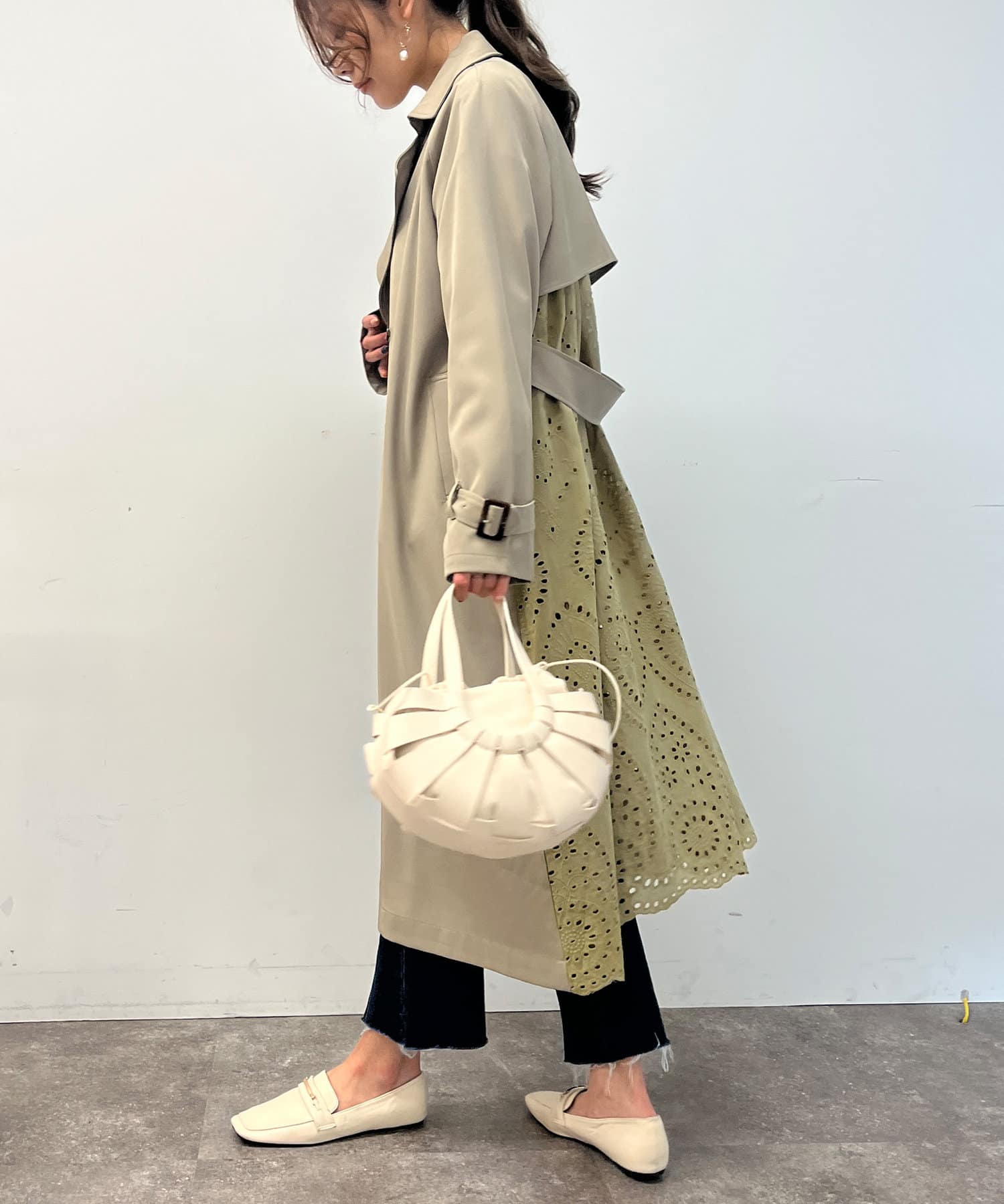 スカートやワンピースに合わせて、フェミニンなアイテムとも好相性です。