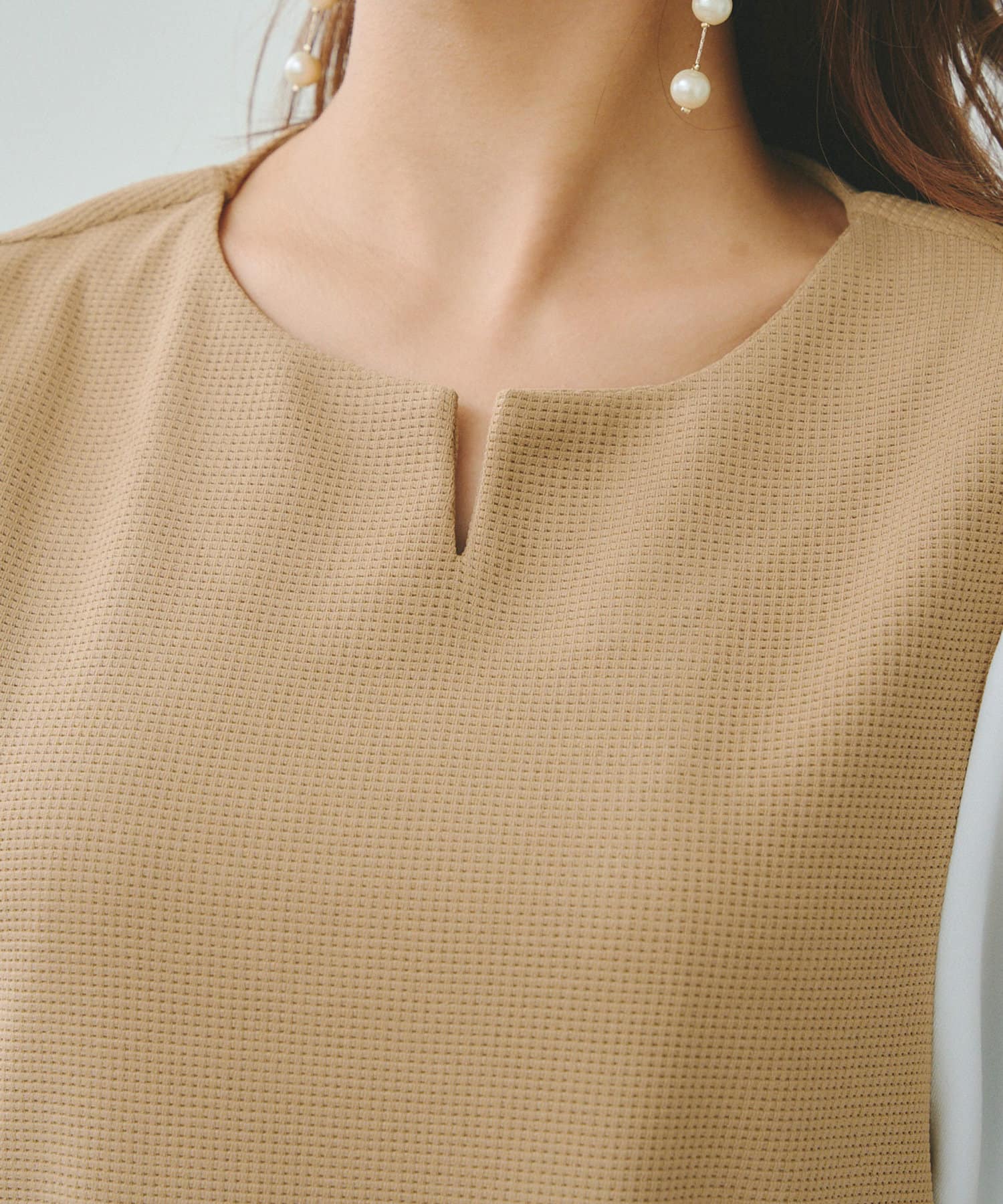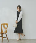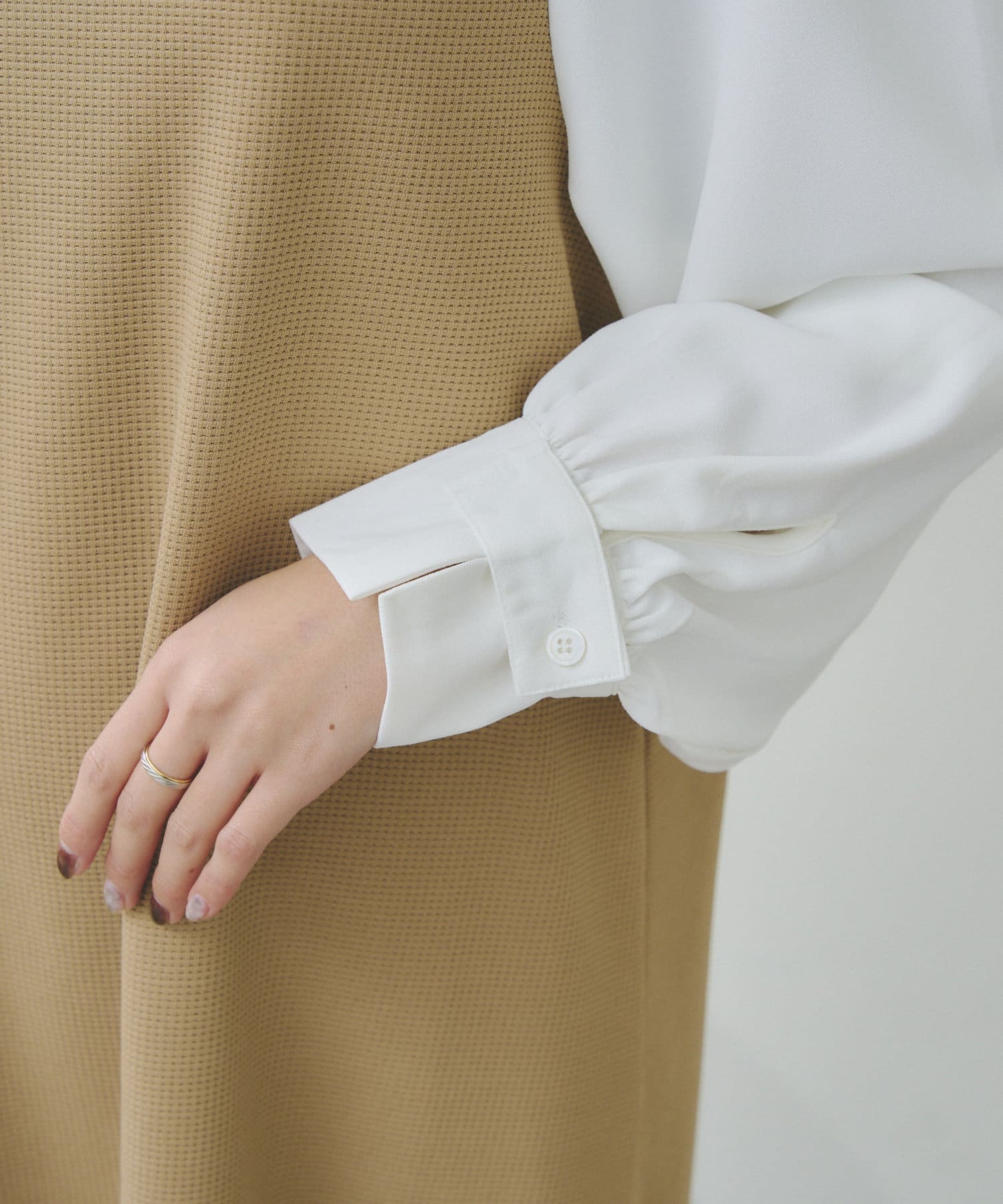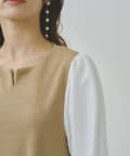 ・袖の布帛と裾のティアードデザインが適度な甘さをプラスしてくれる