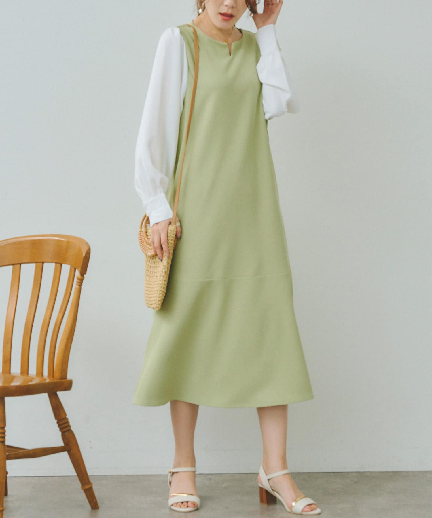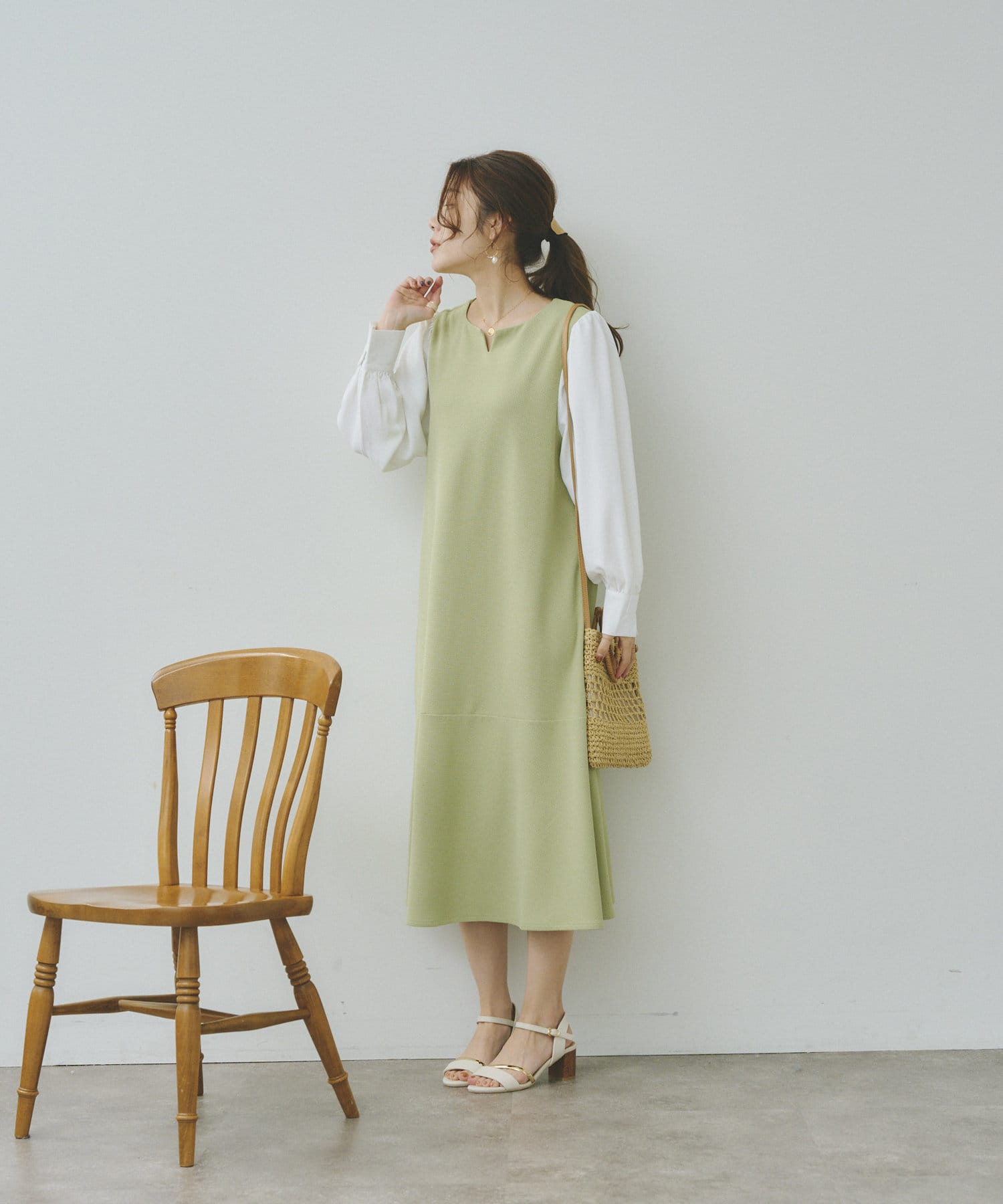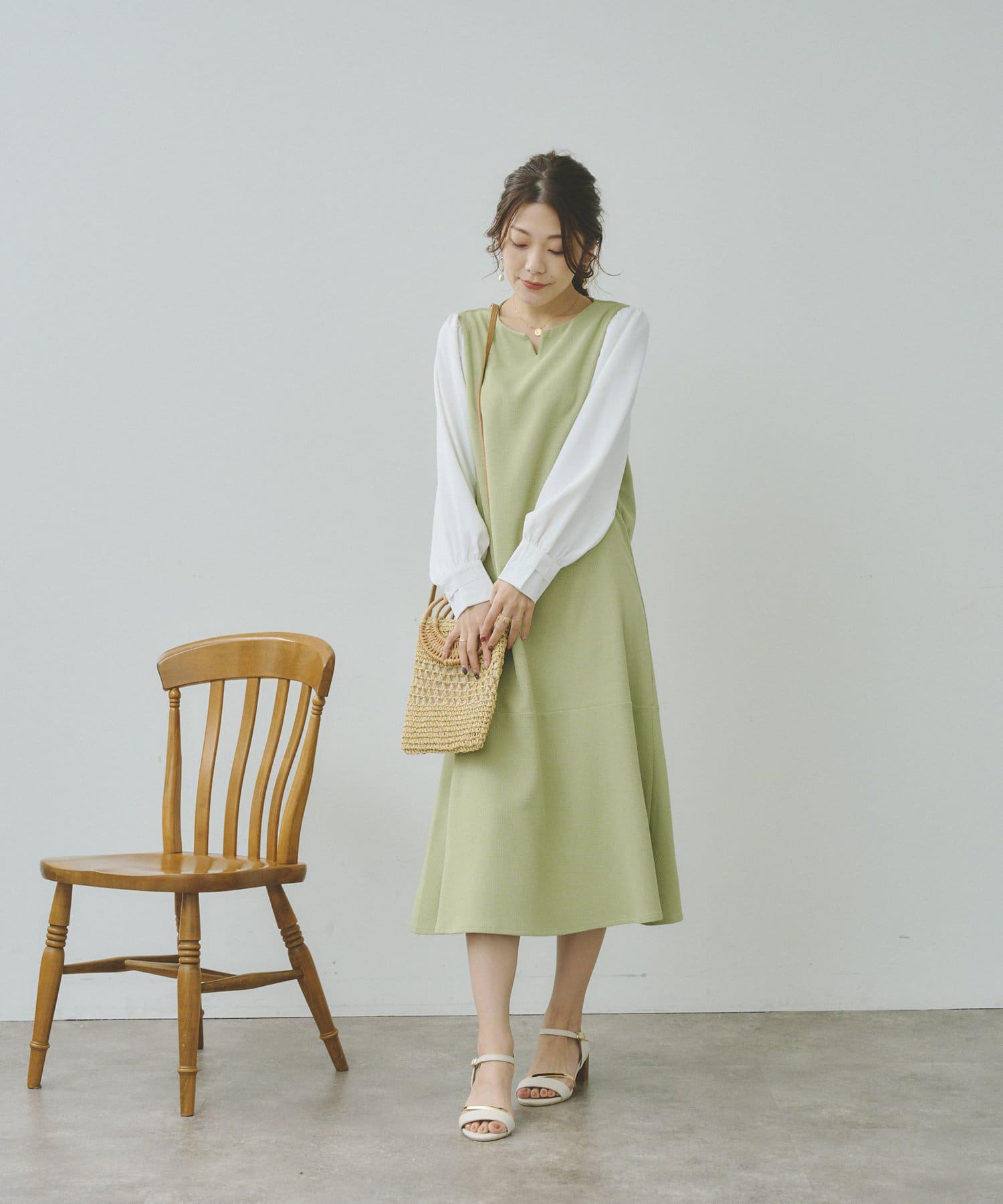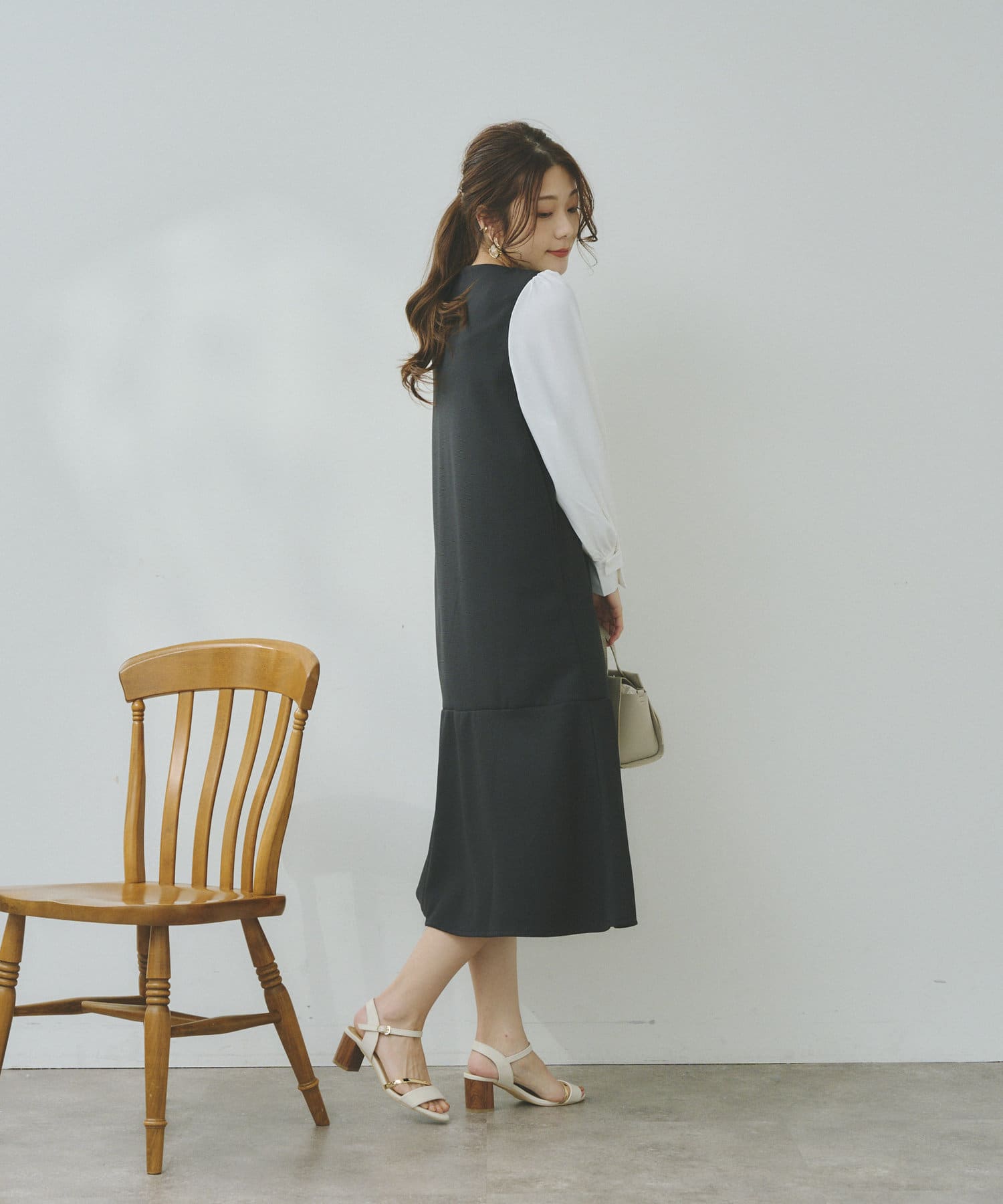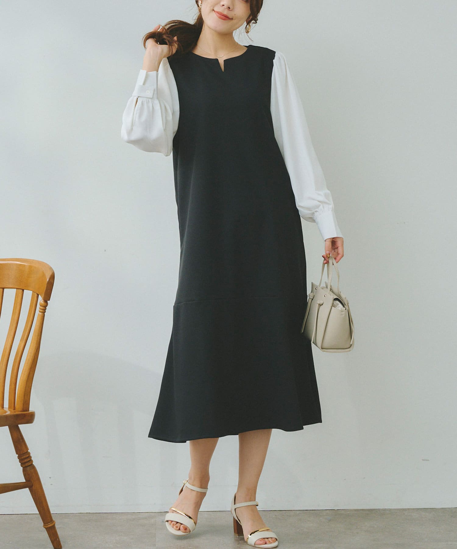 ・セットインの肩切替でかっちりとした上品なワンピース。