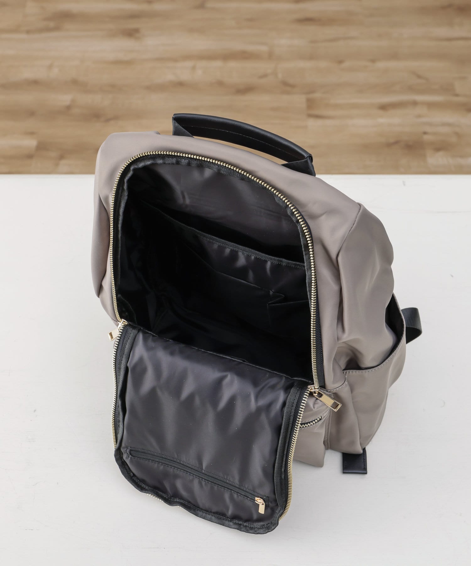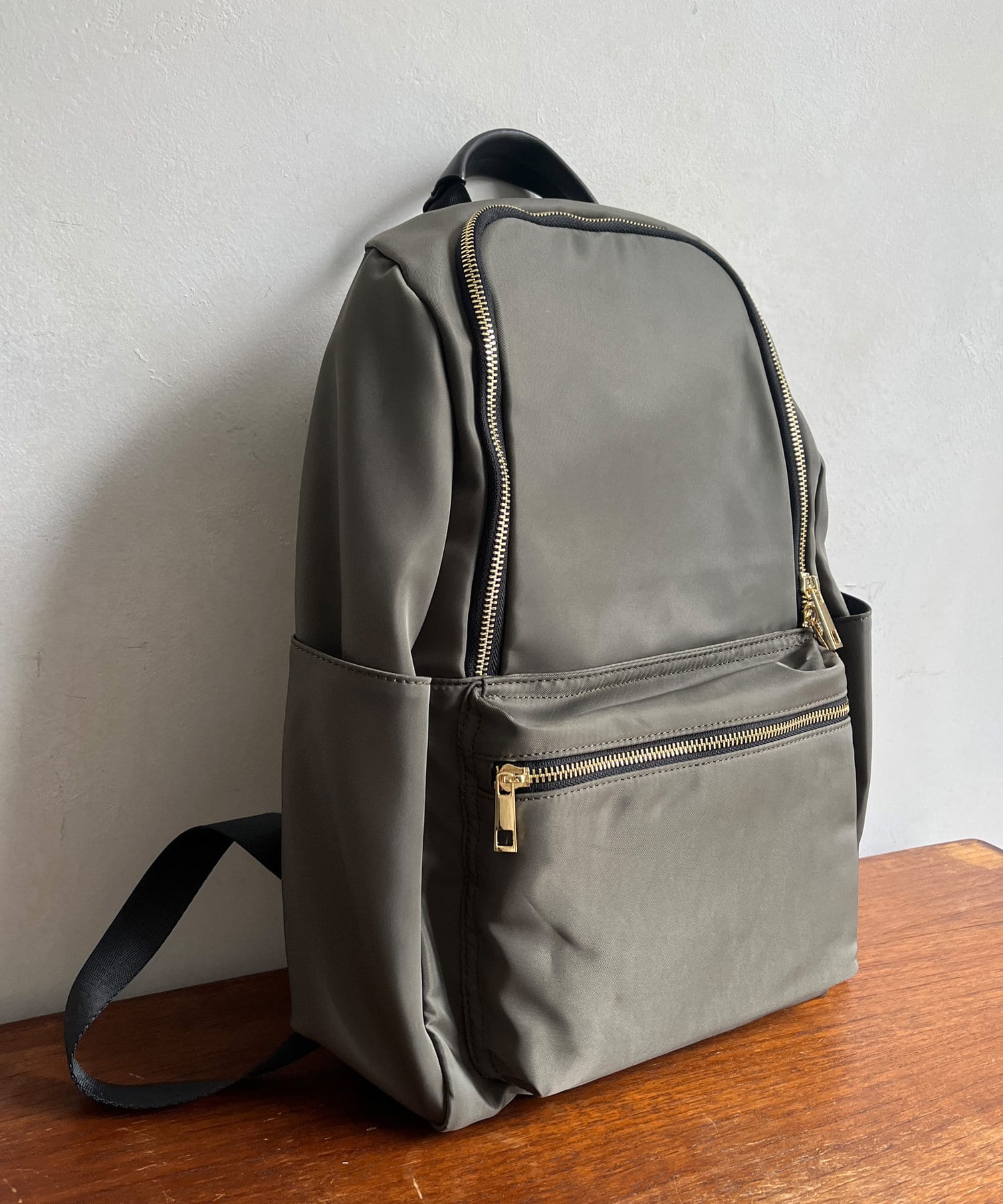 ・キレイ目コーディネートにも馴染みやすい無地×光沢デザイン。