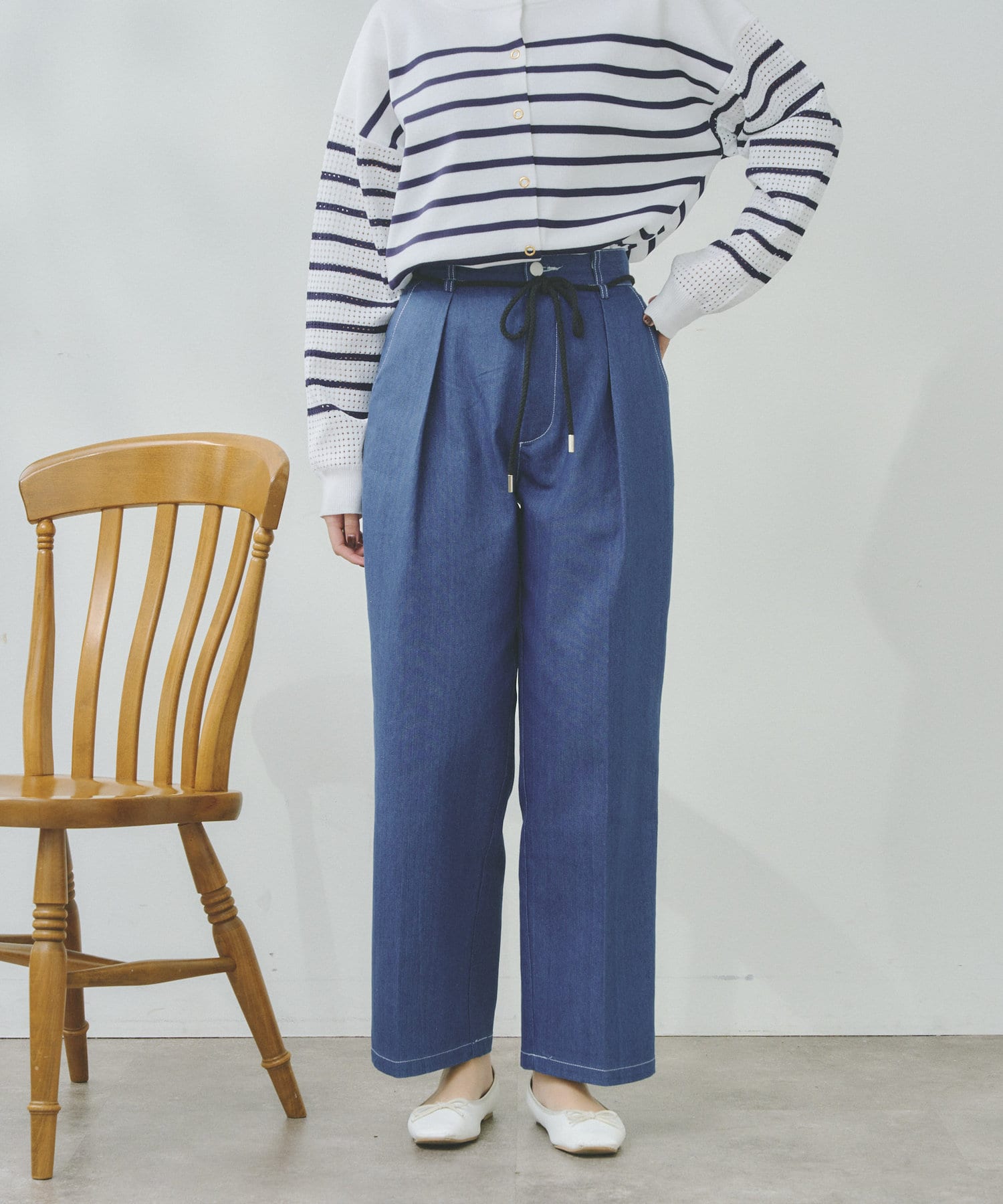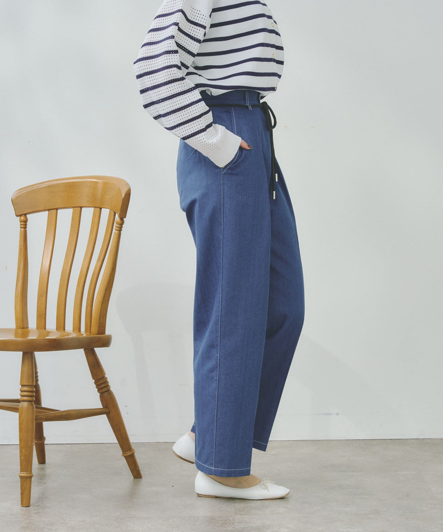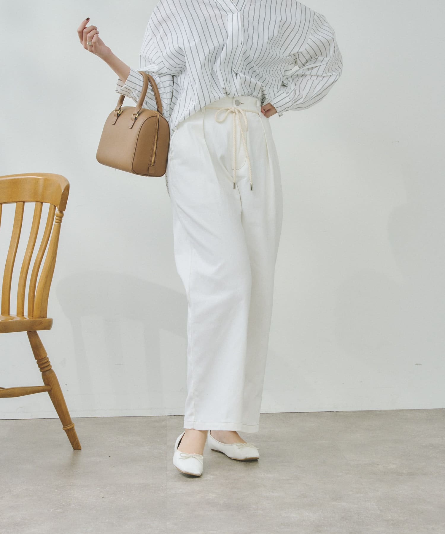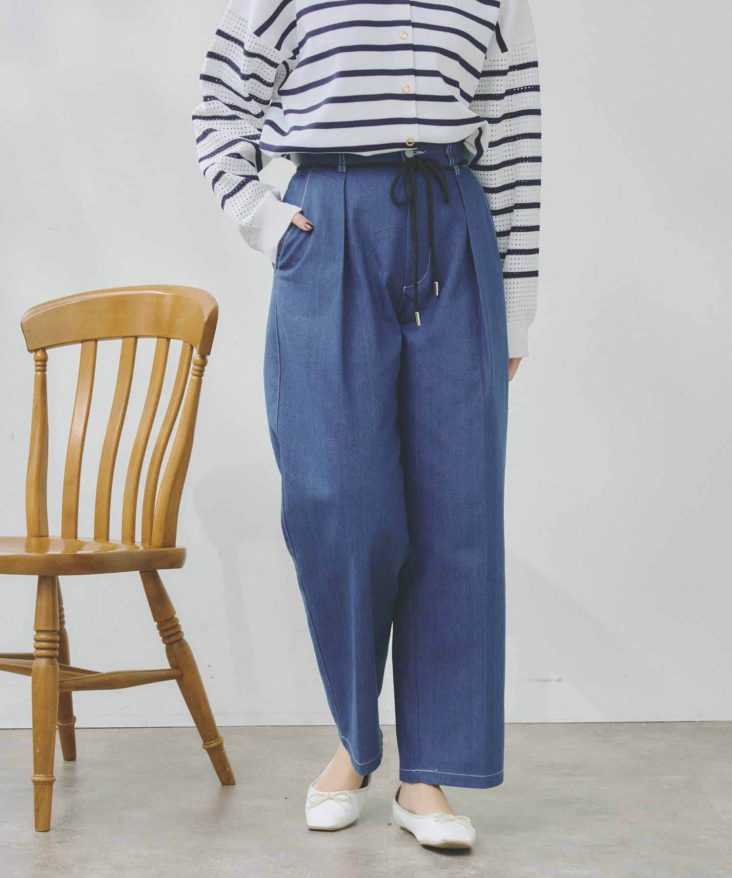 ロープベルトがアクセントになるタックパンツ