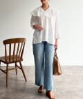 すこし甘めで存在感のある襟元でどこから見ても雰囲気のあるコーディネートに。