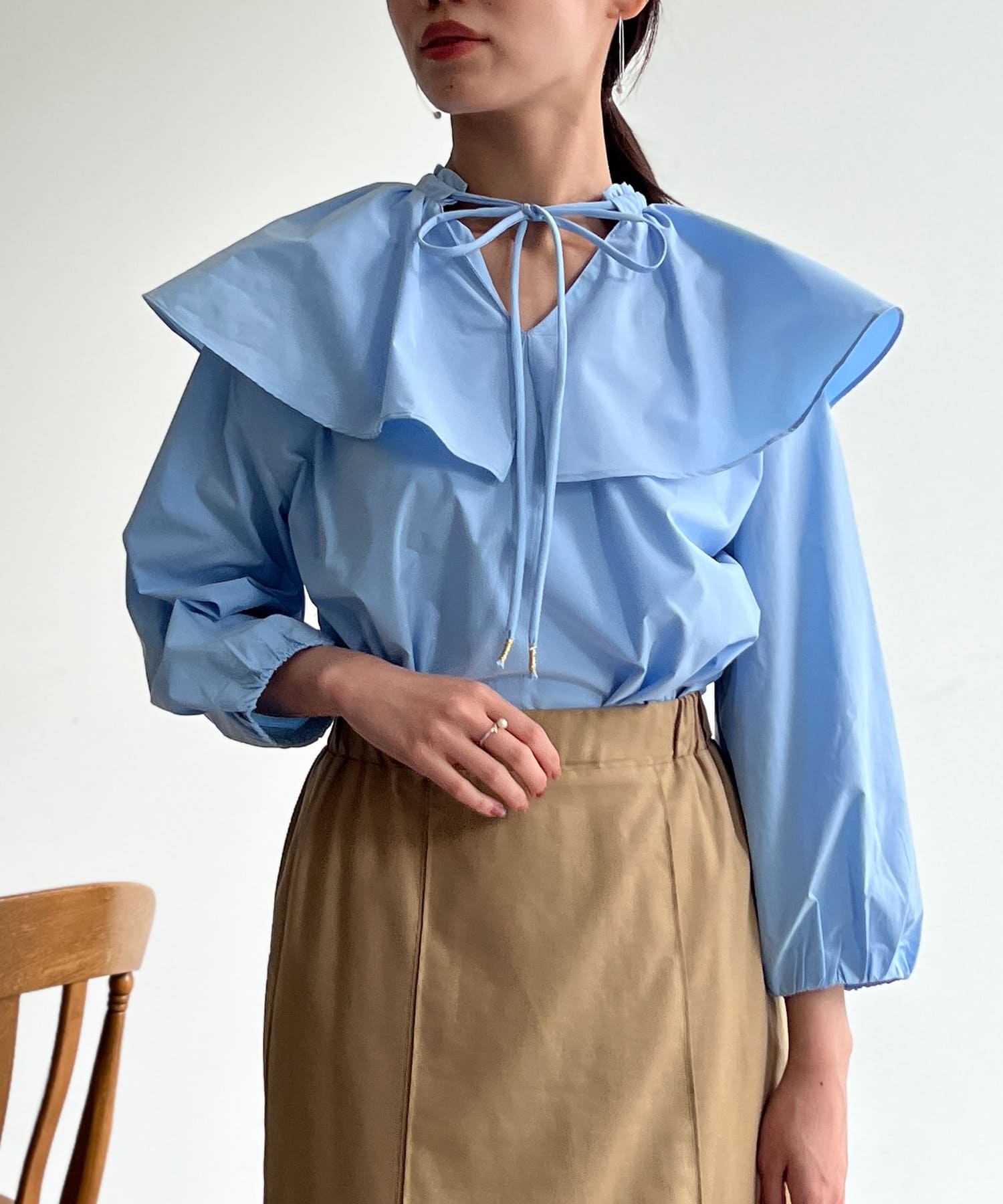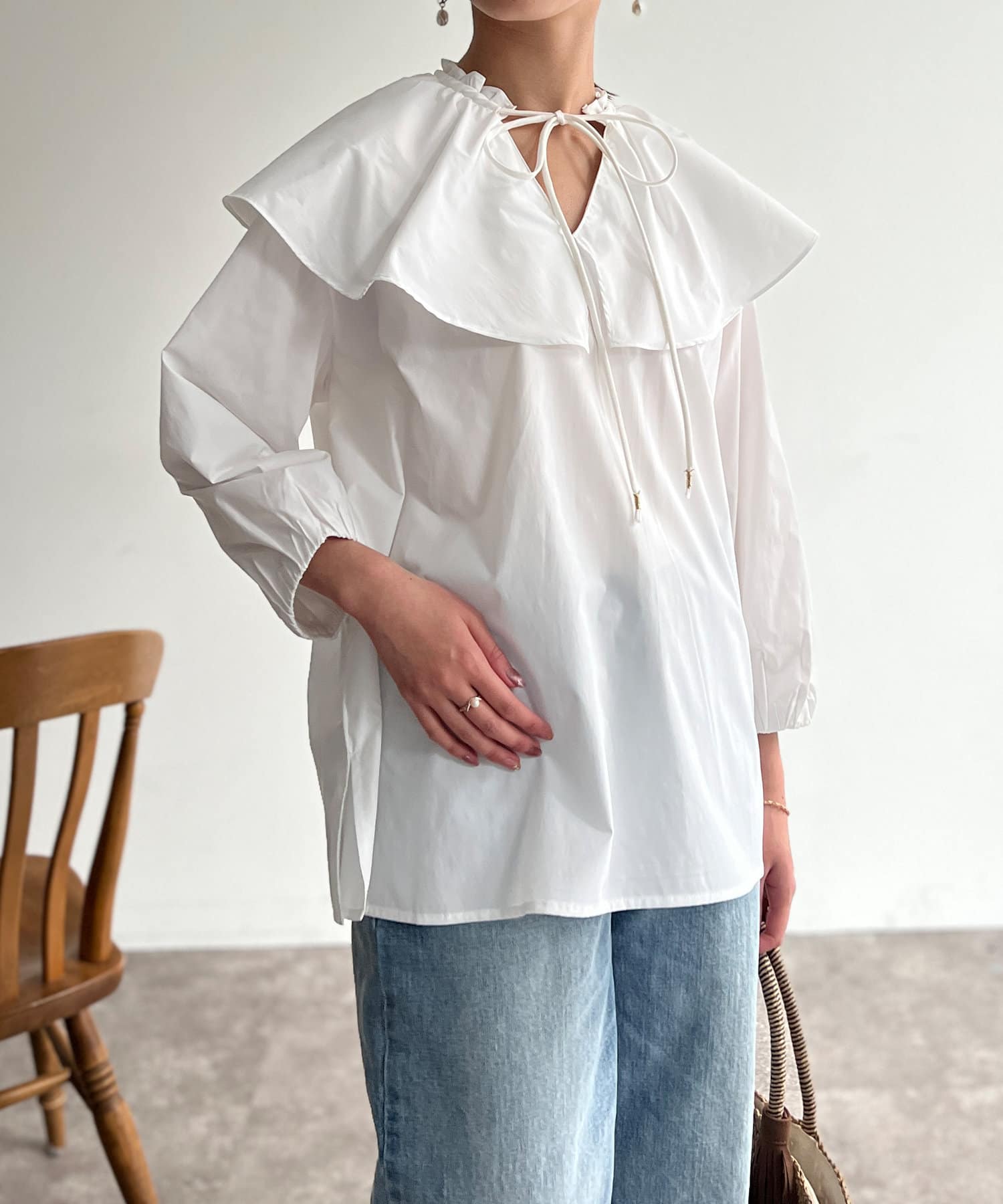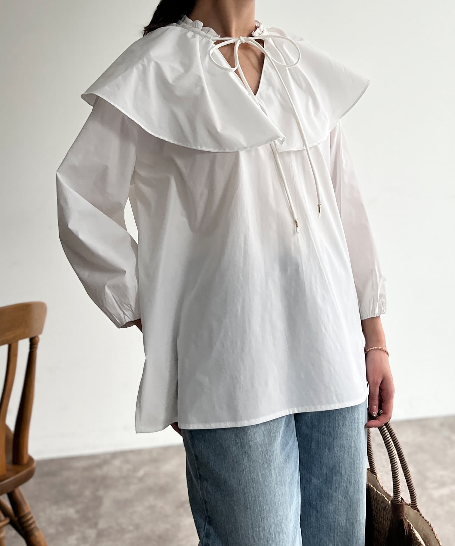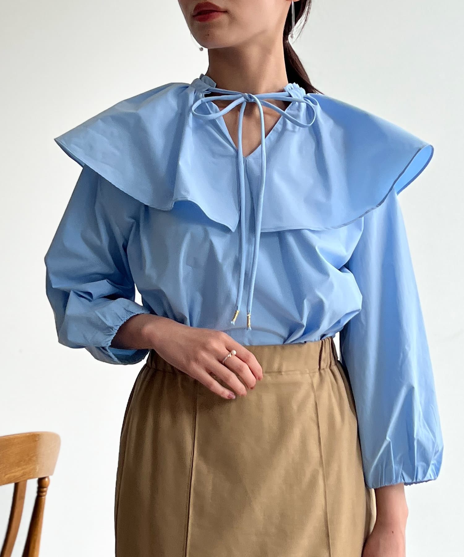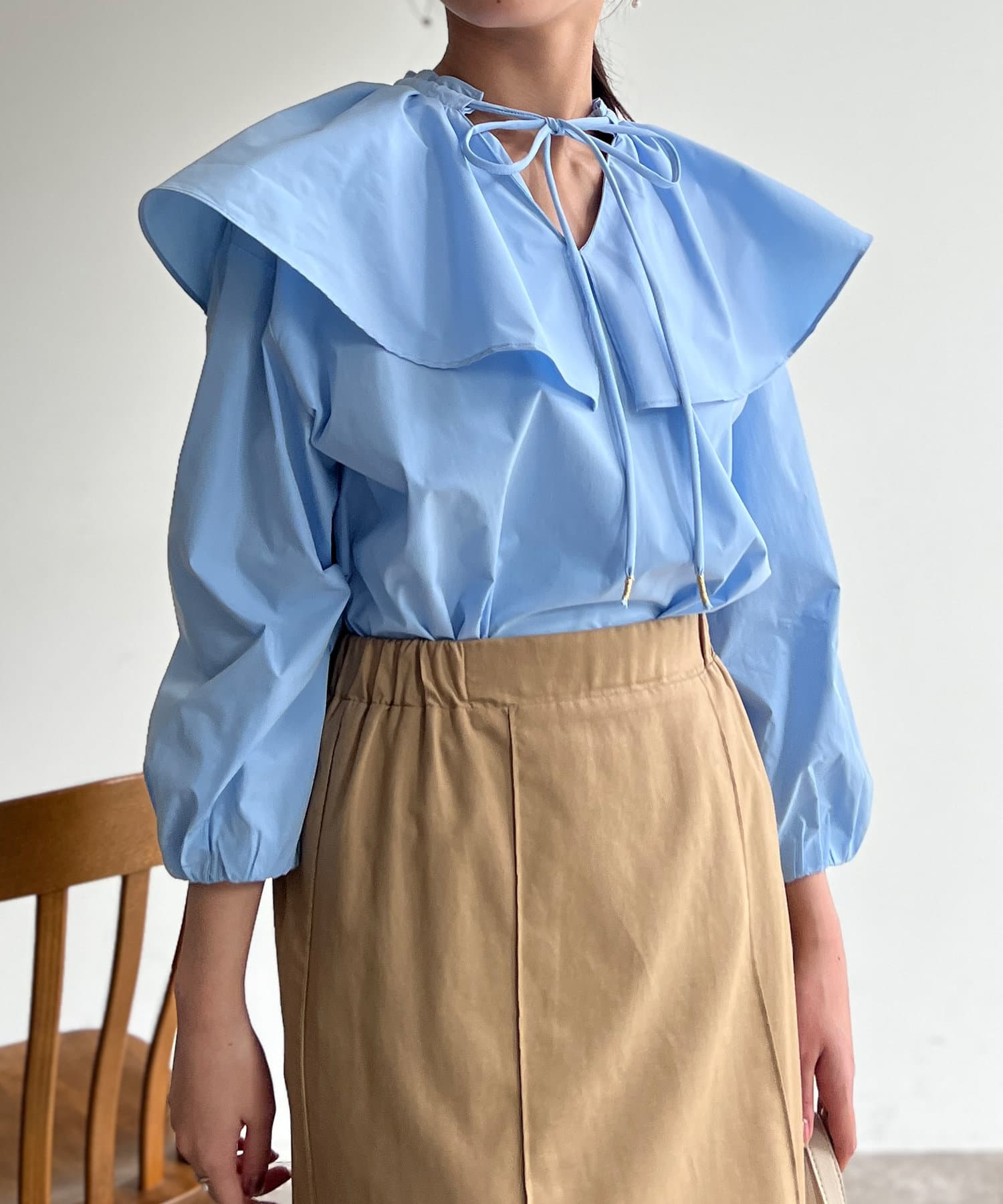 存在感のあるビッグカラーと甘めな雰囲気がポイントのブラウスです。