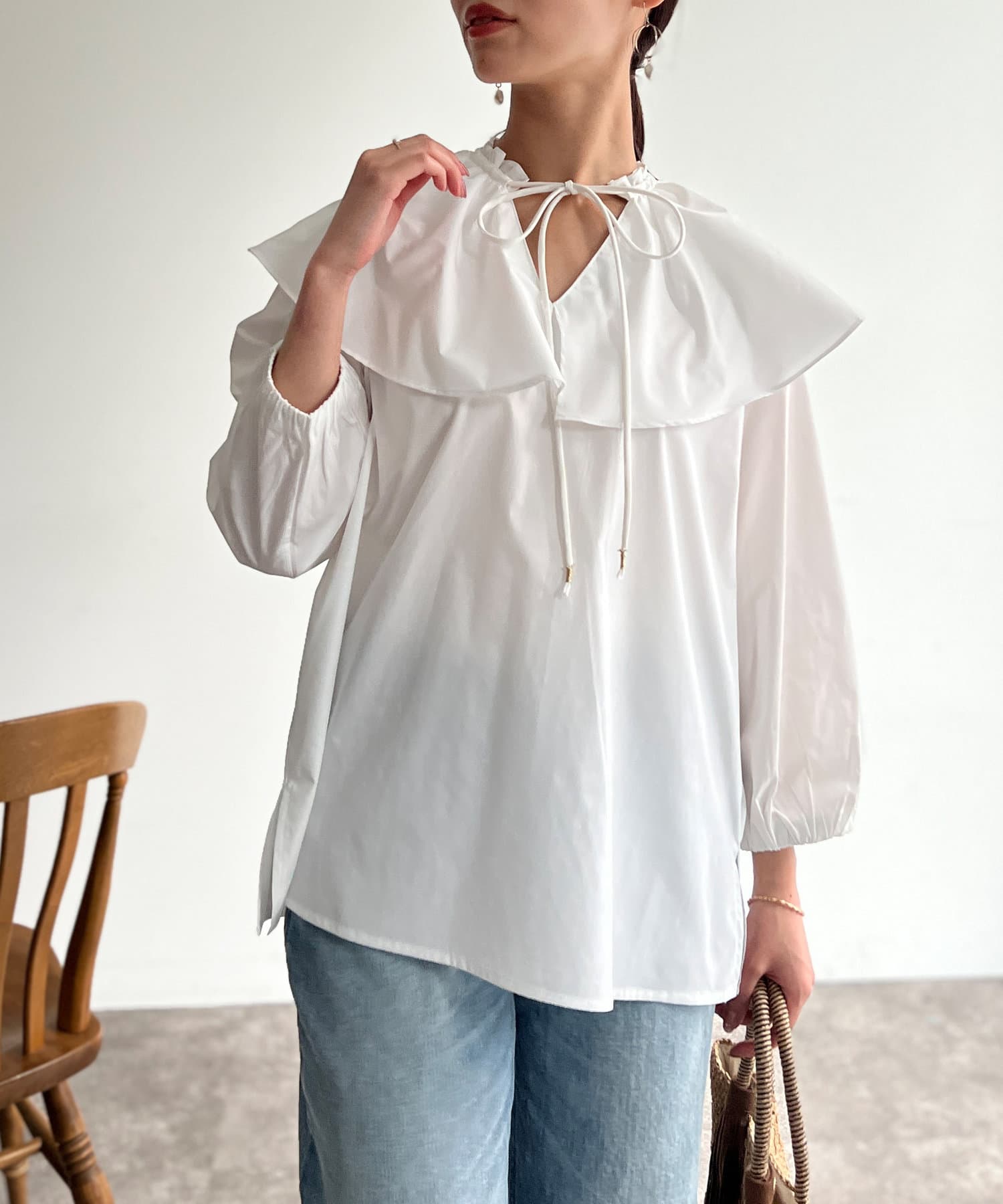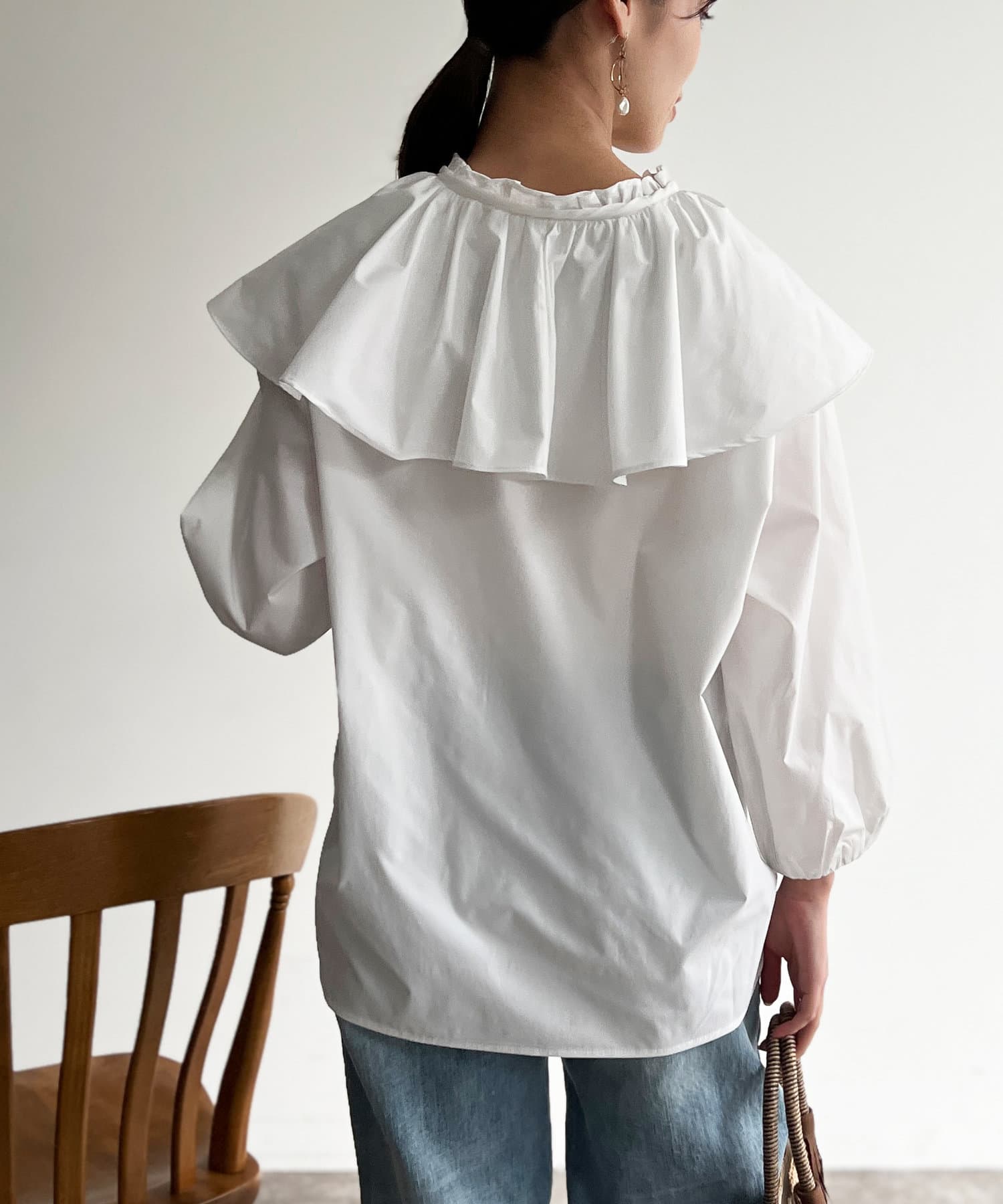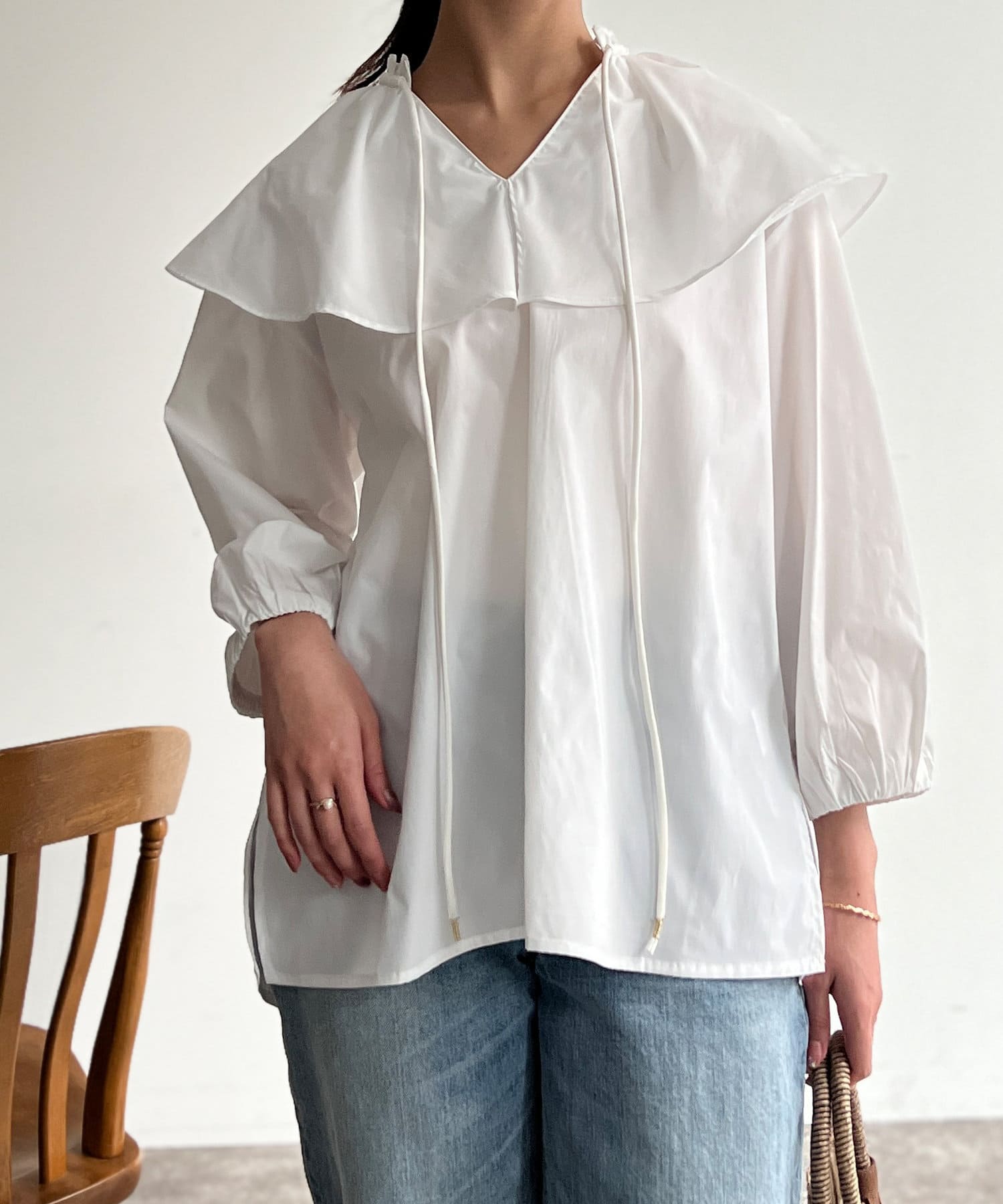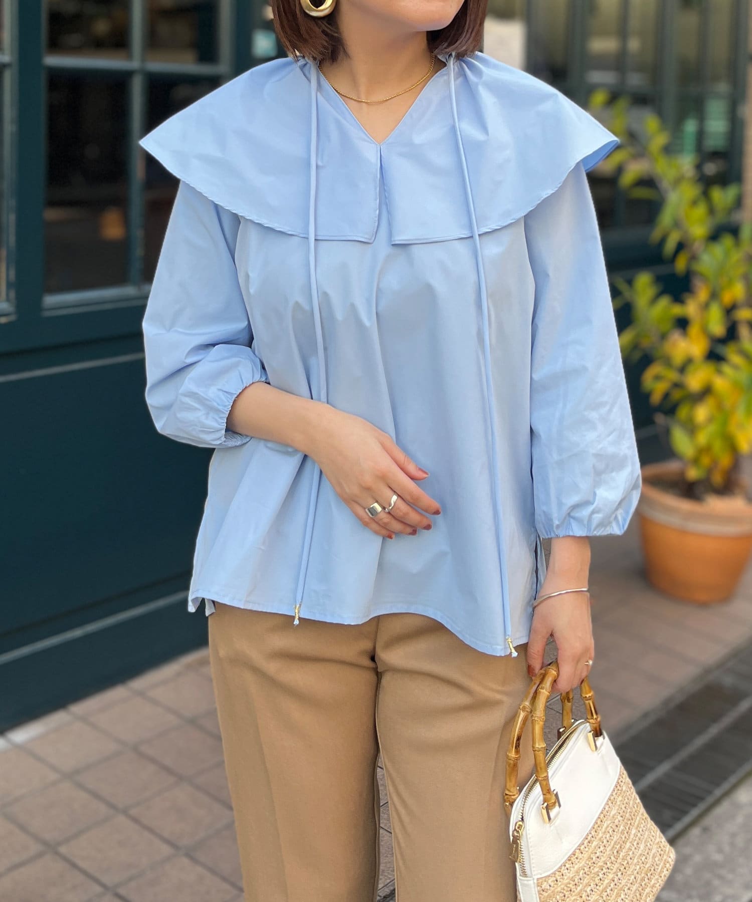 存在感のあるビッグカラーと甘めな雰囲気がポイントのブラウスです。
