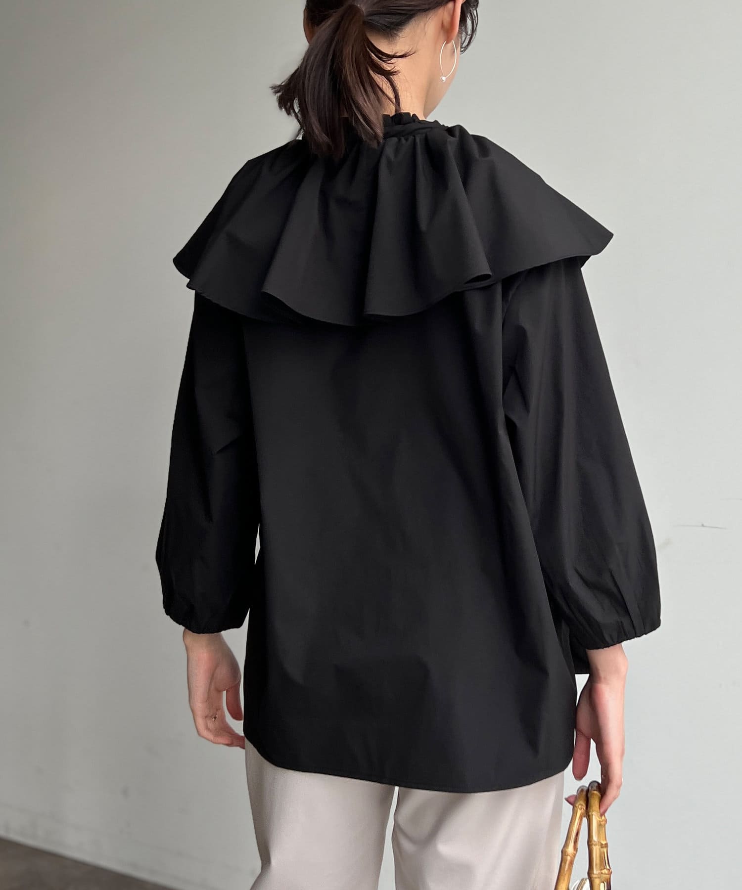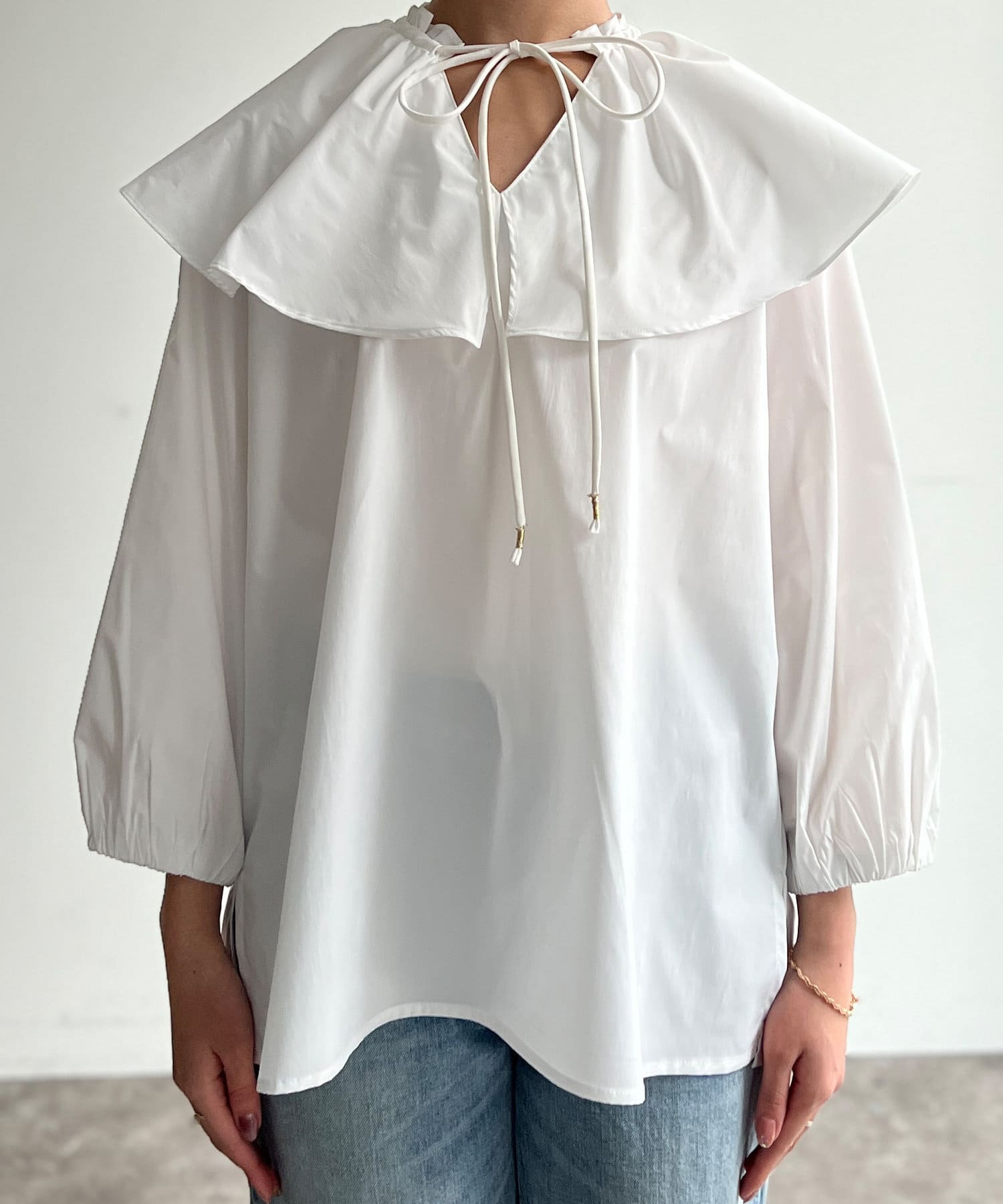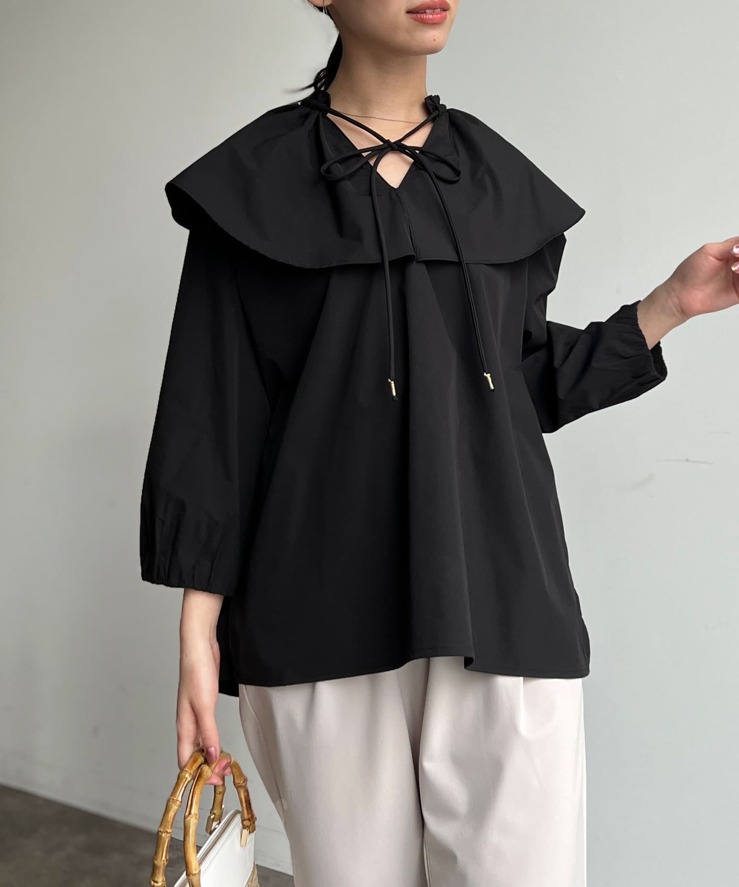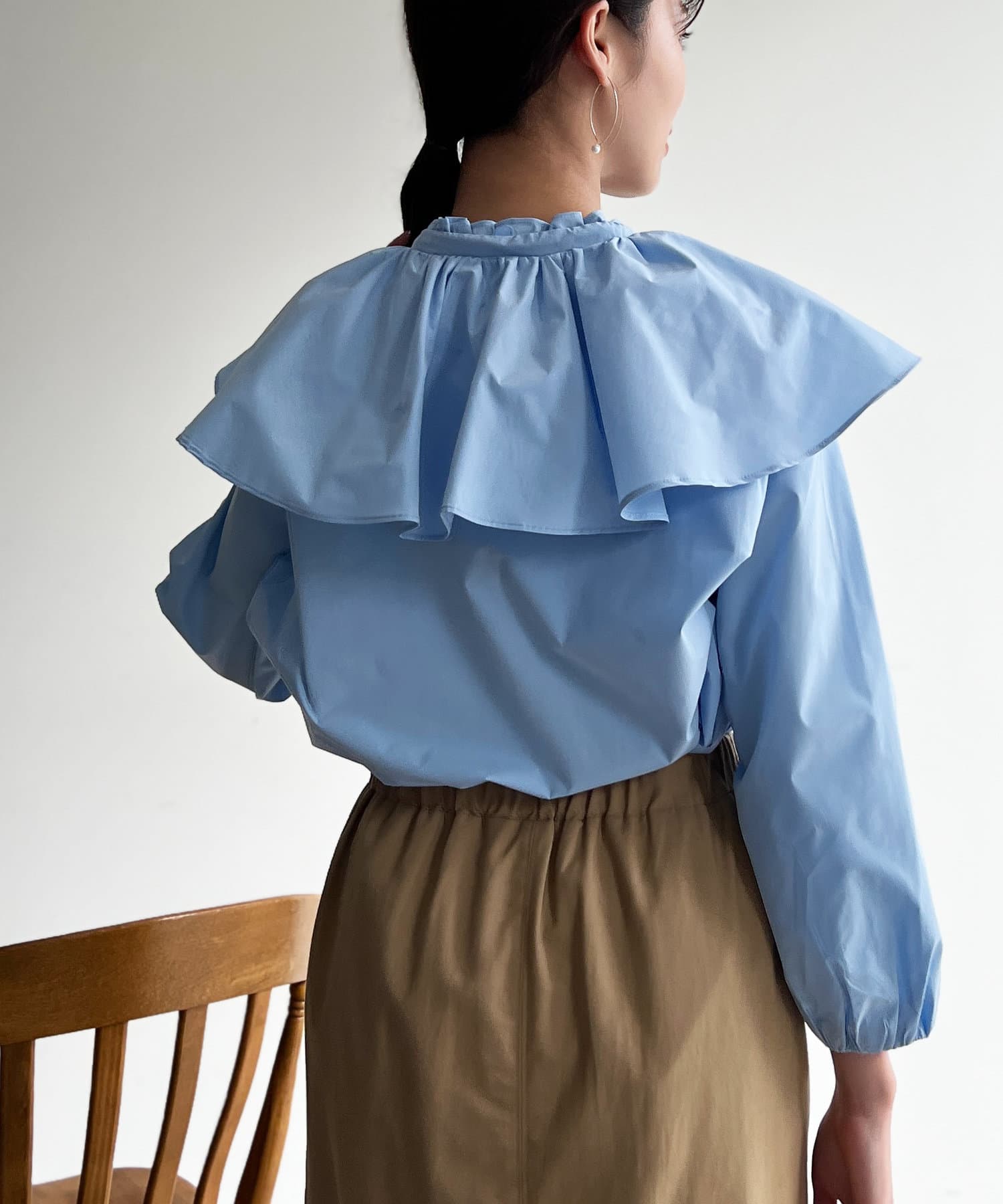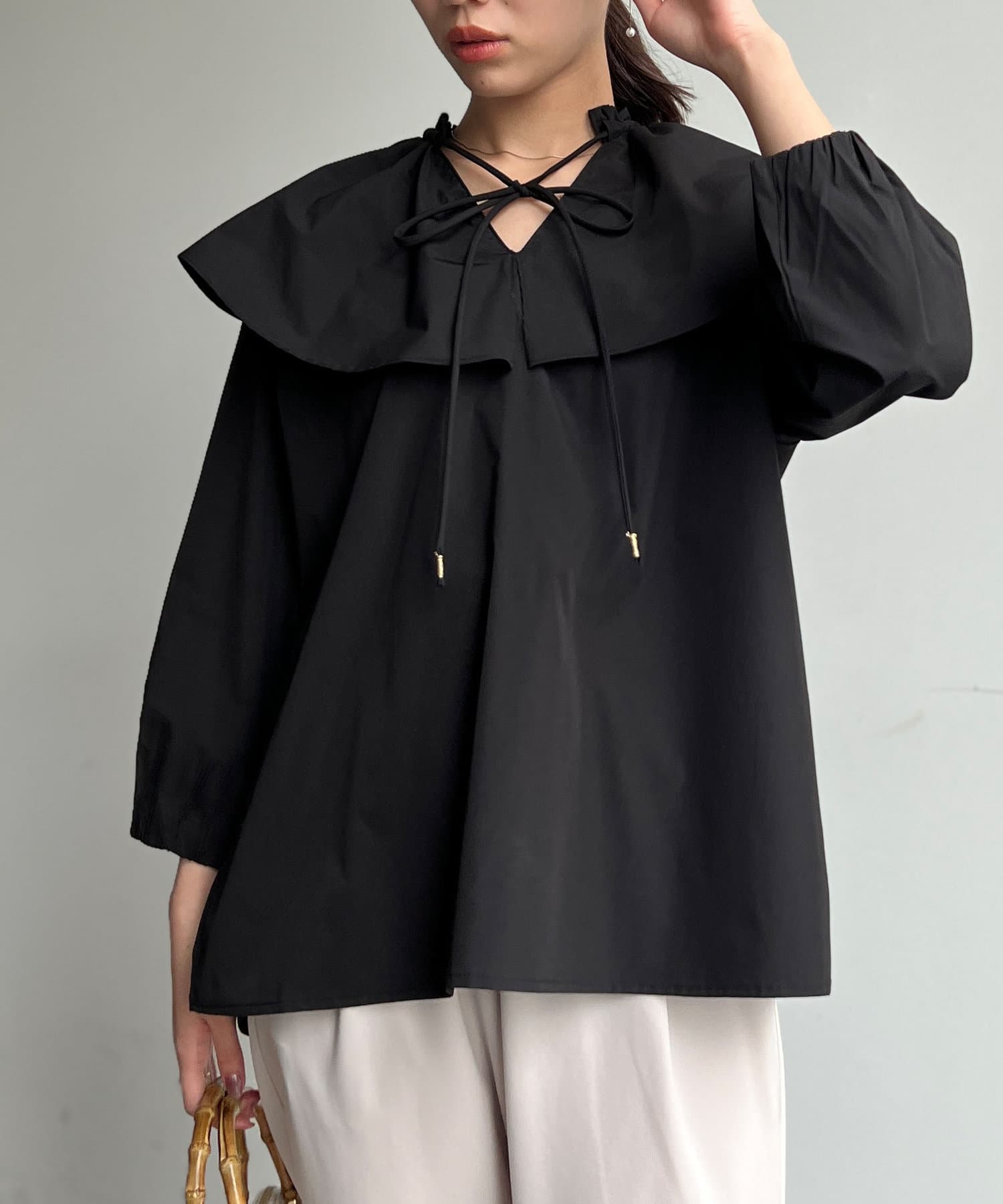 存在感のあるビッグカラーと甘めな雰囲気がポイントのブラウスです。