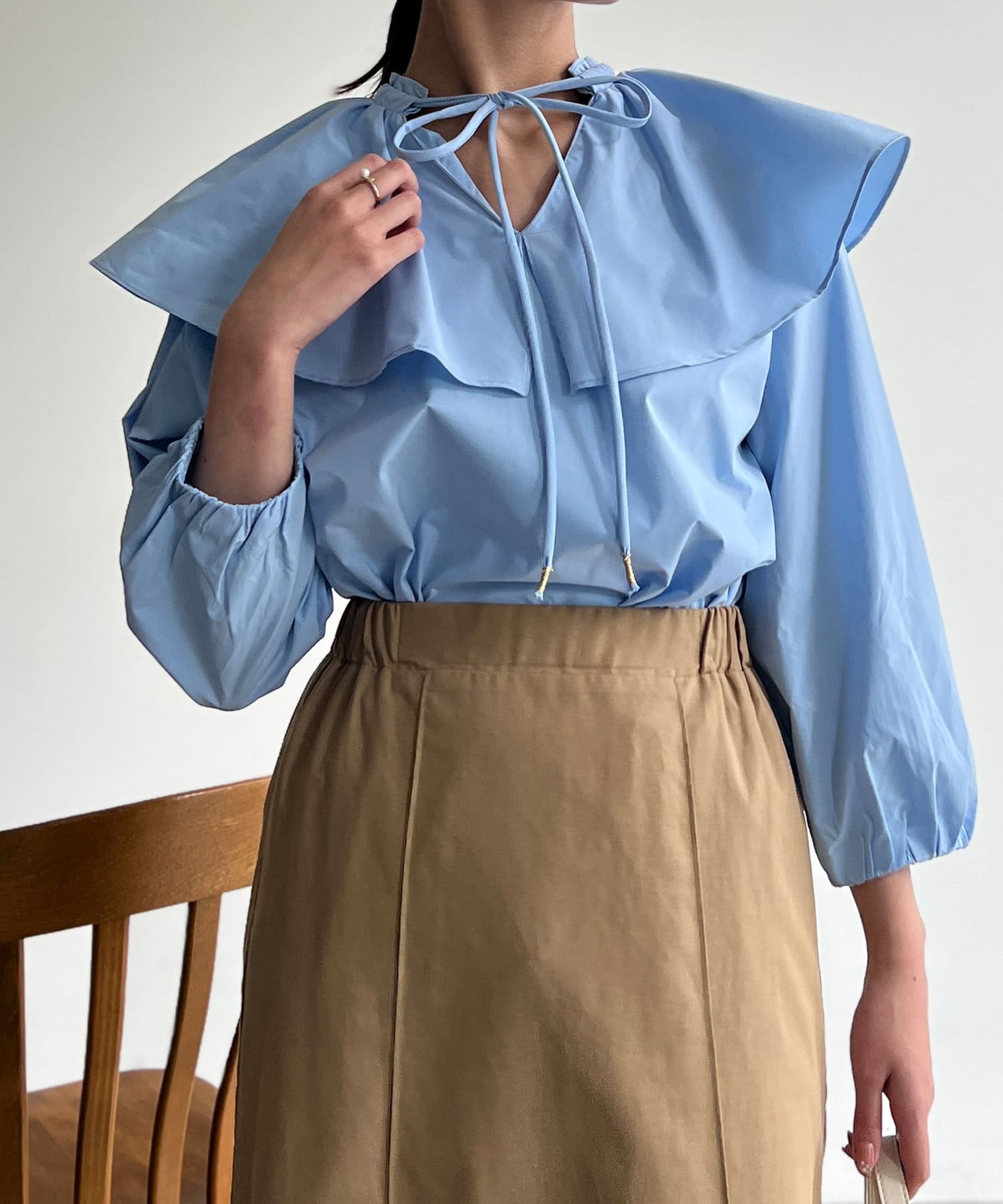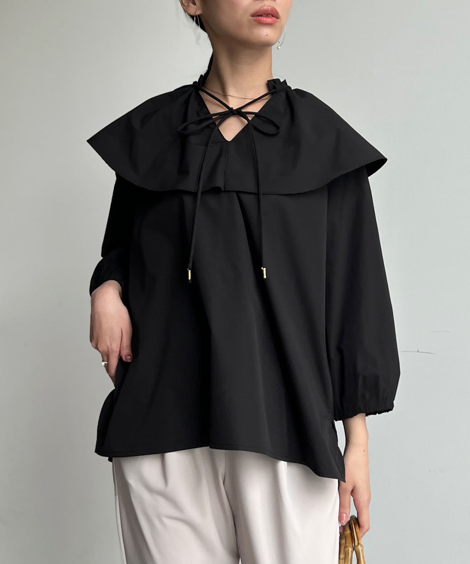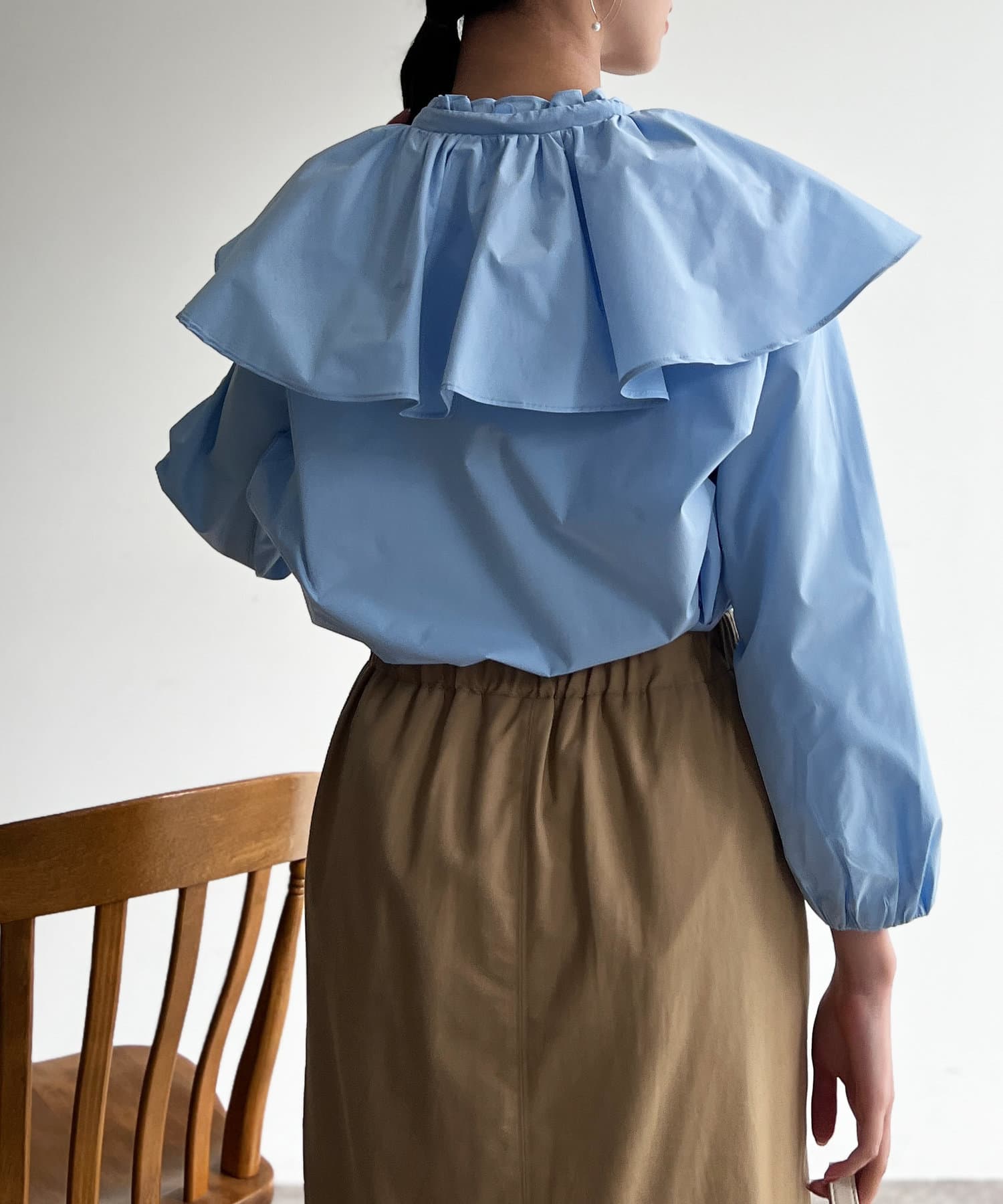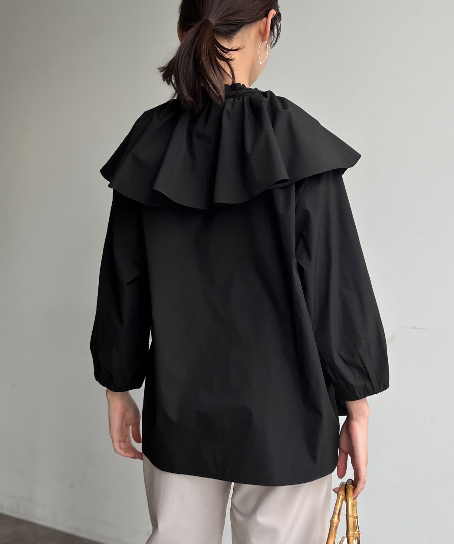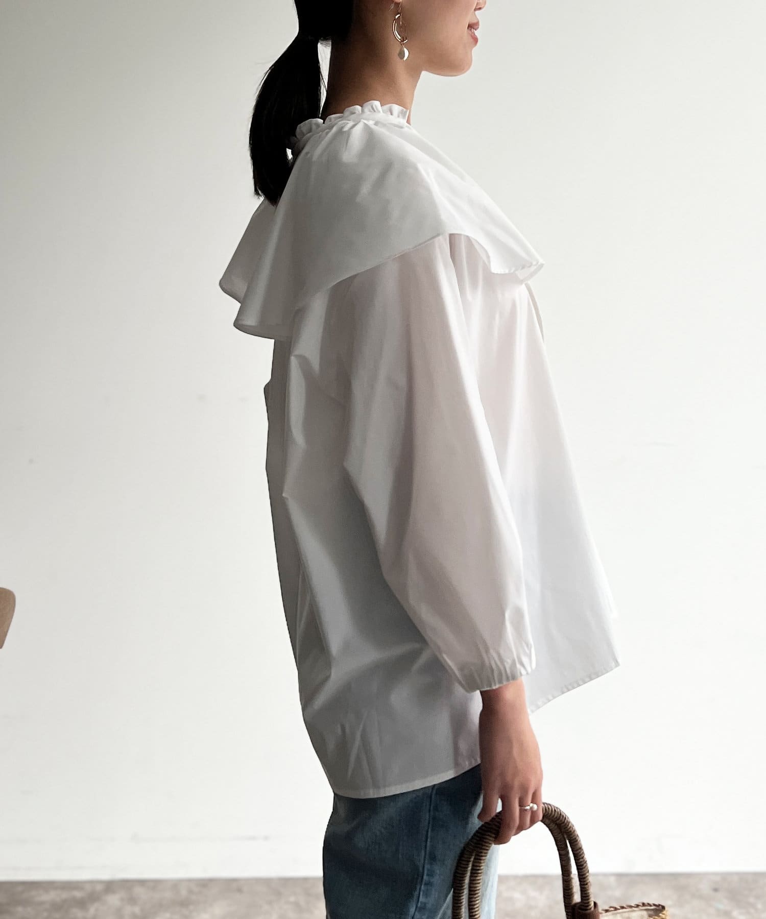 存在感のあるビッグカラーと甘めな雰囲気がポイントのブラウスです。