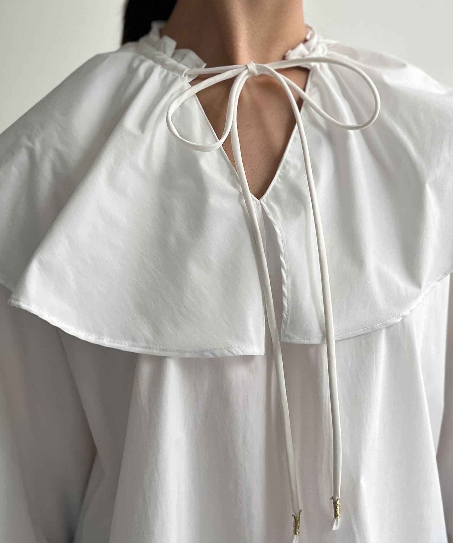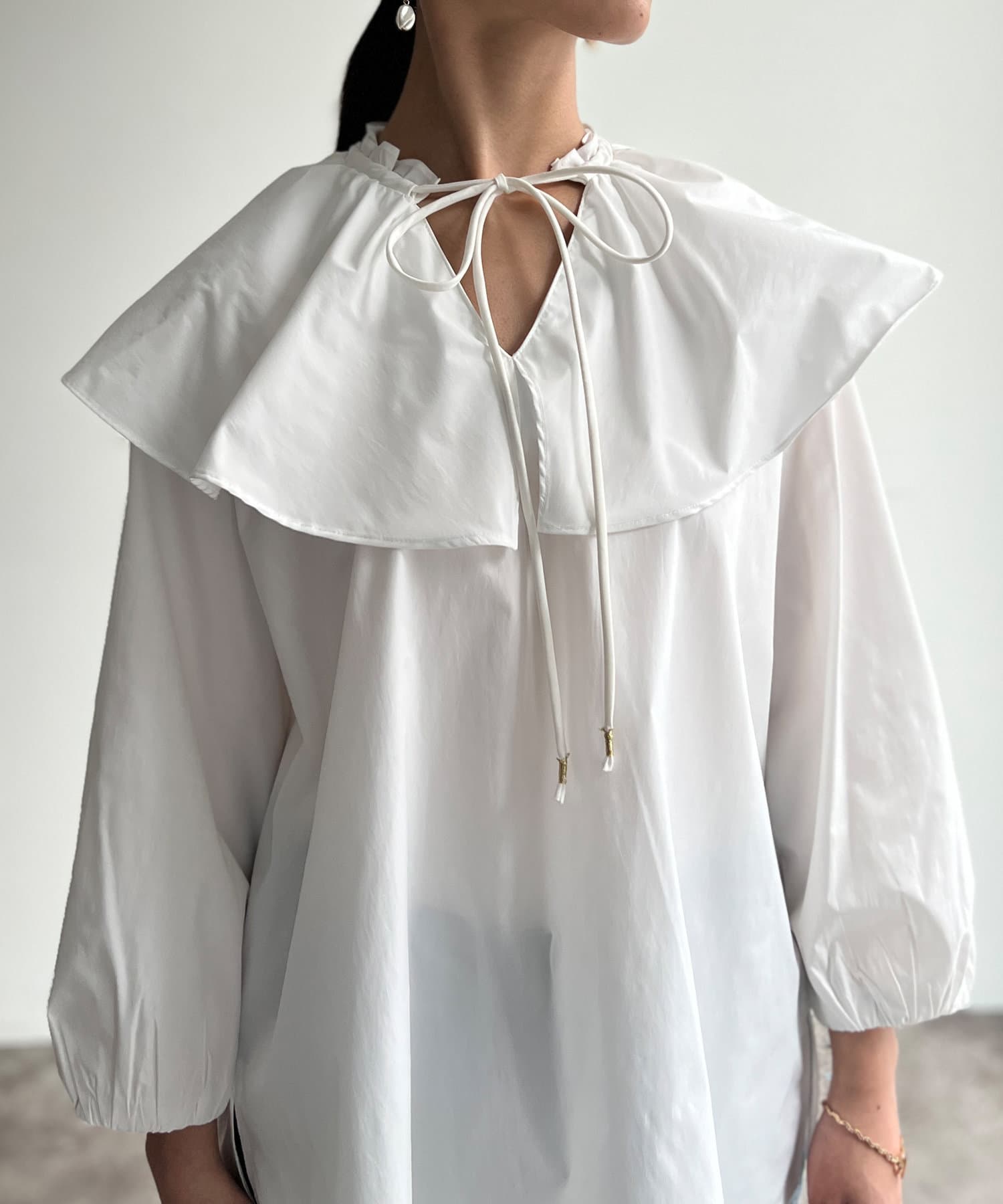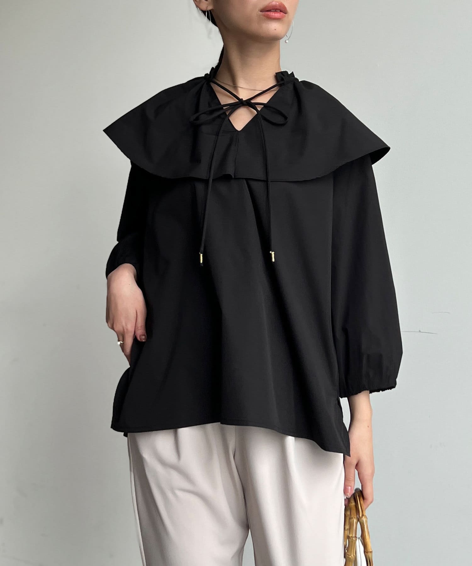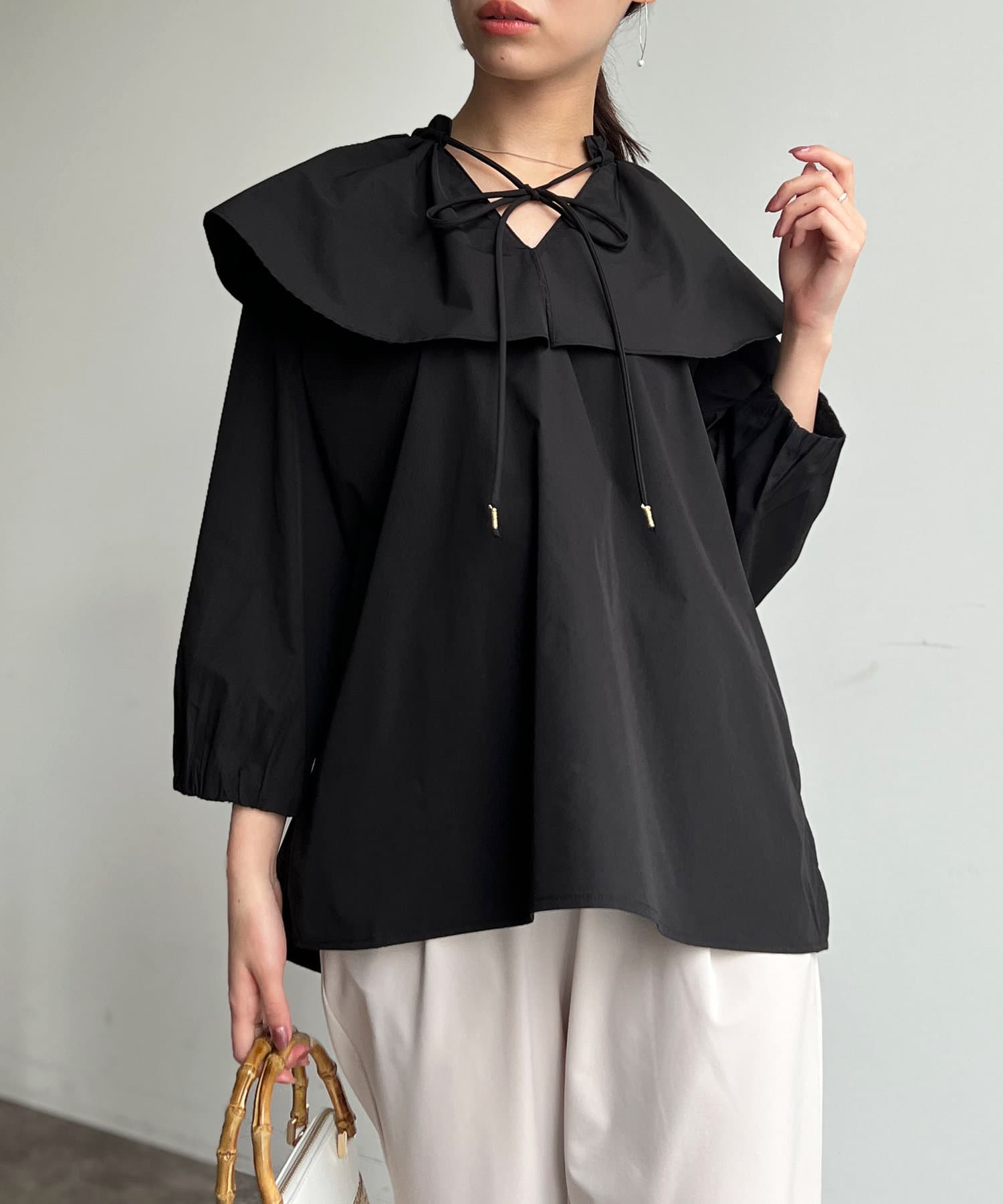 存在感のあるビッグカラーと甘めな雰囲気がポイントのブラウスです。
