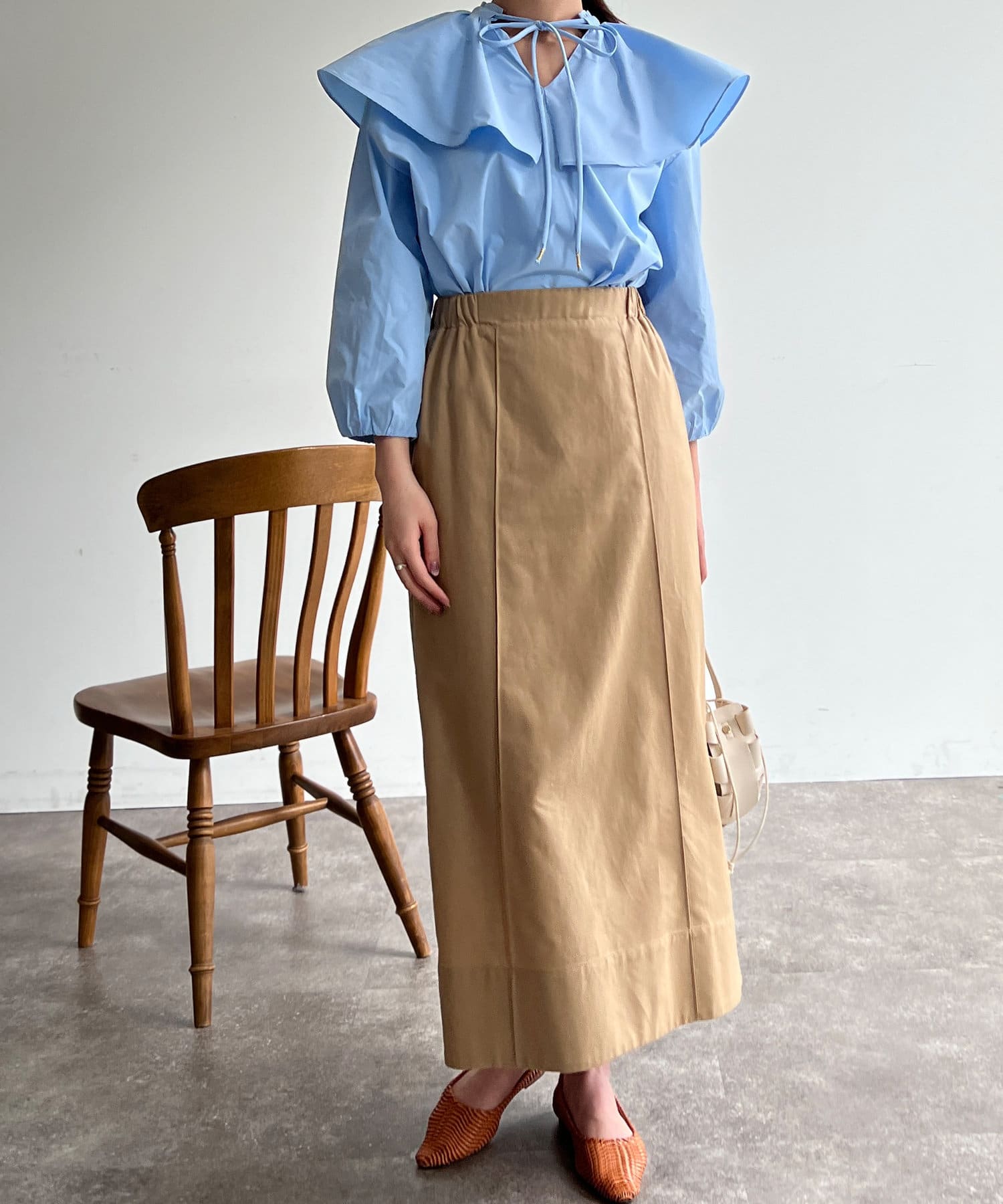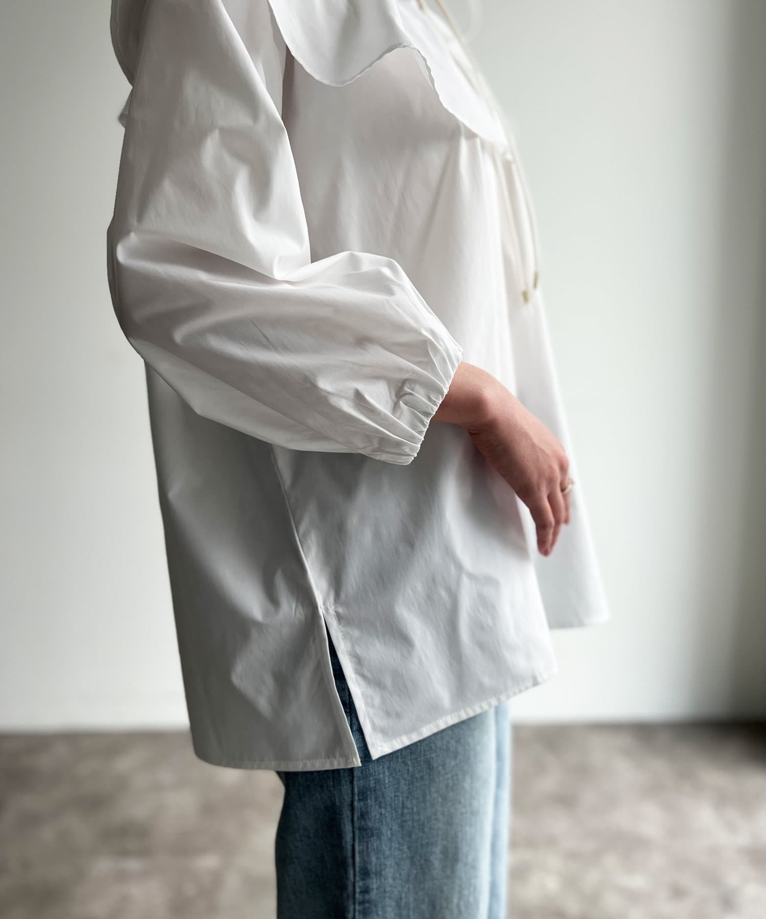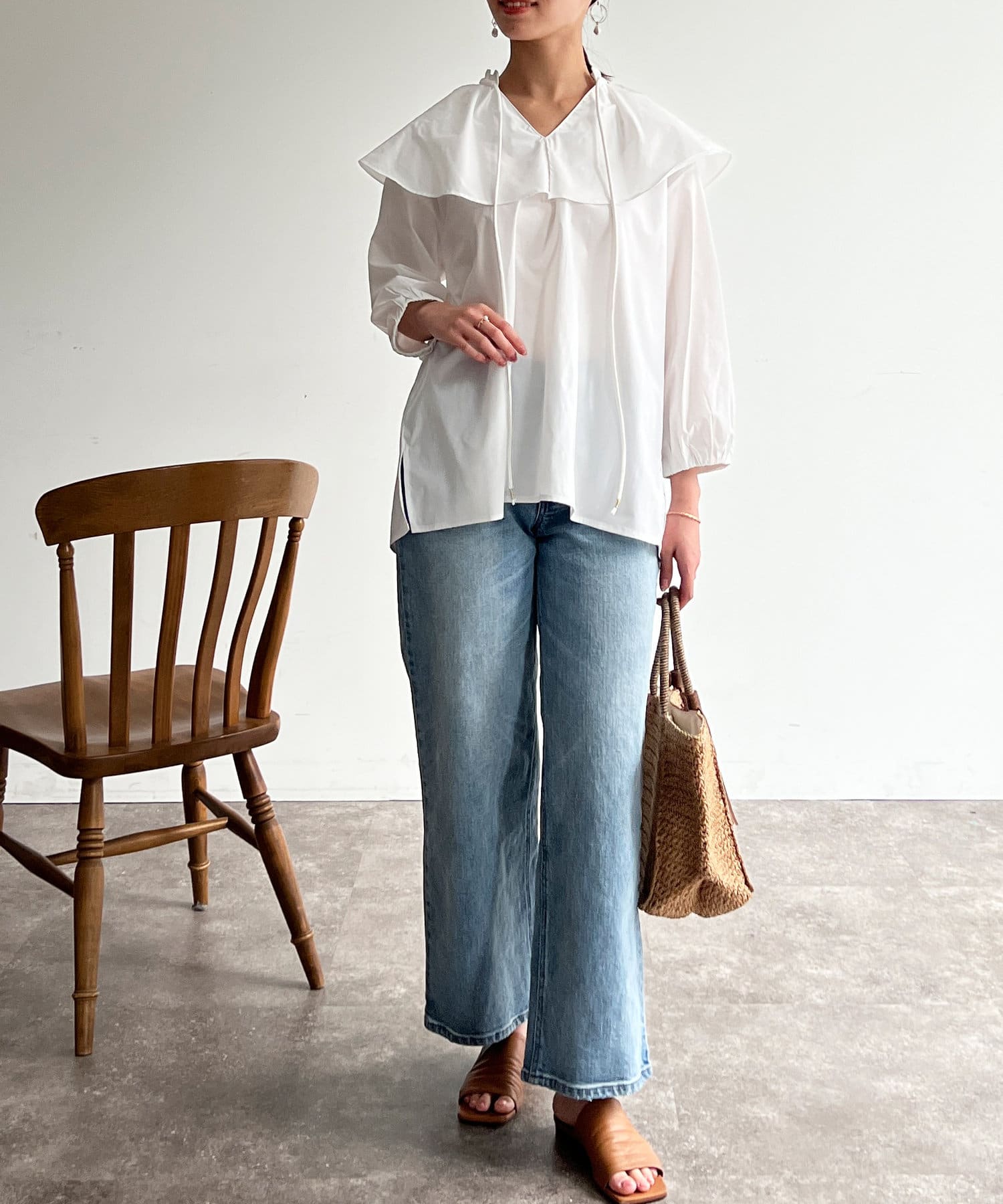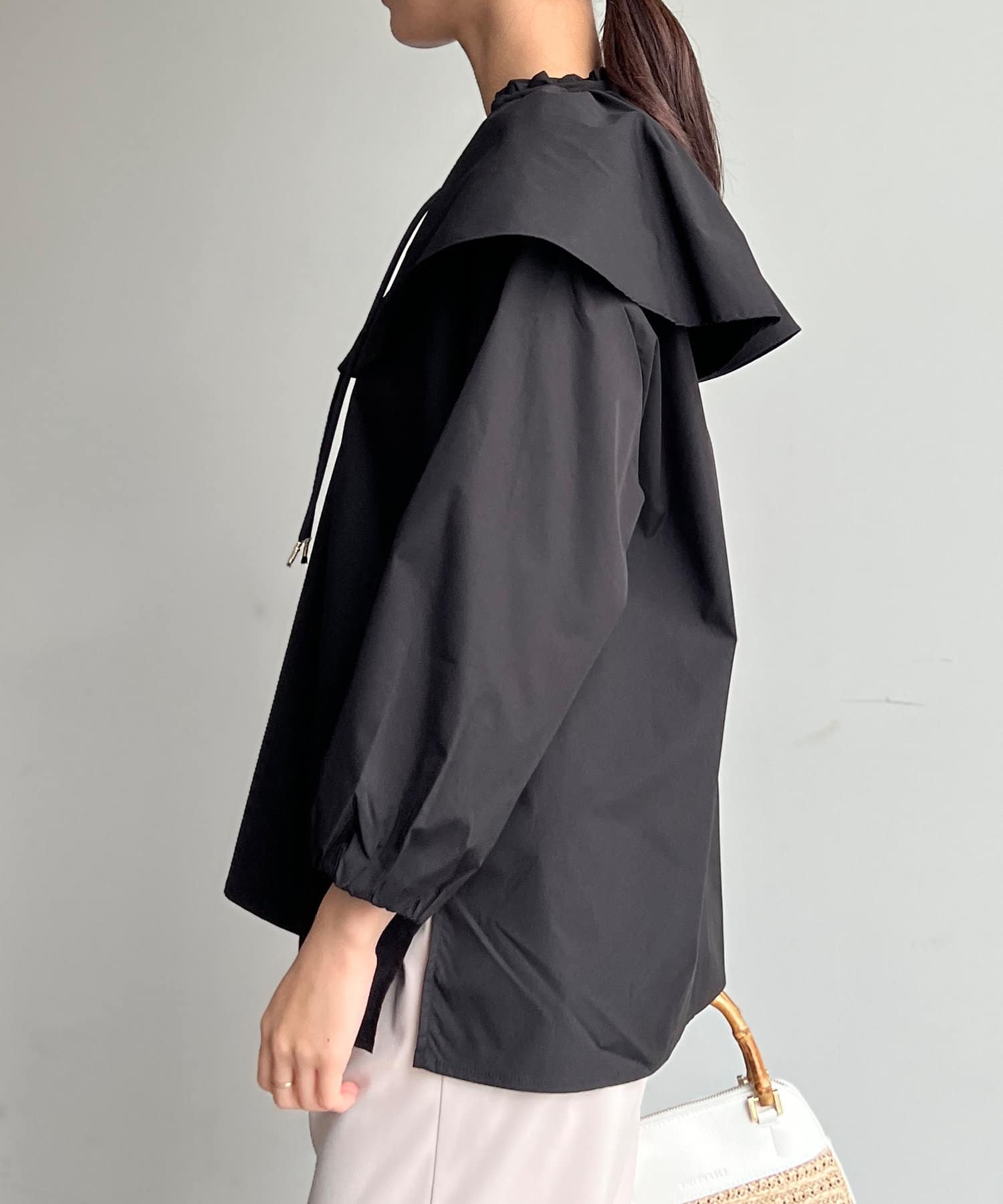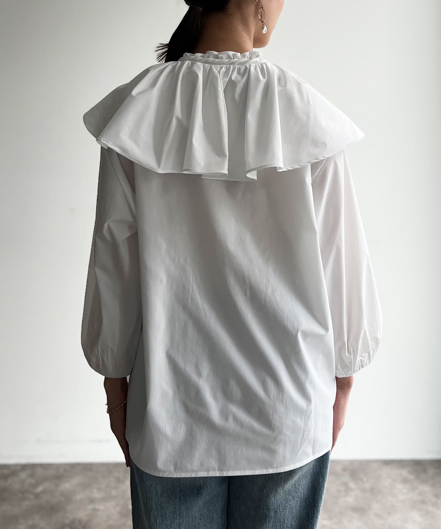 存在感のあるビッグカラーと甘めな雰囲気がポイントのブラウスです。