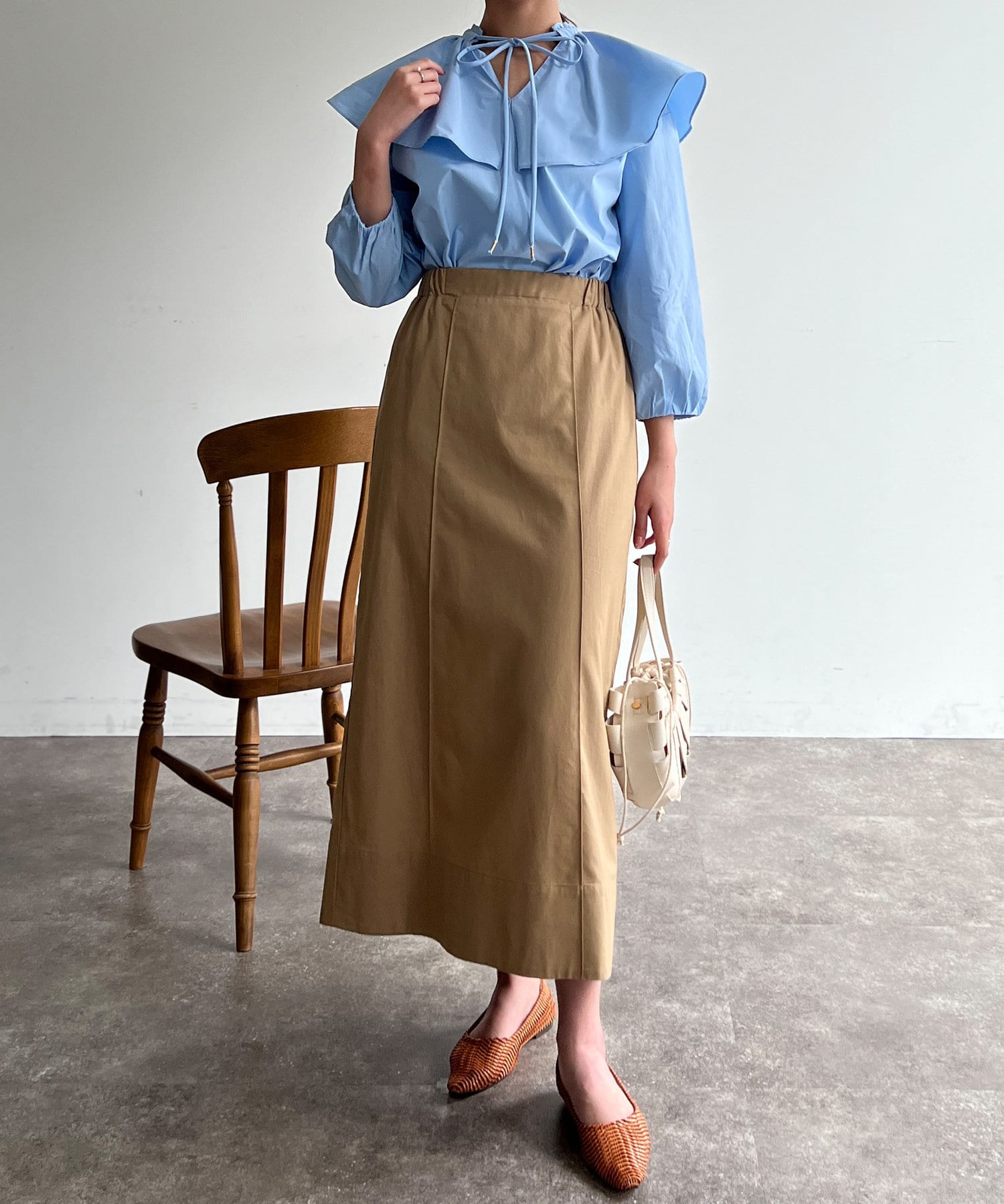 ウエストインしてスカートで合わせたフェミニンコーデにも◎