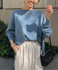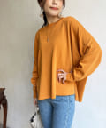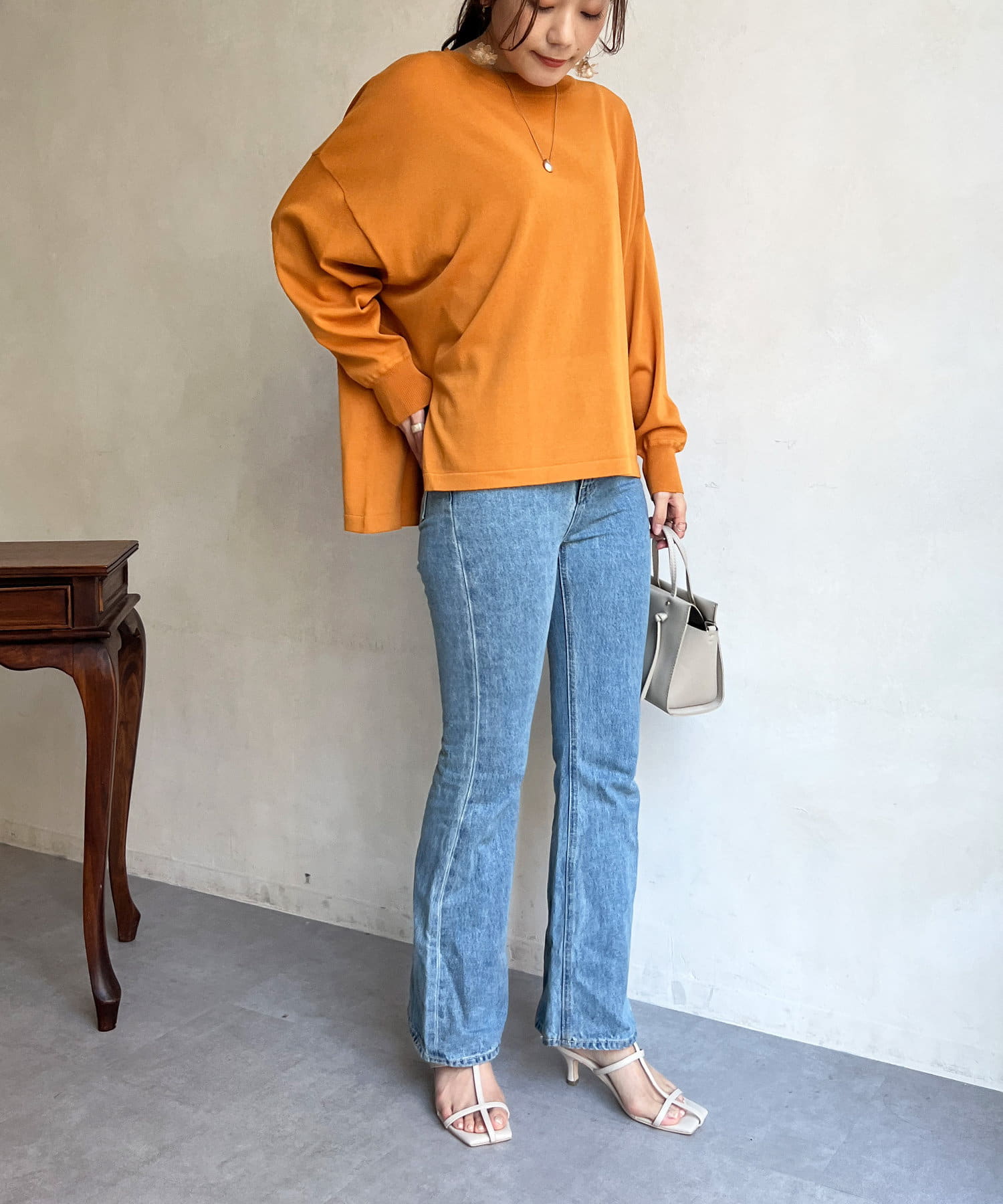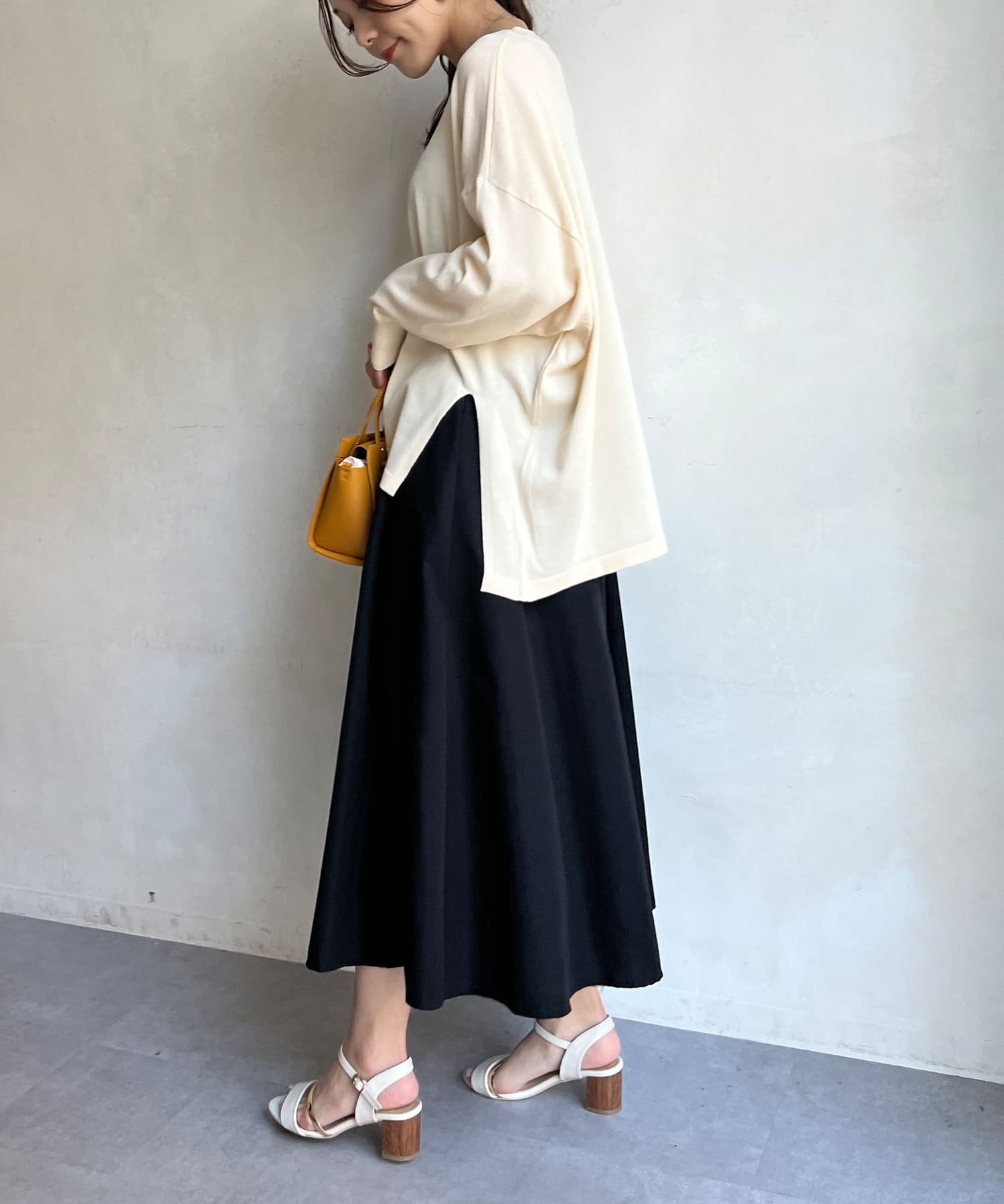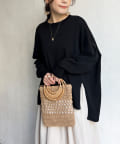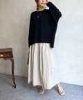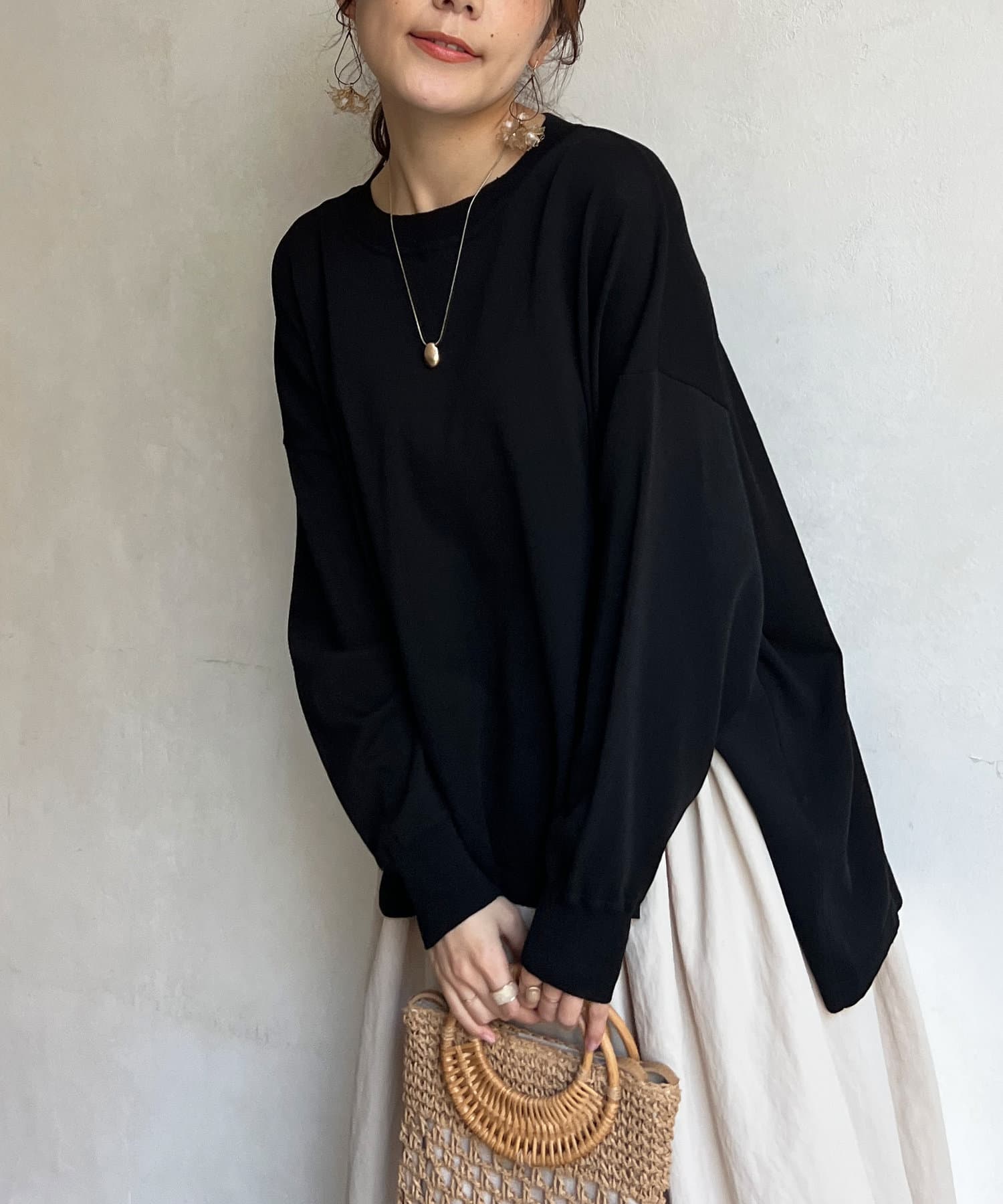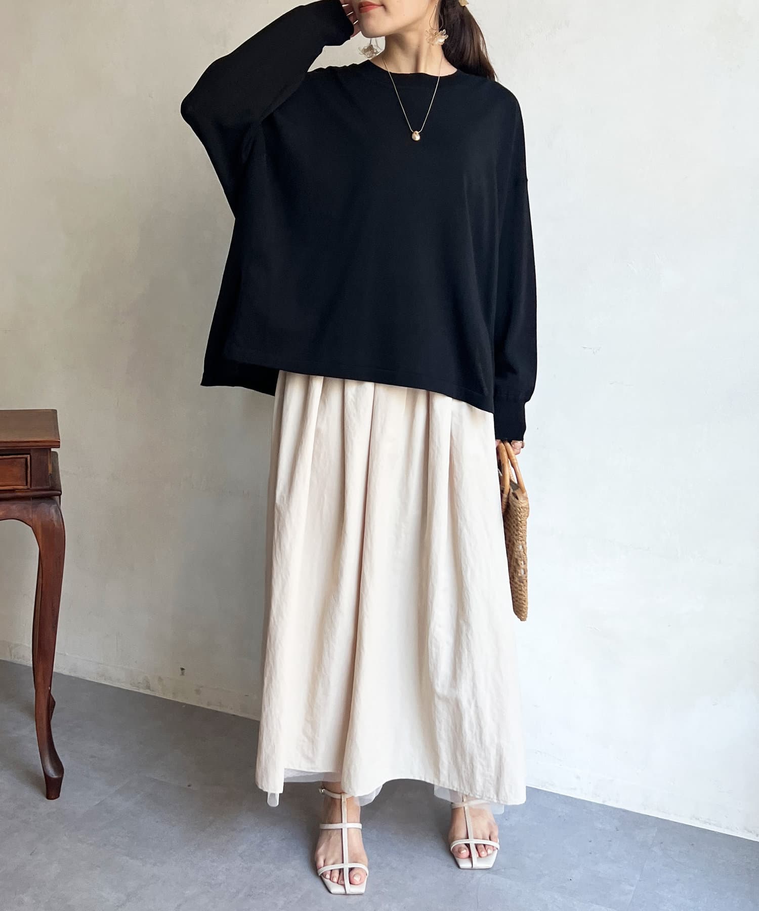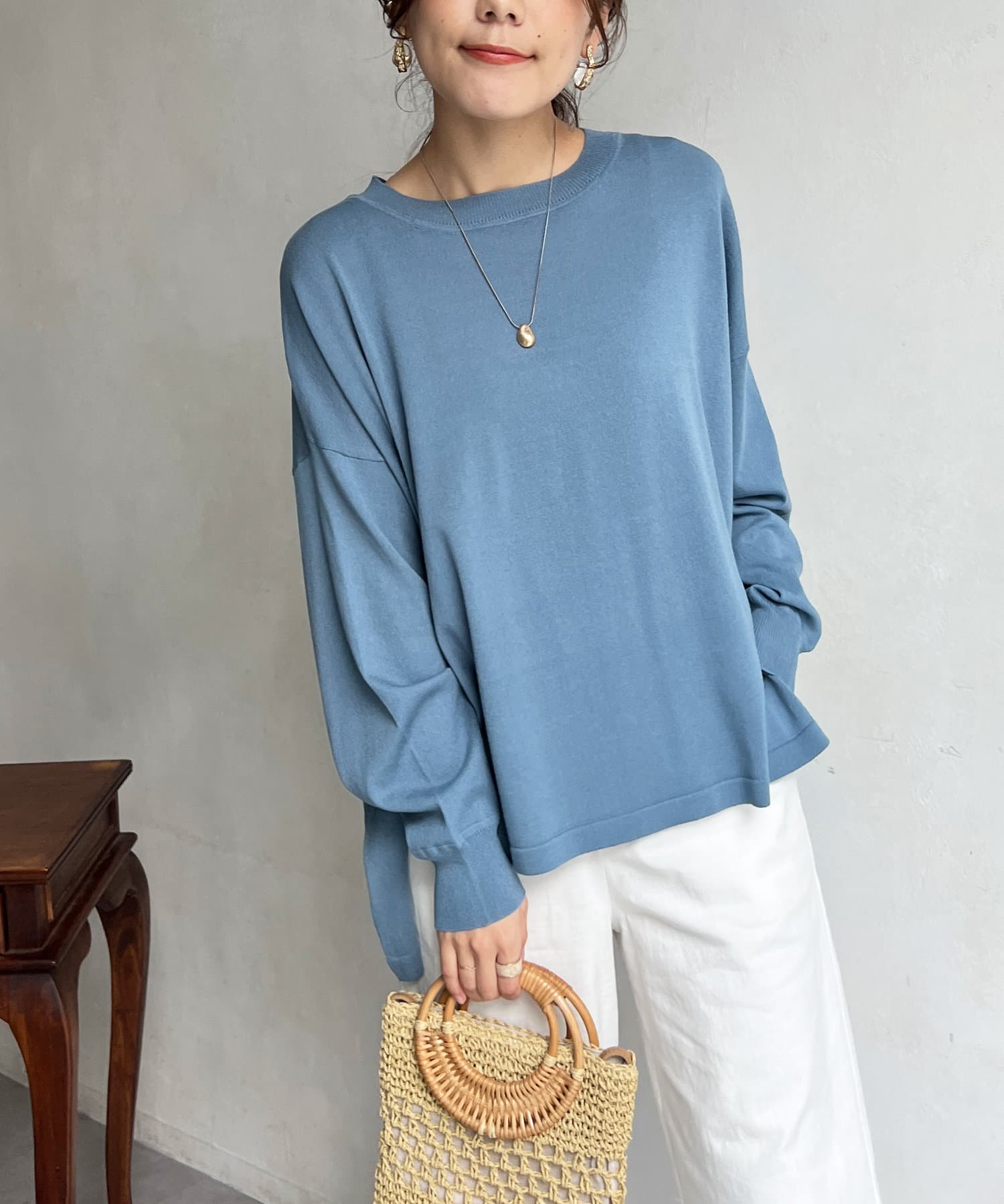 ゆるっとしたドルマンニットは身体のラインを拾わず、締め付けもないのでストレスフリーで着用していただけます。
