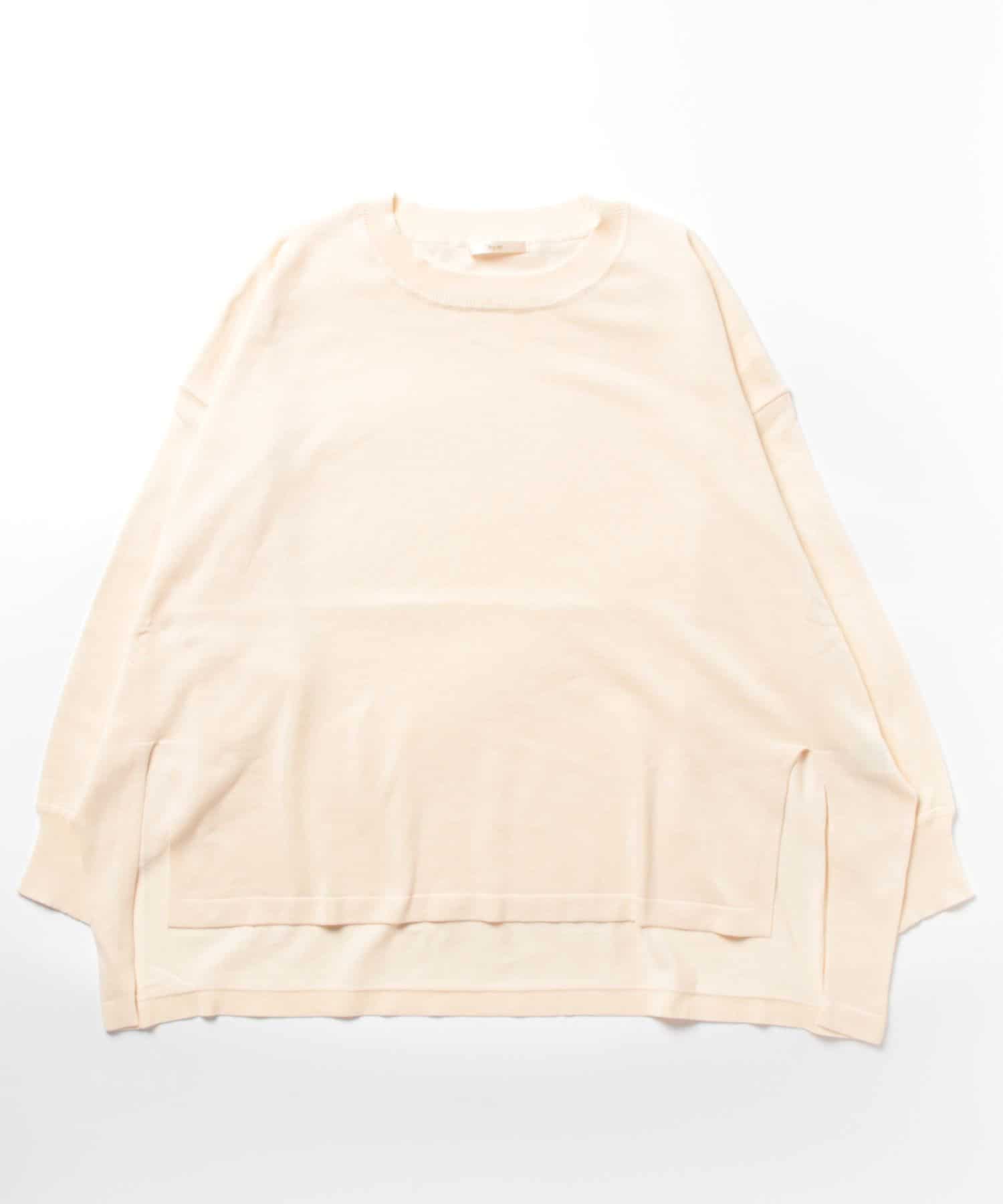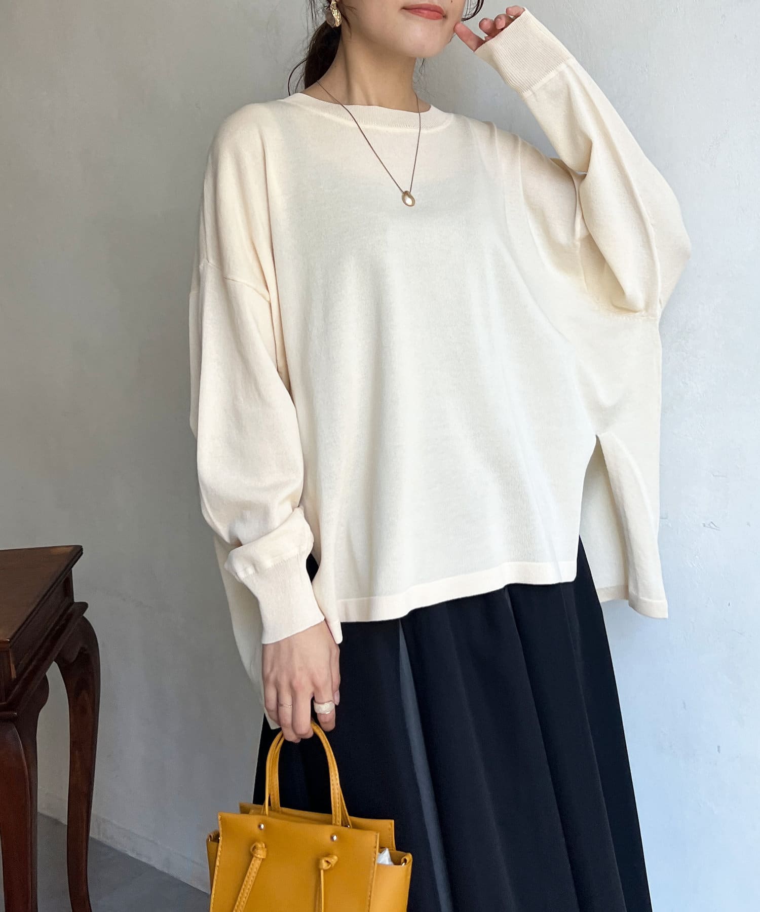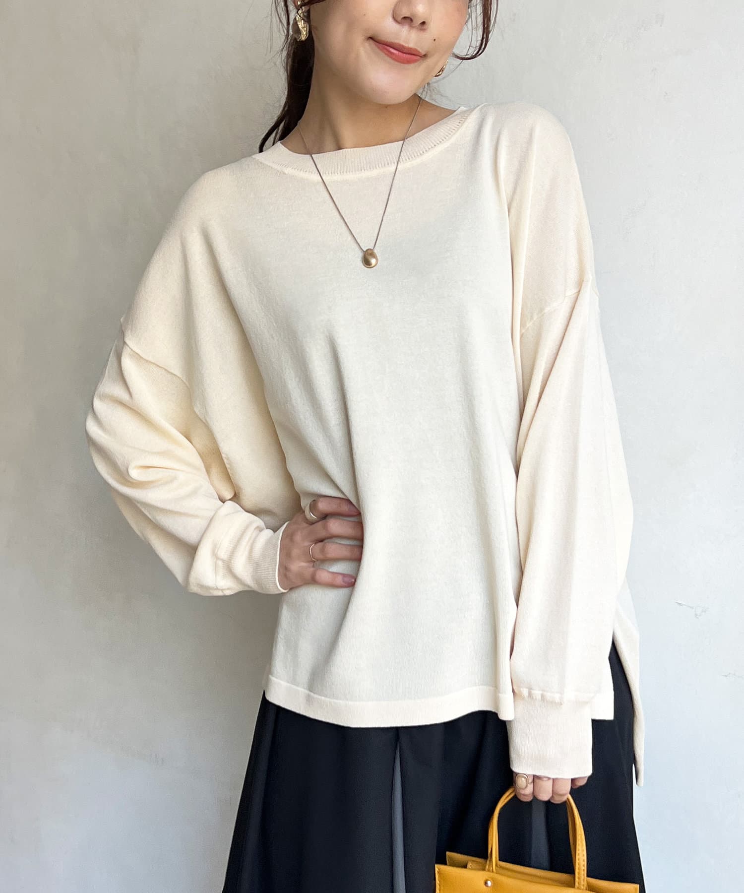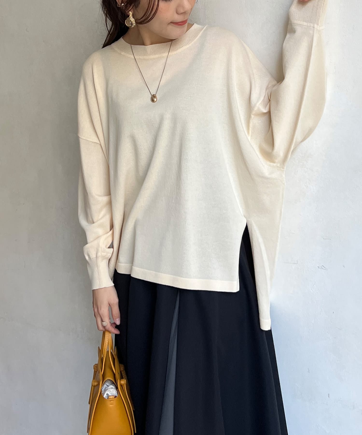 ゆとりのあるビッグサイズとサイドのスリットが特徴的なドルマンニット。