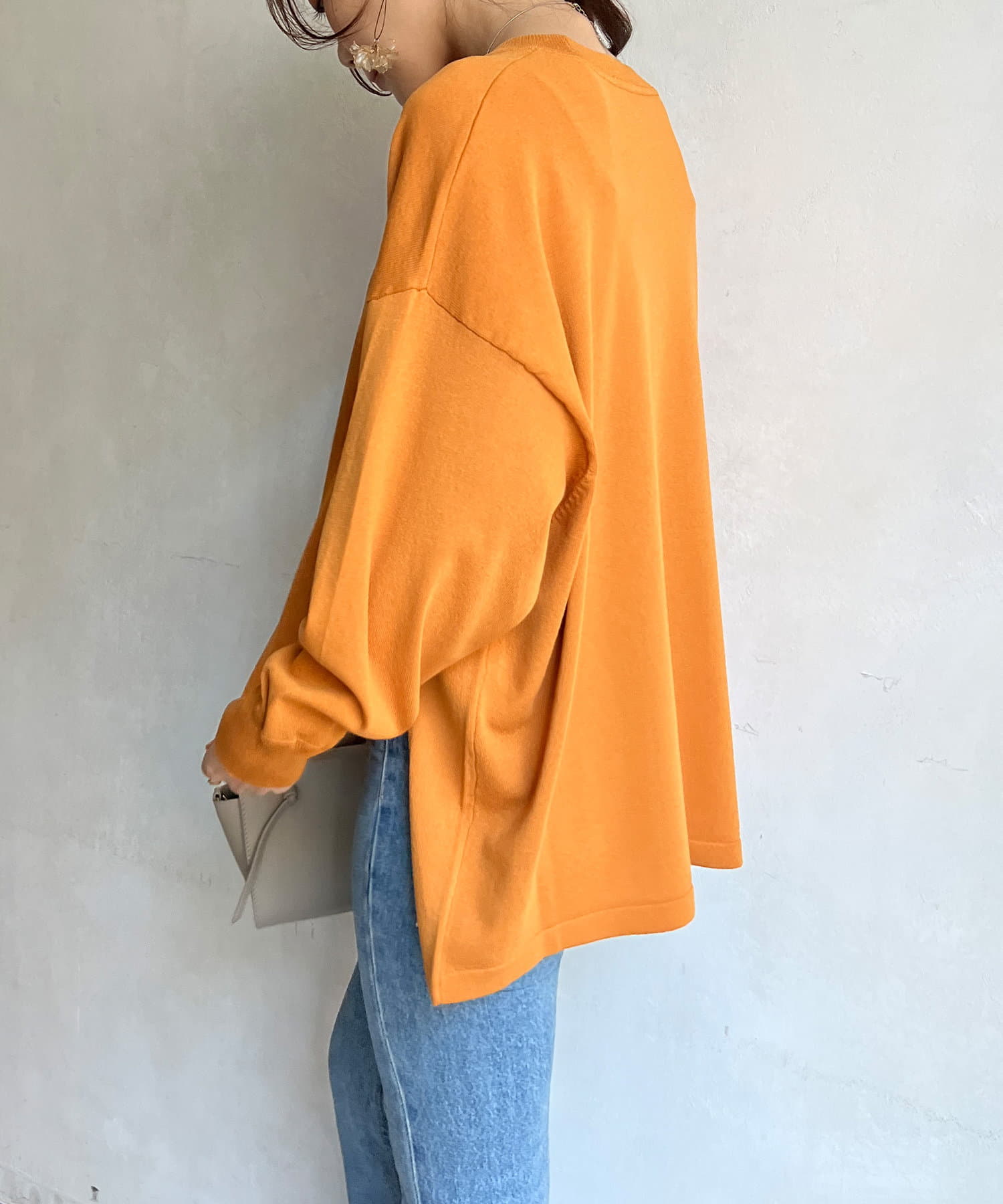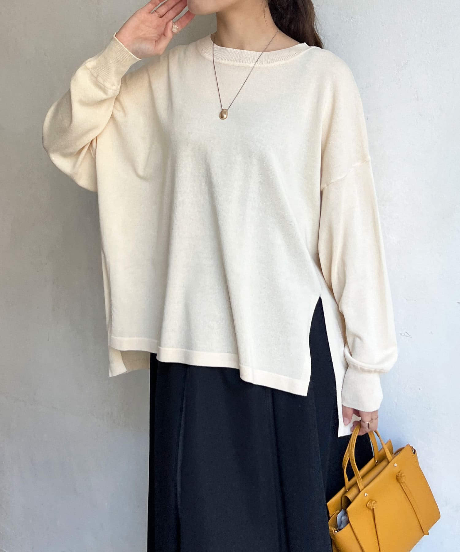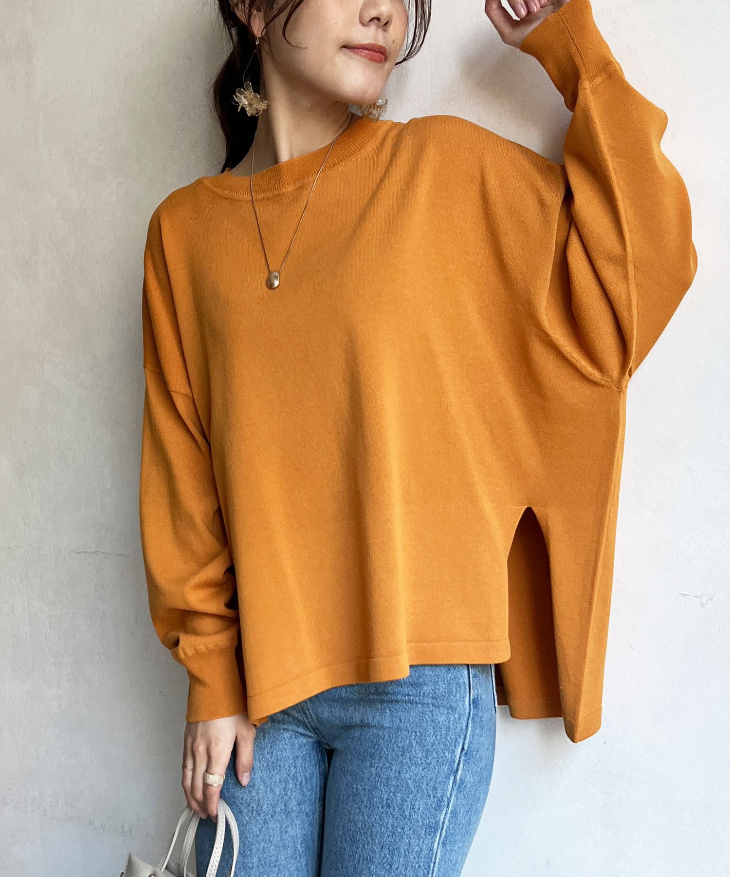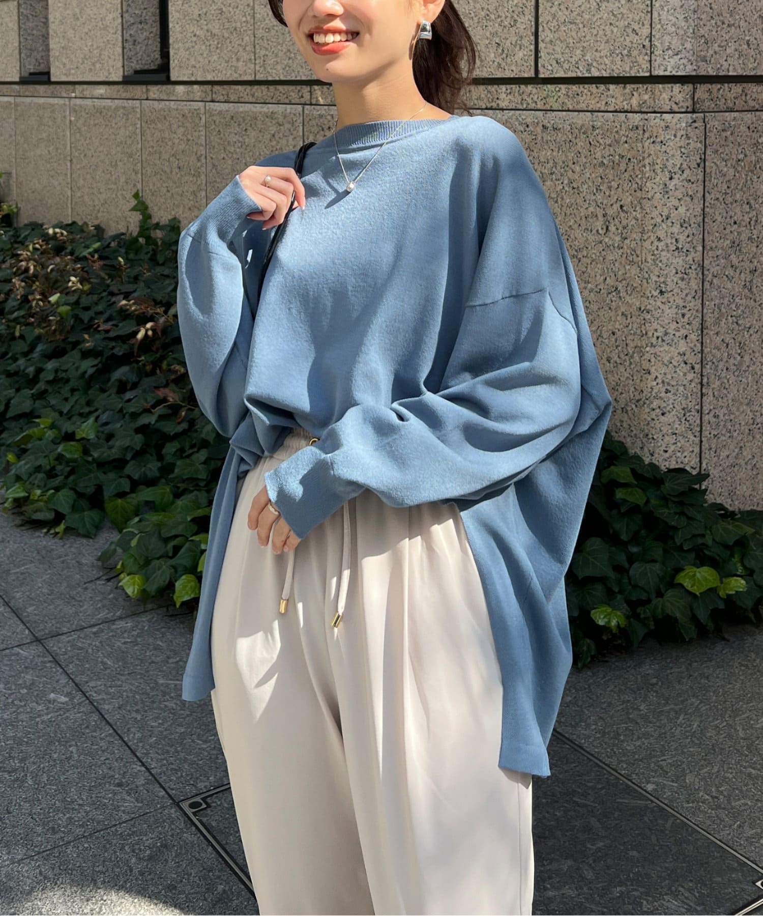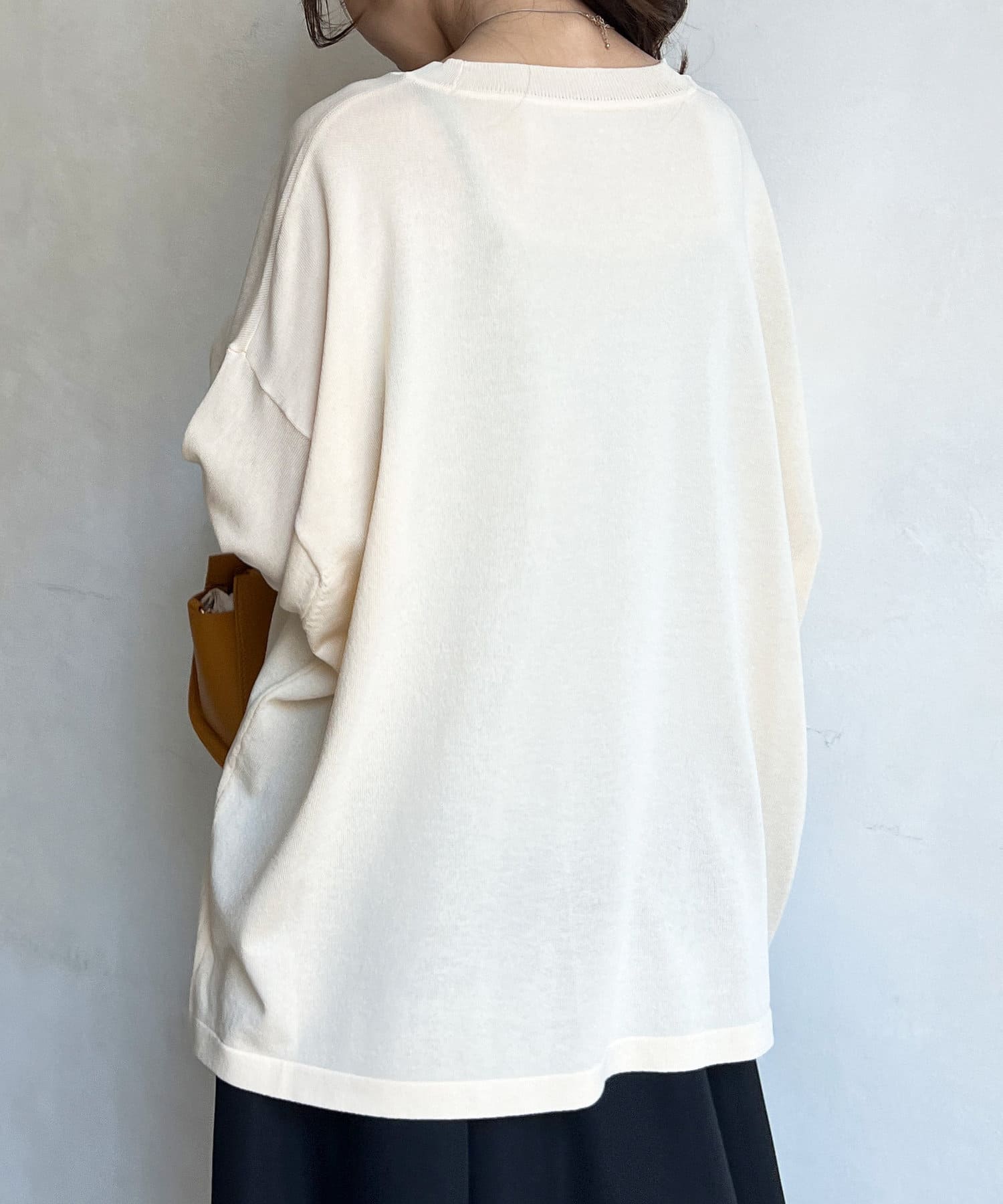 ゆとりのあるビッグサイズとサイドのスリットが特徴的なドルマンニット。