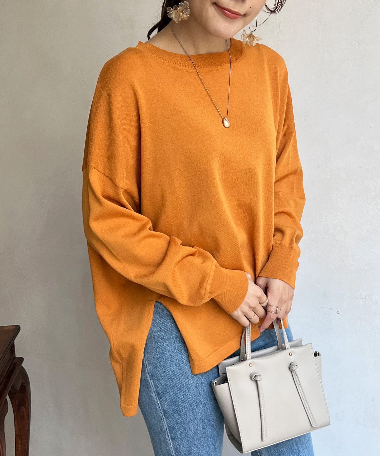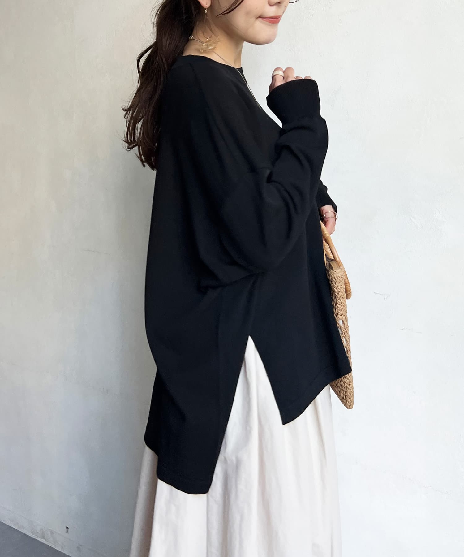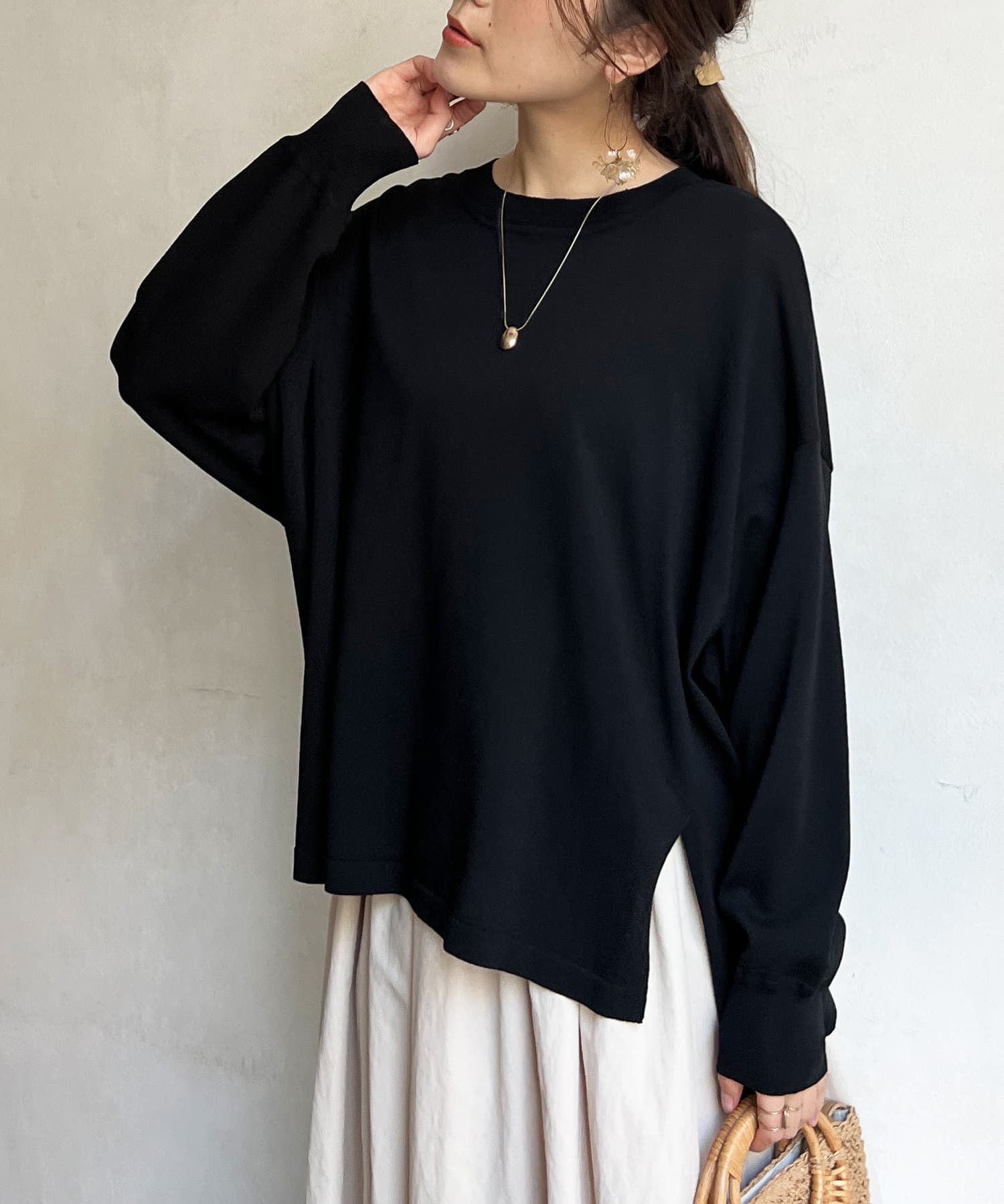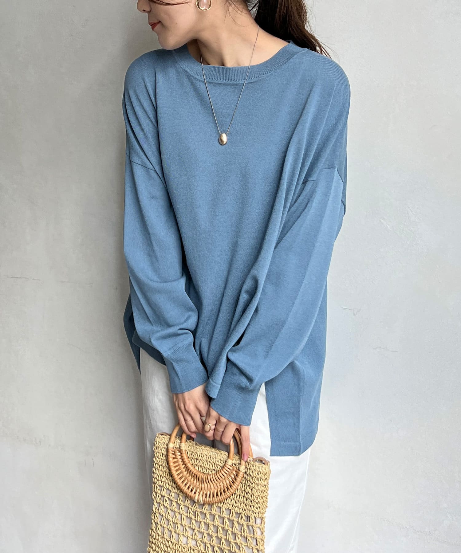 ゆとりのあるビッグサイズとサイドのスリットが特徴的なドルマンニット。