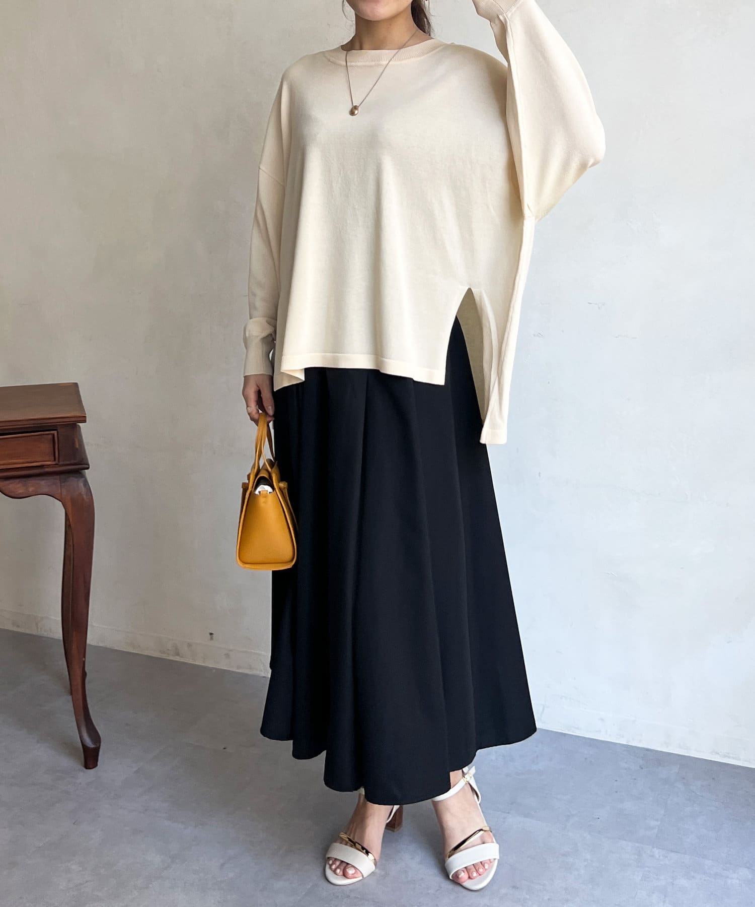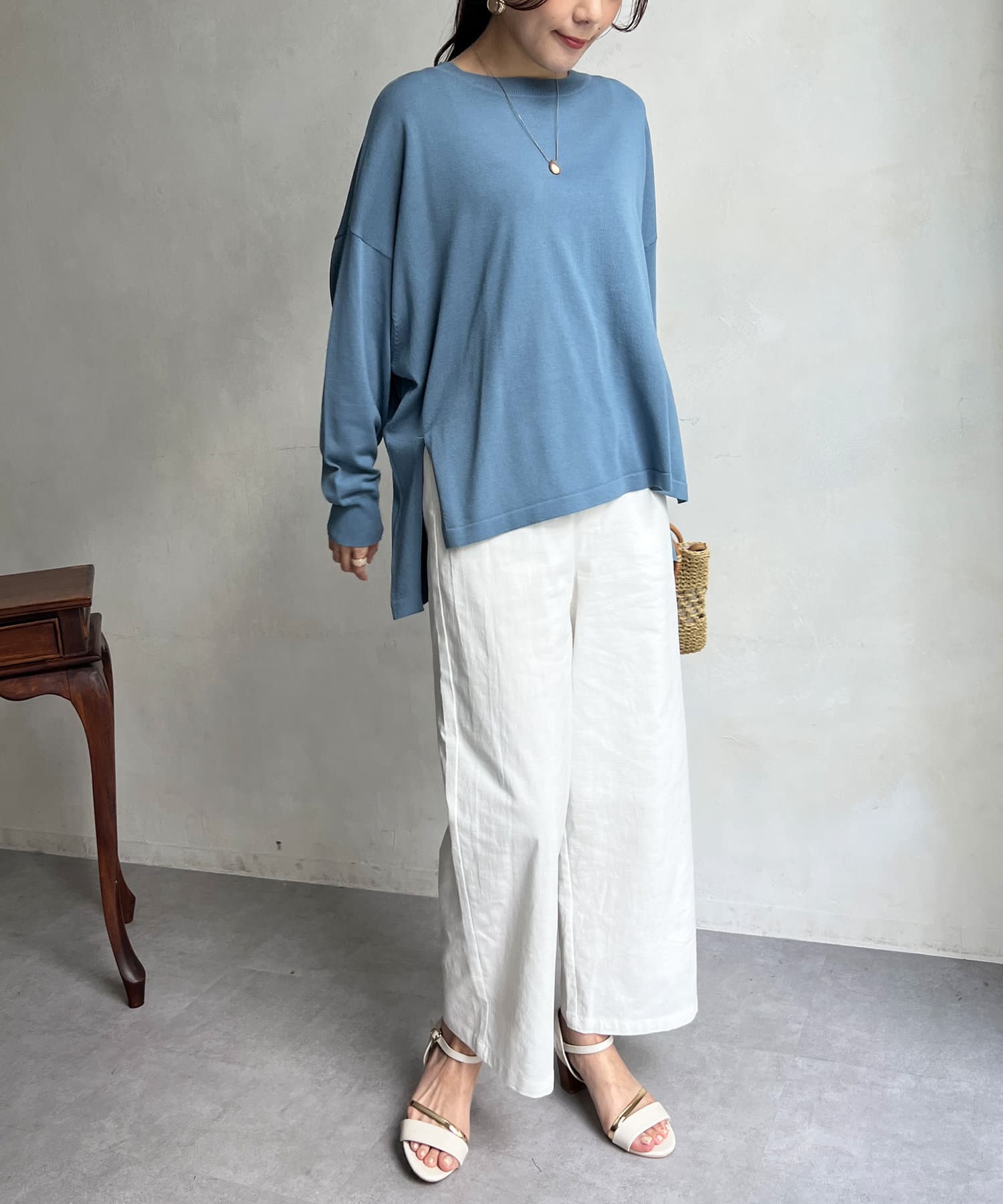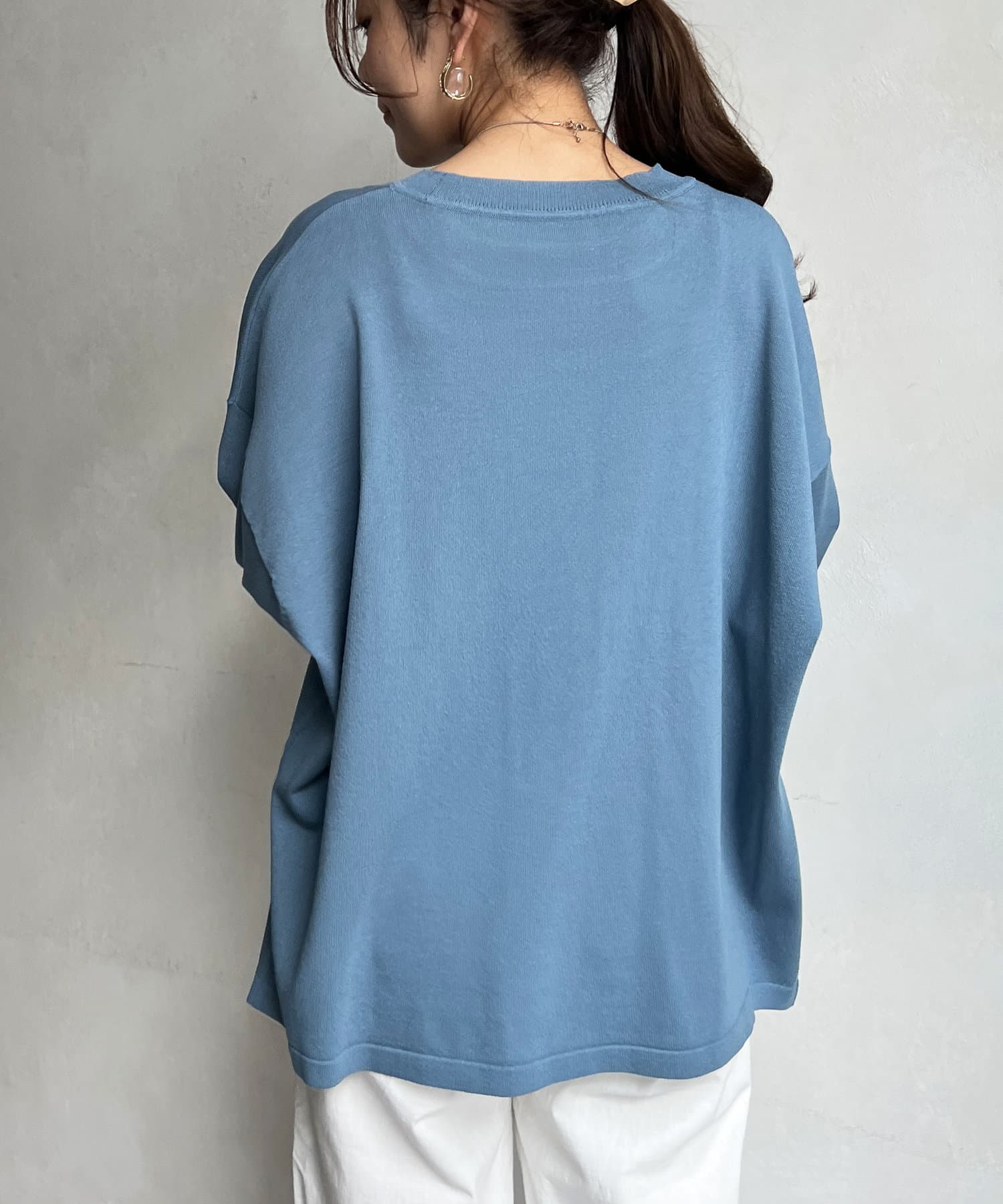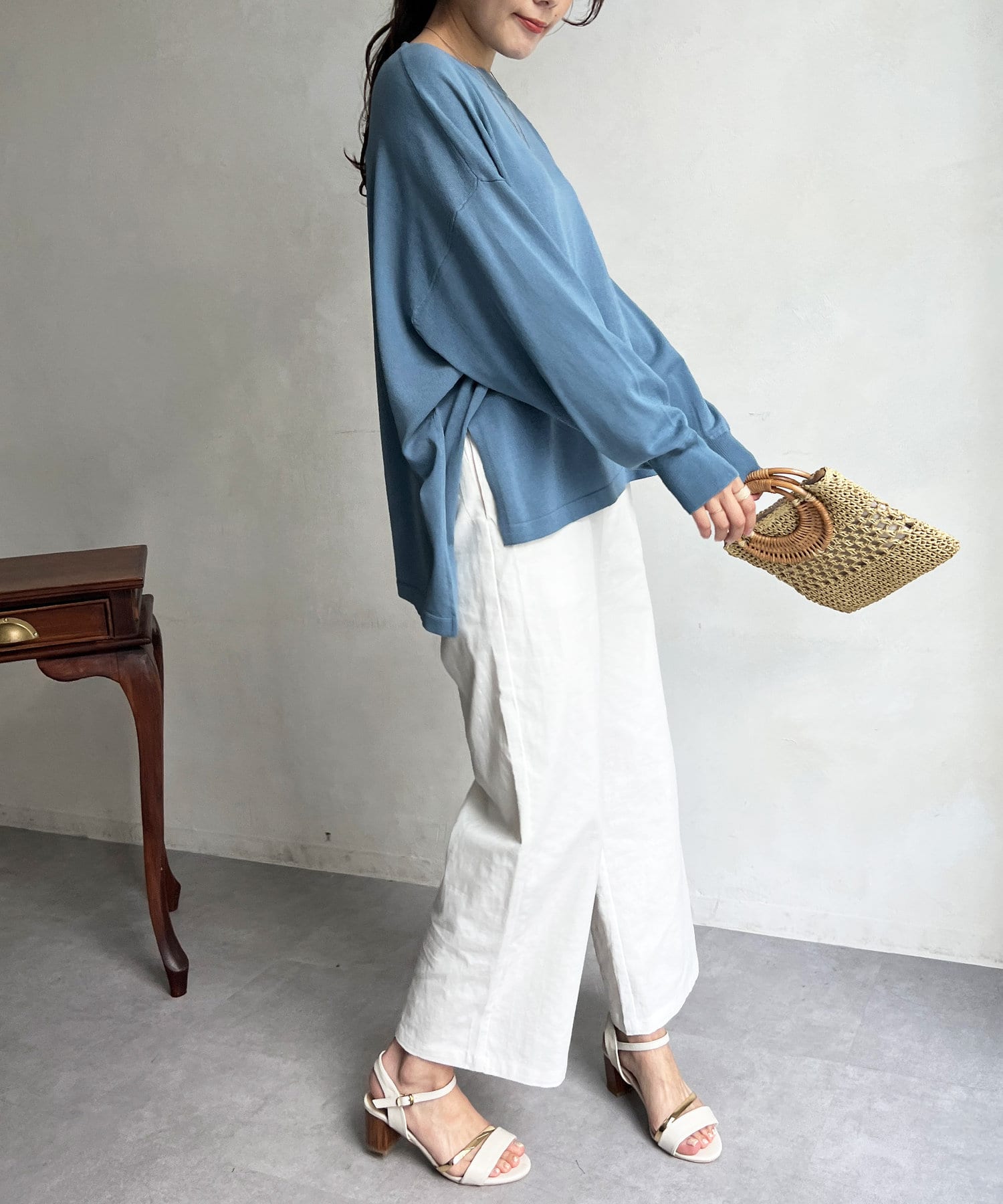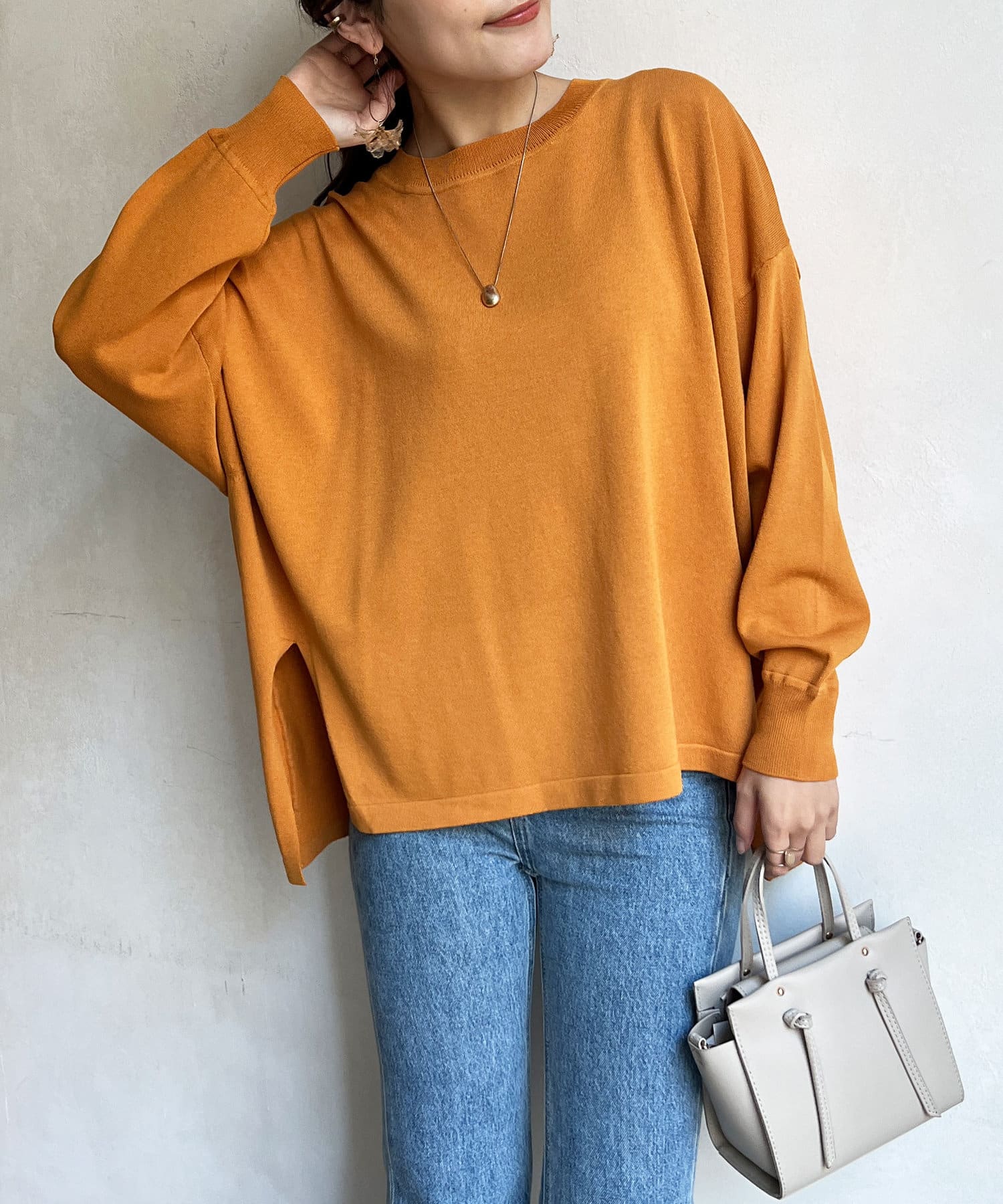 ゆとりのあるビッグサイズとサイドのスリットが特徴的なドルマンニット。