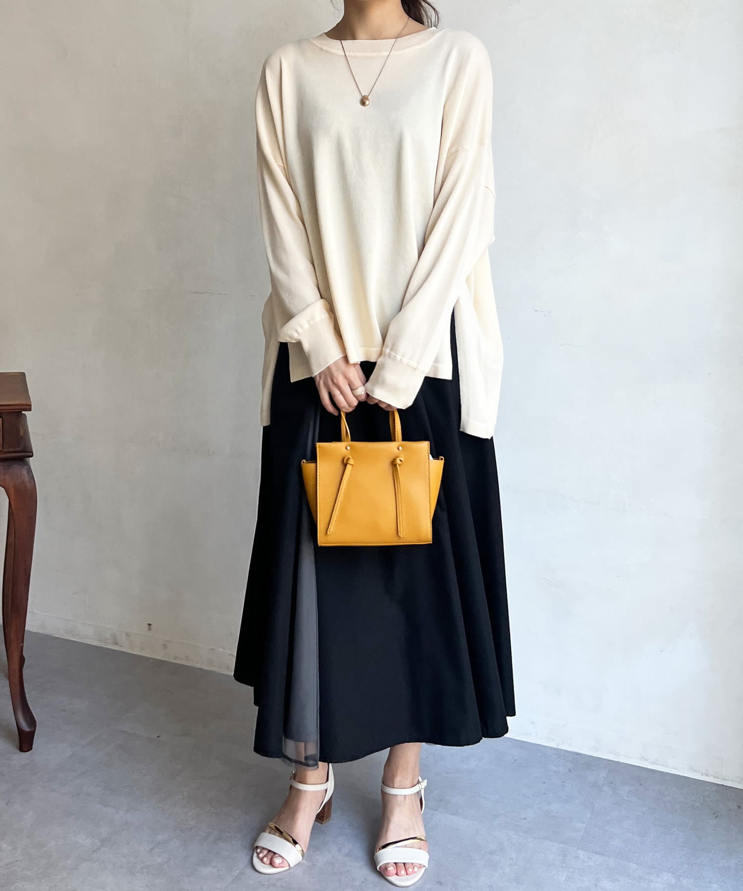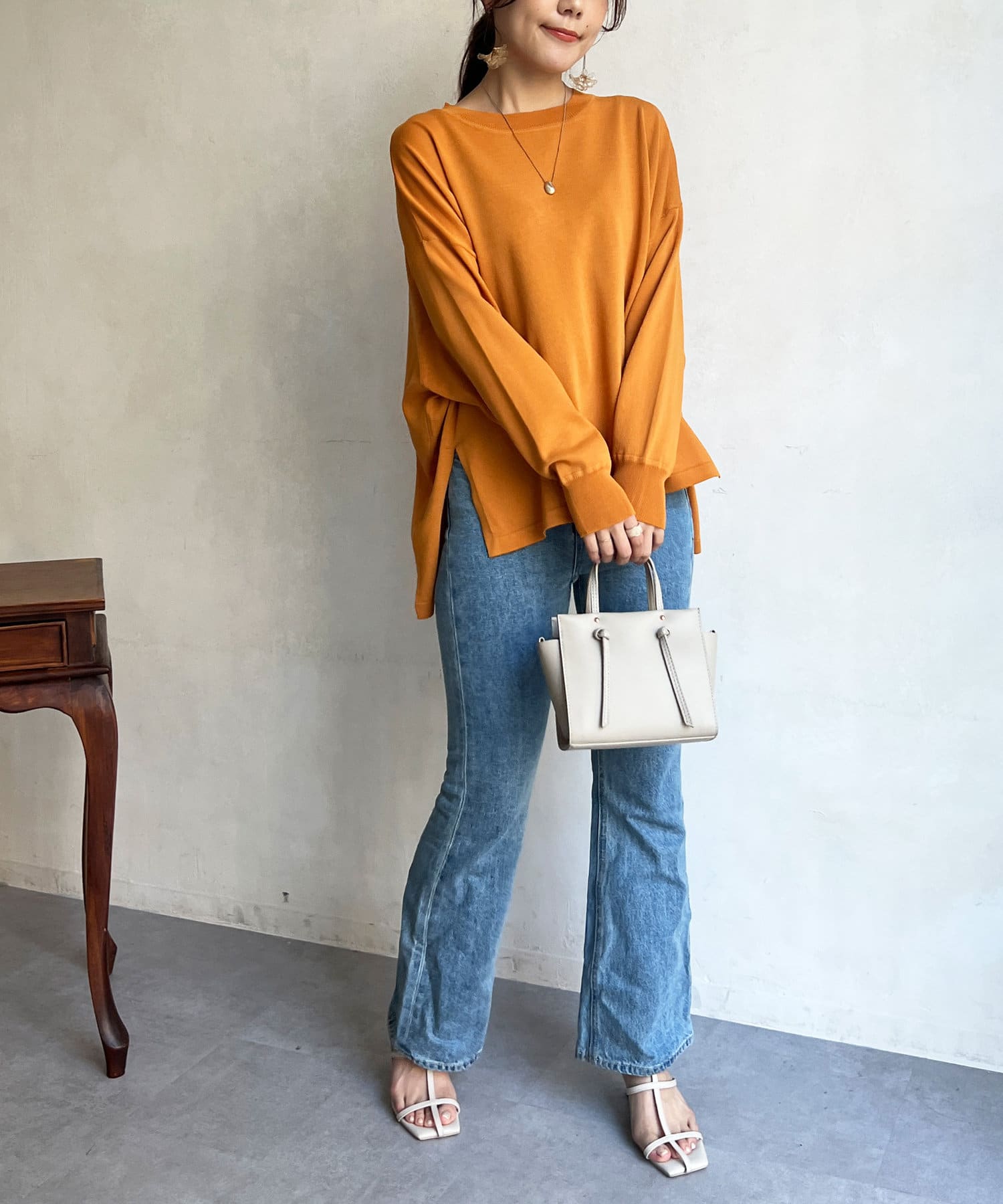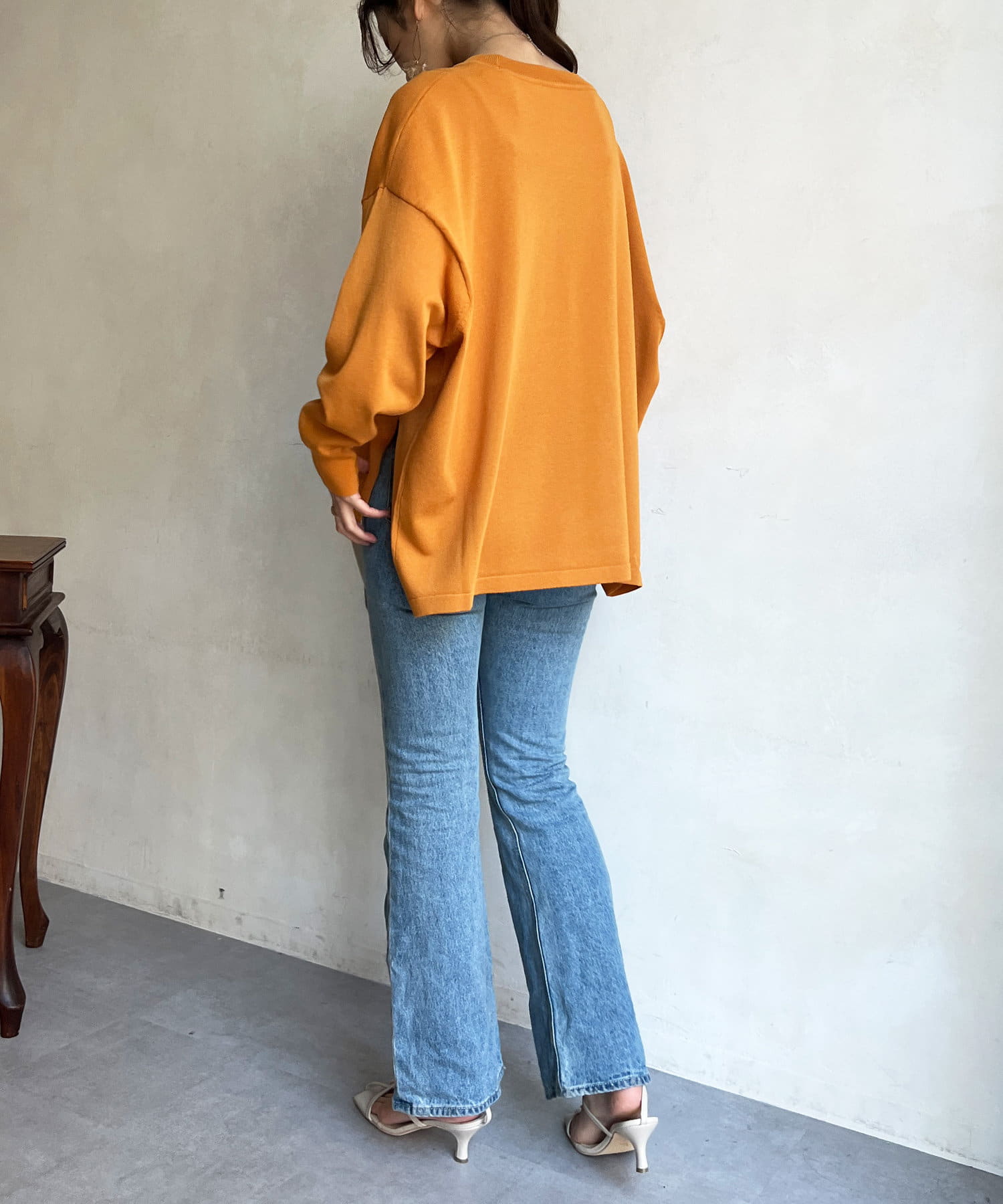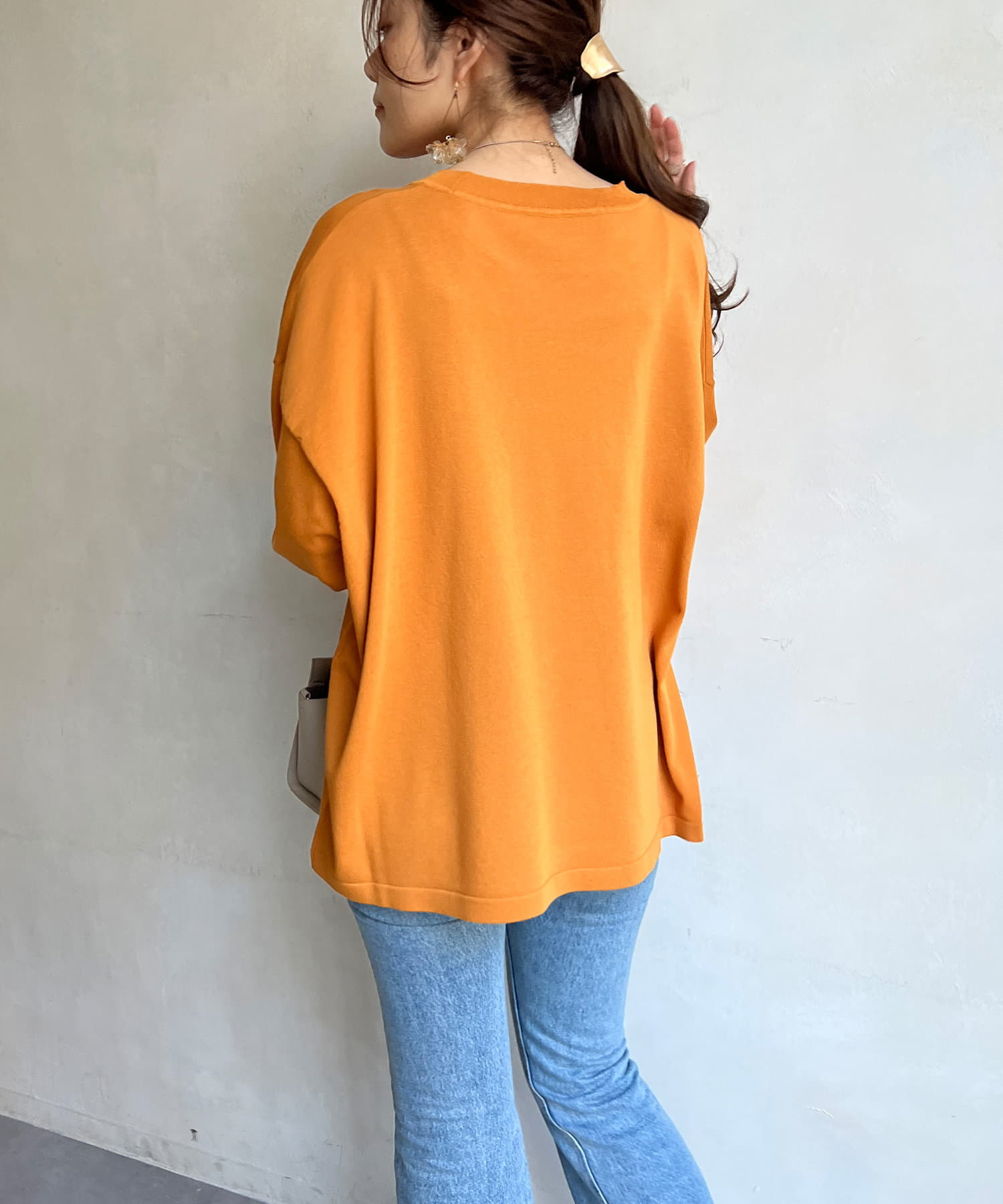 ゆとりのあるビッグサイズとサイドのスリットが特徴的なドルマンニット。