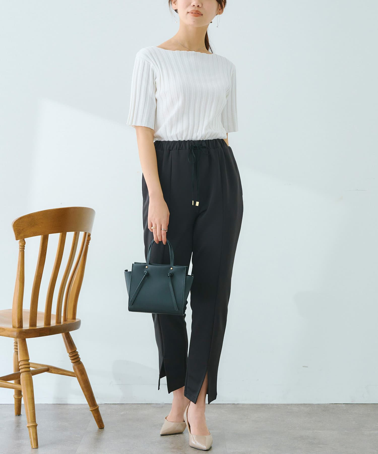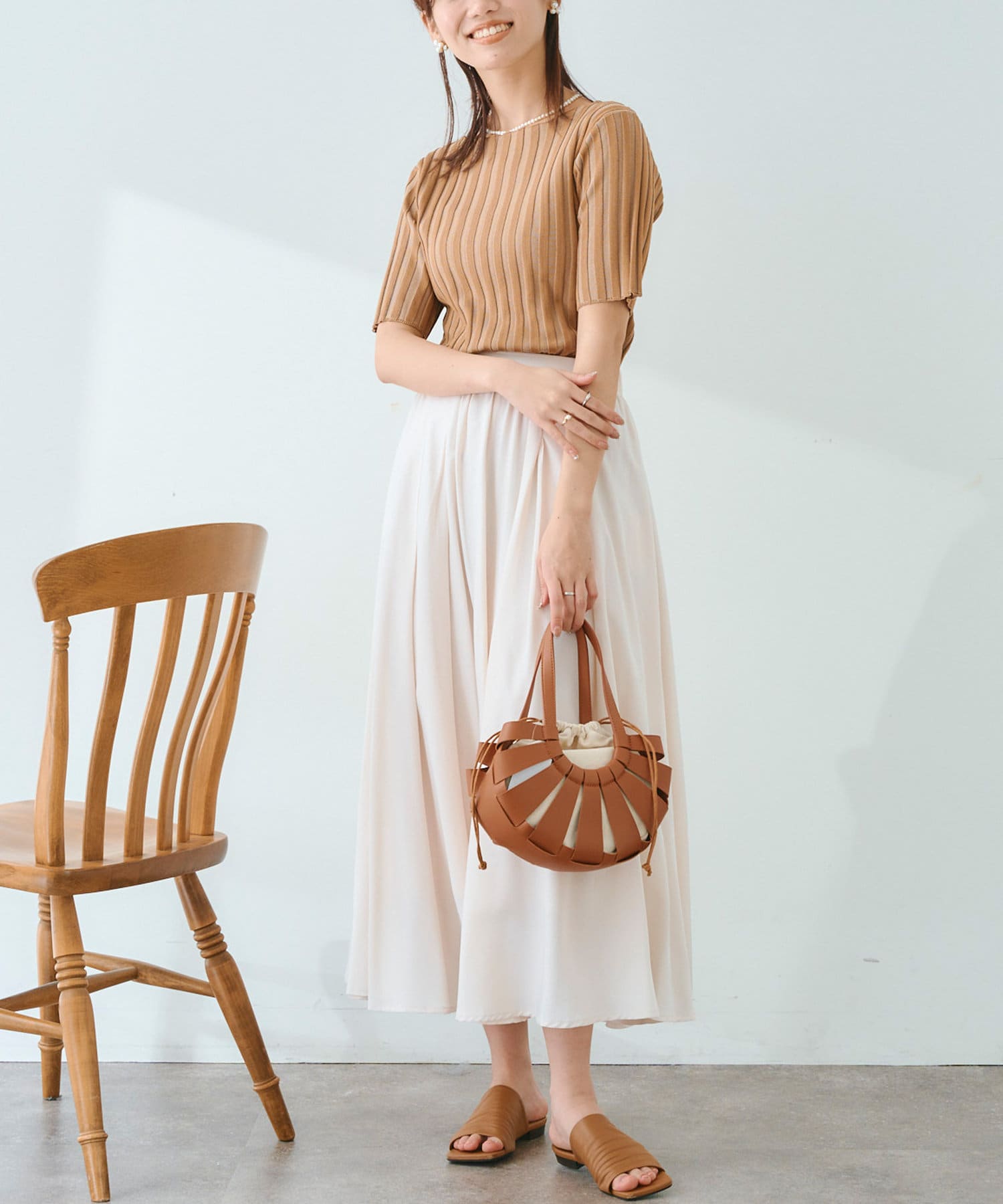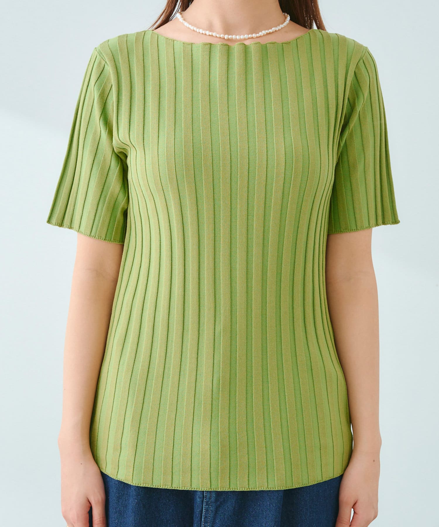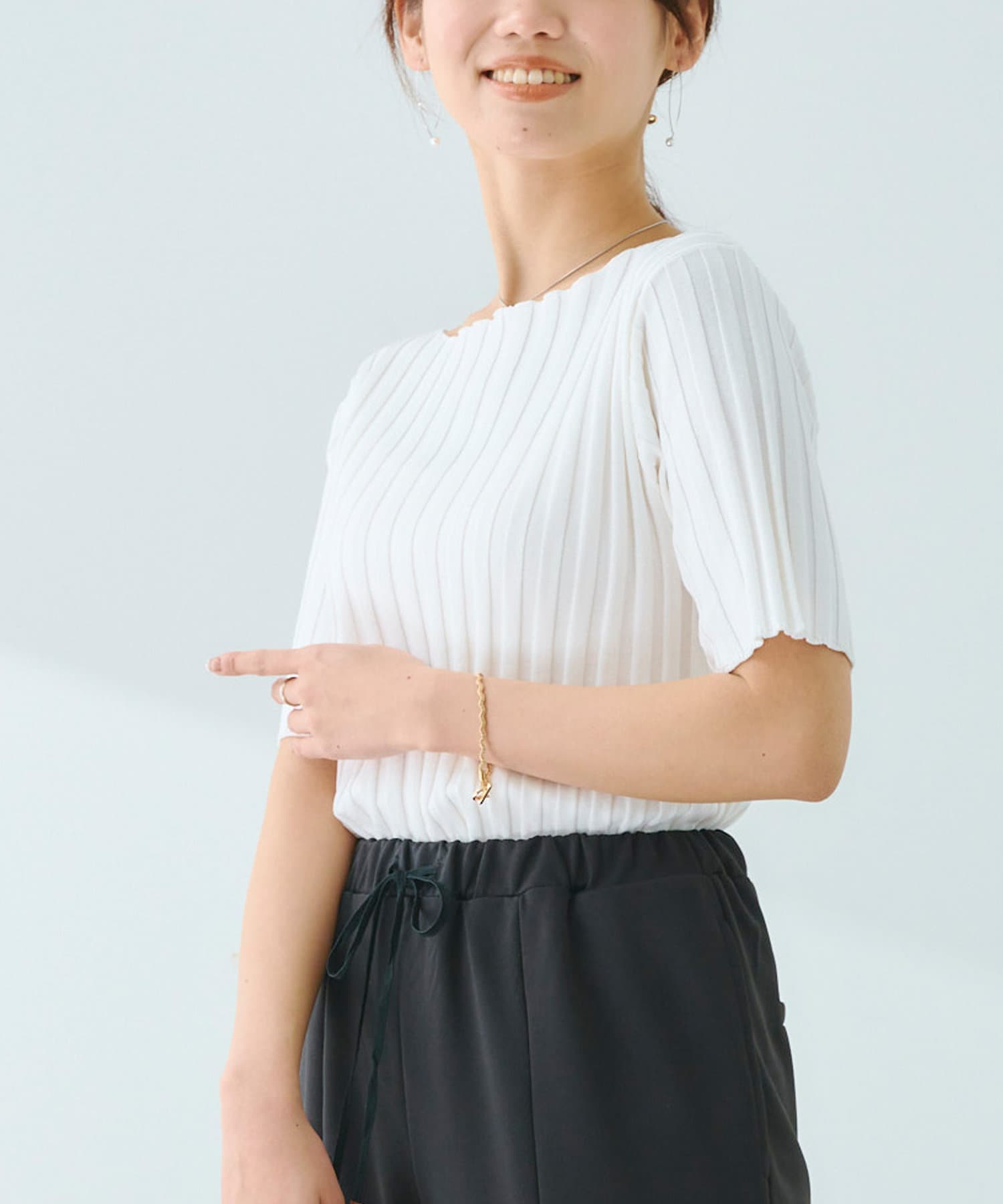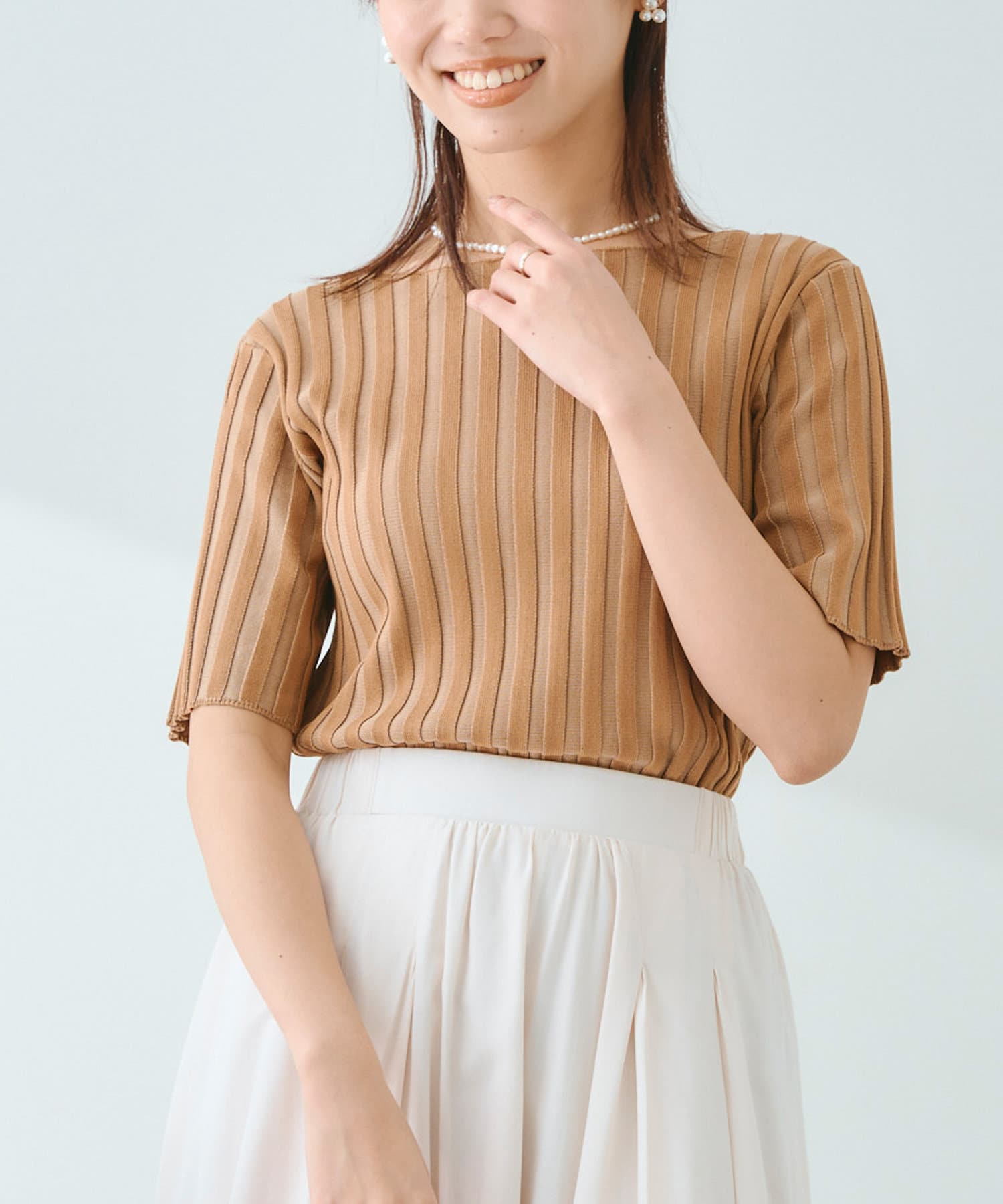程よいフィット感が女性らしさをプラスしてくれる半袖リブニット