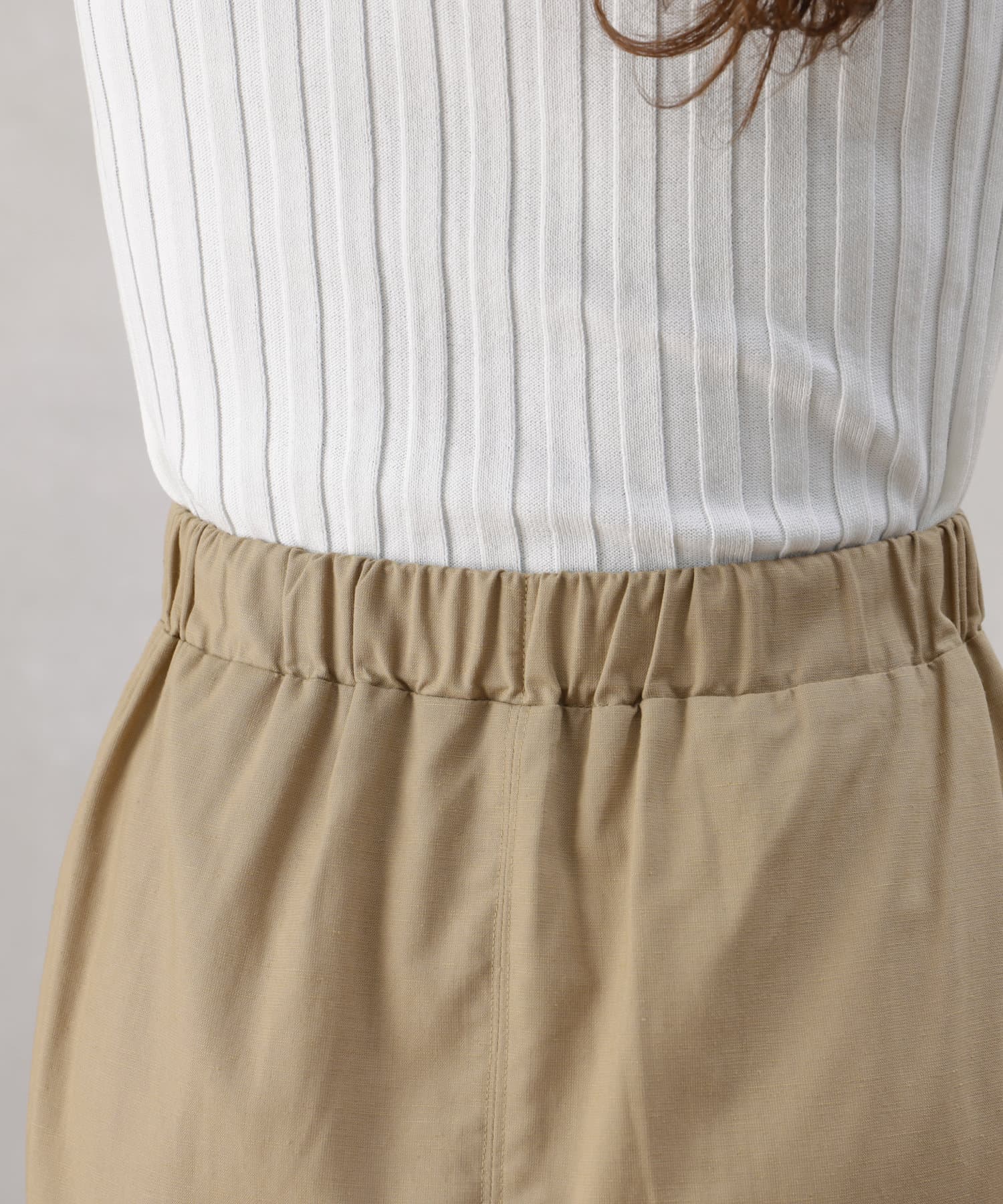ウエストの後ろ部分はゴム仕様に。窮屈すぎず、ストレスフリーで履いていただけます。