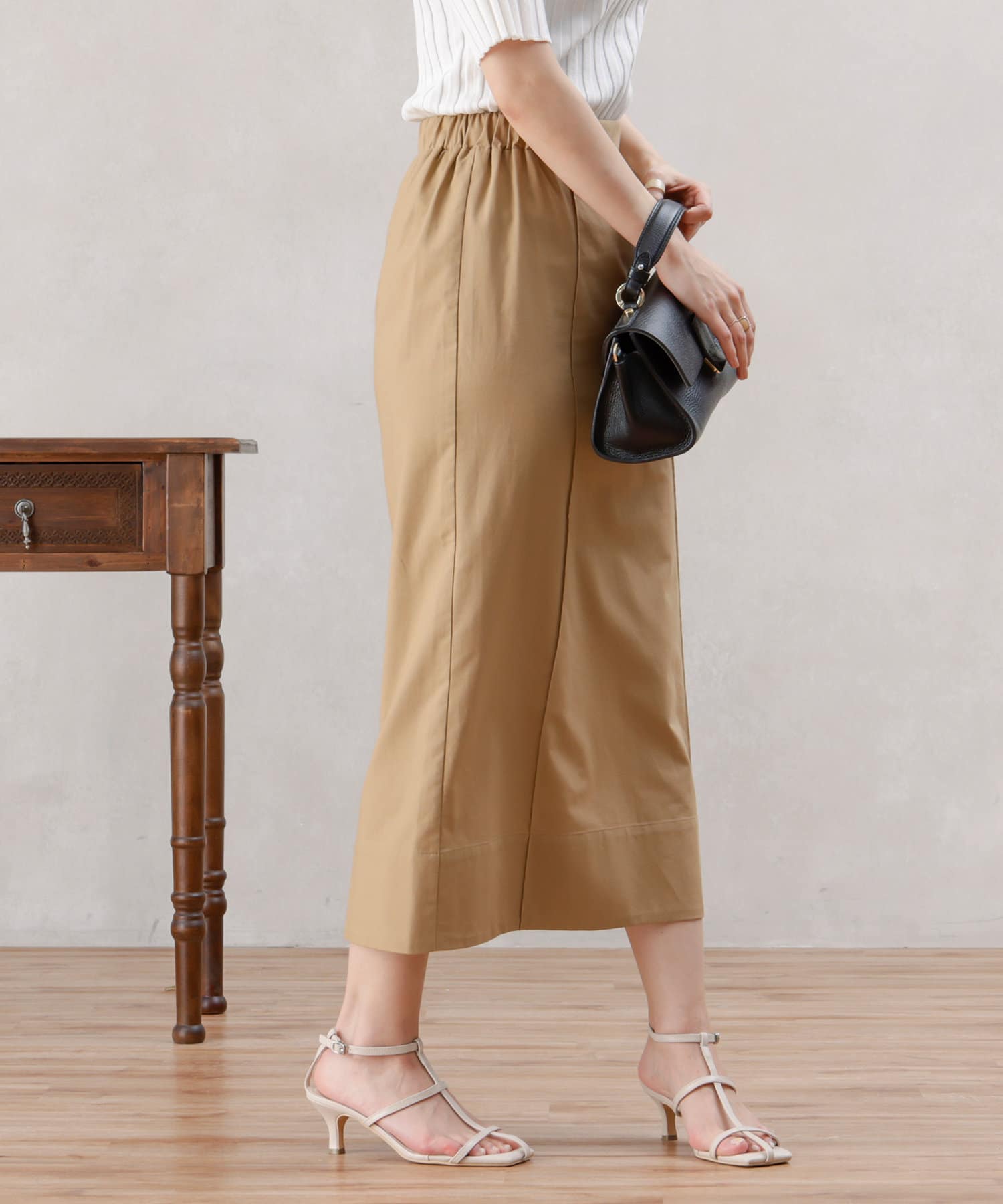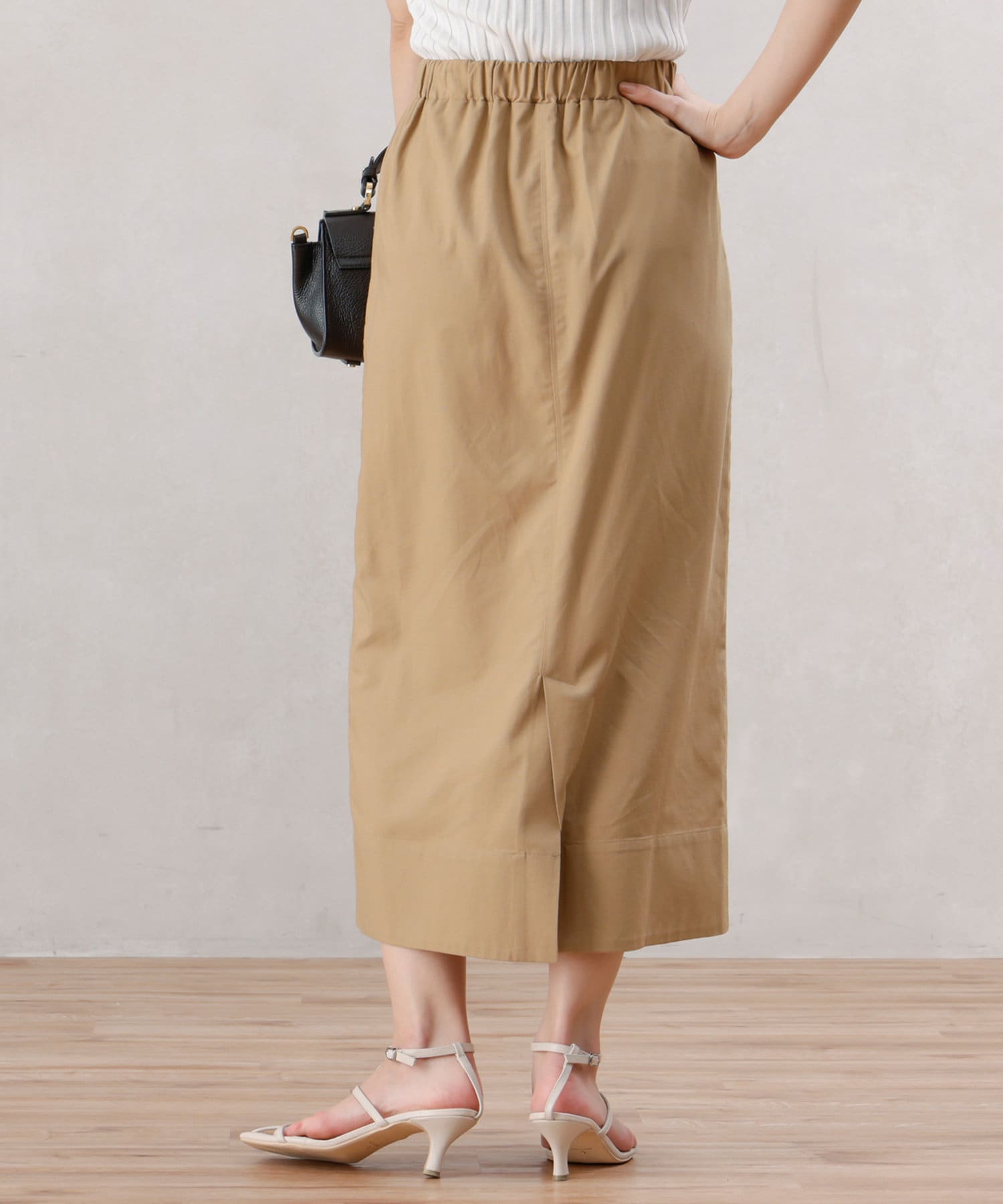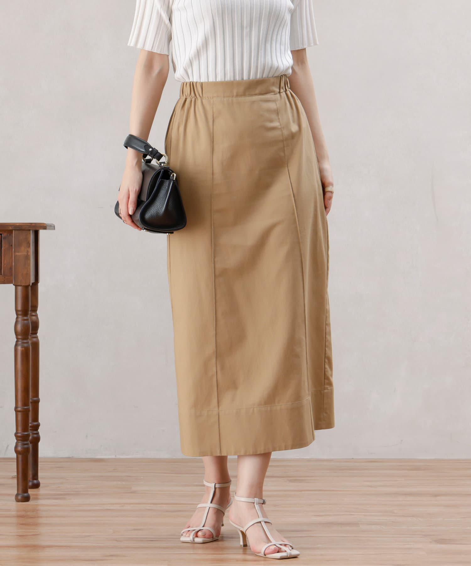 リネン混のナチュラルな生地を使用したタイトスカート。