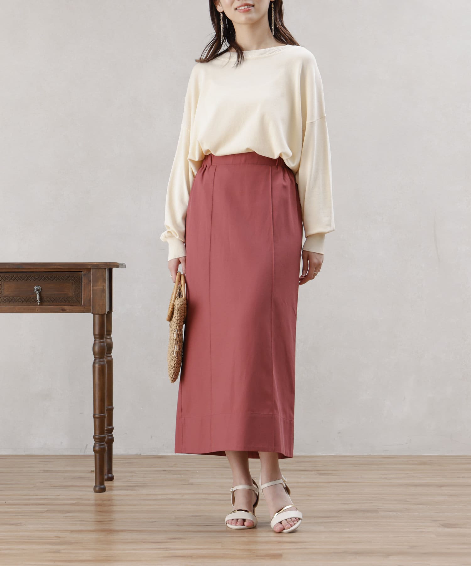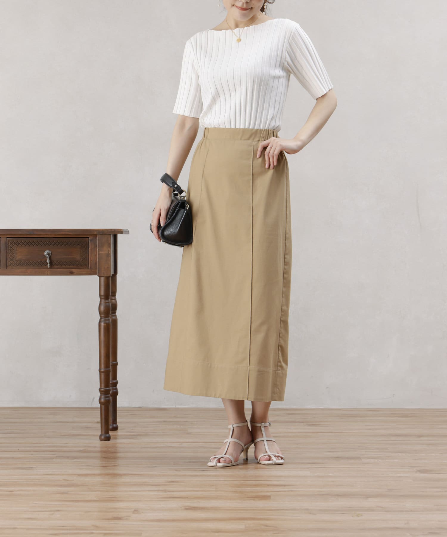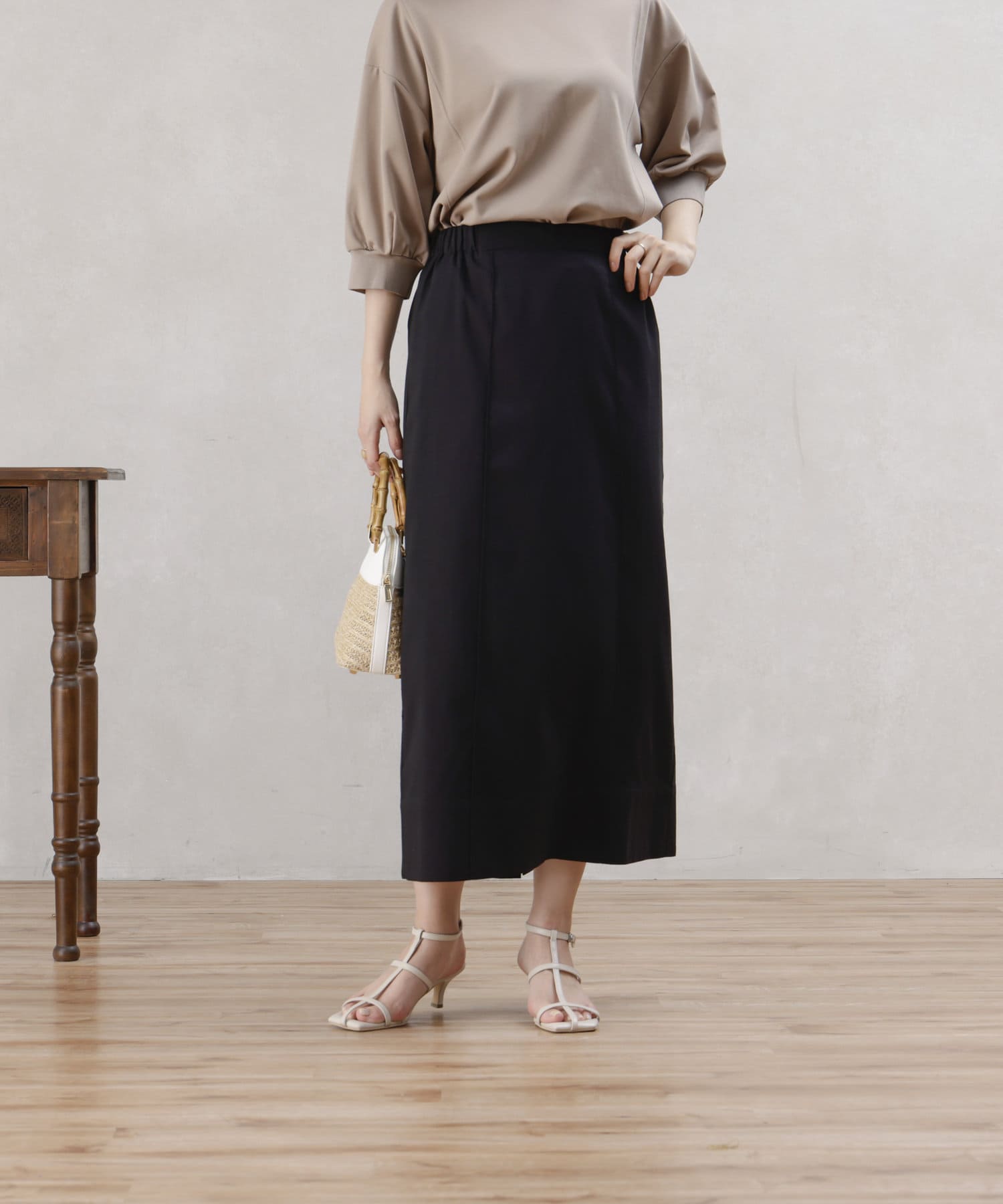リネン混のナチュラルな生地を使用したタイトスカート。