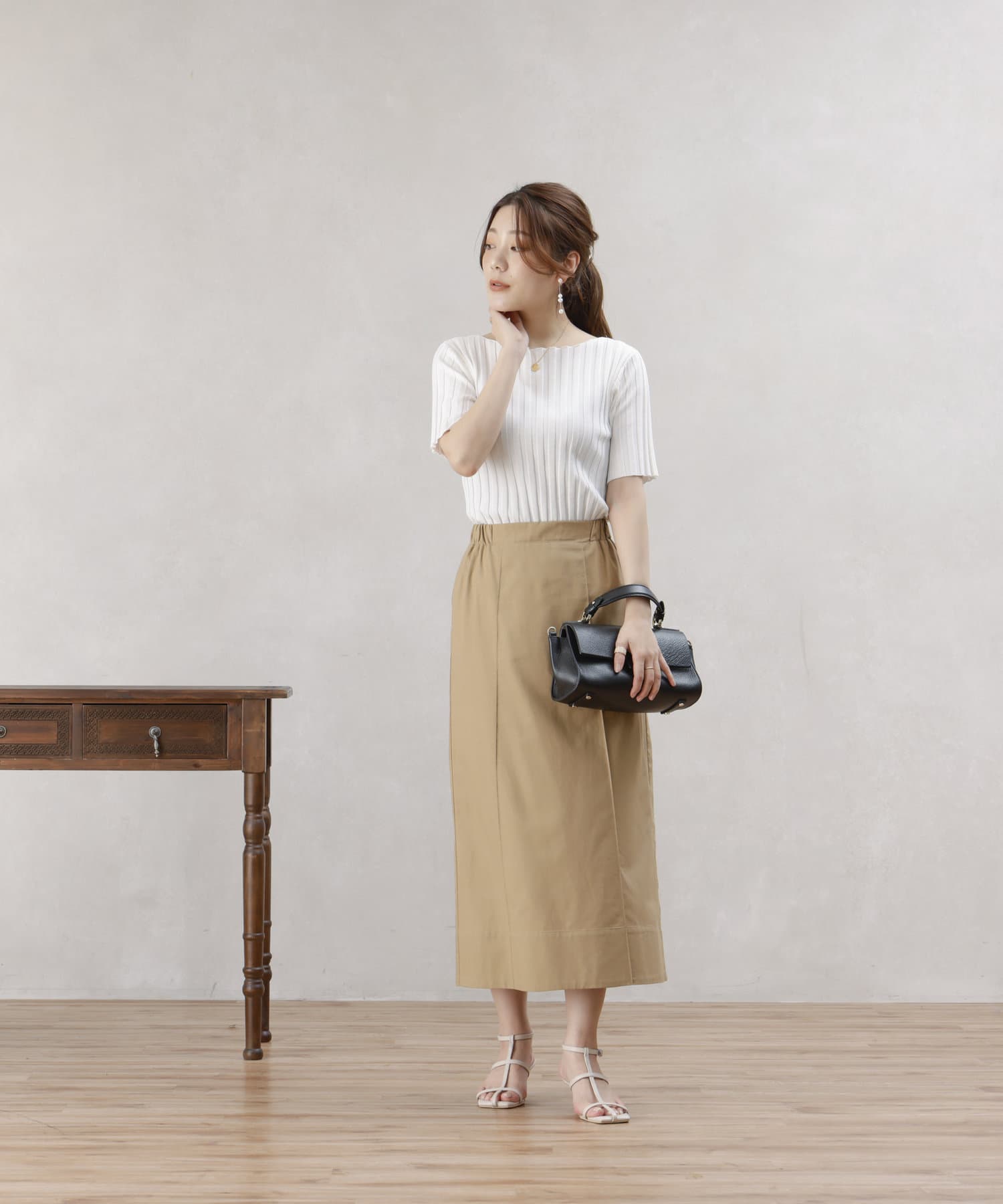 ブラウスできれいめに、Tシャツで大人カジュアルにも。様々なテイストで合わせていただけます。