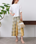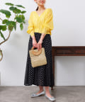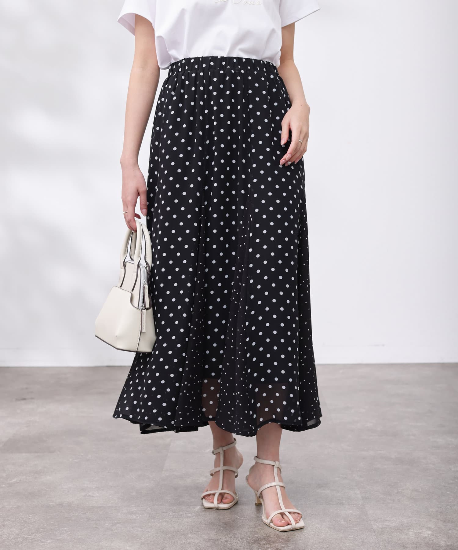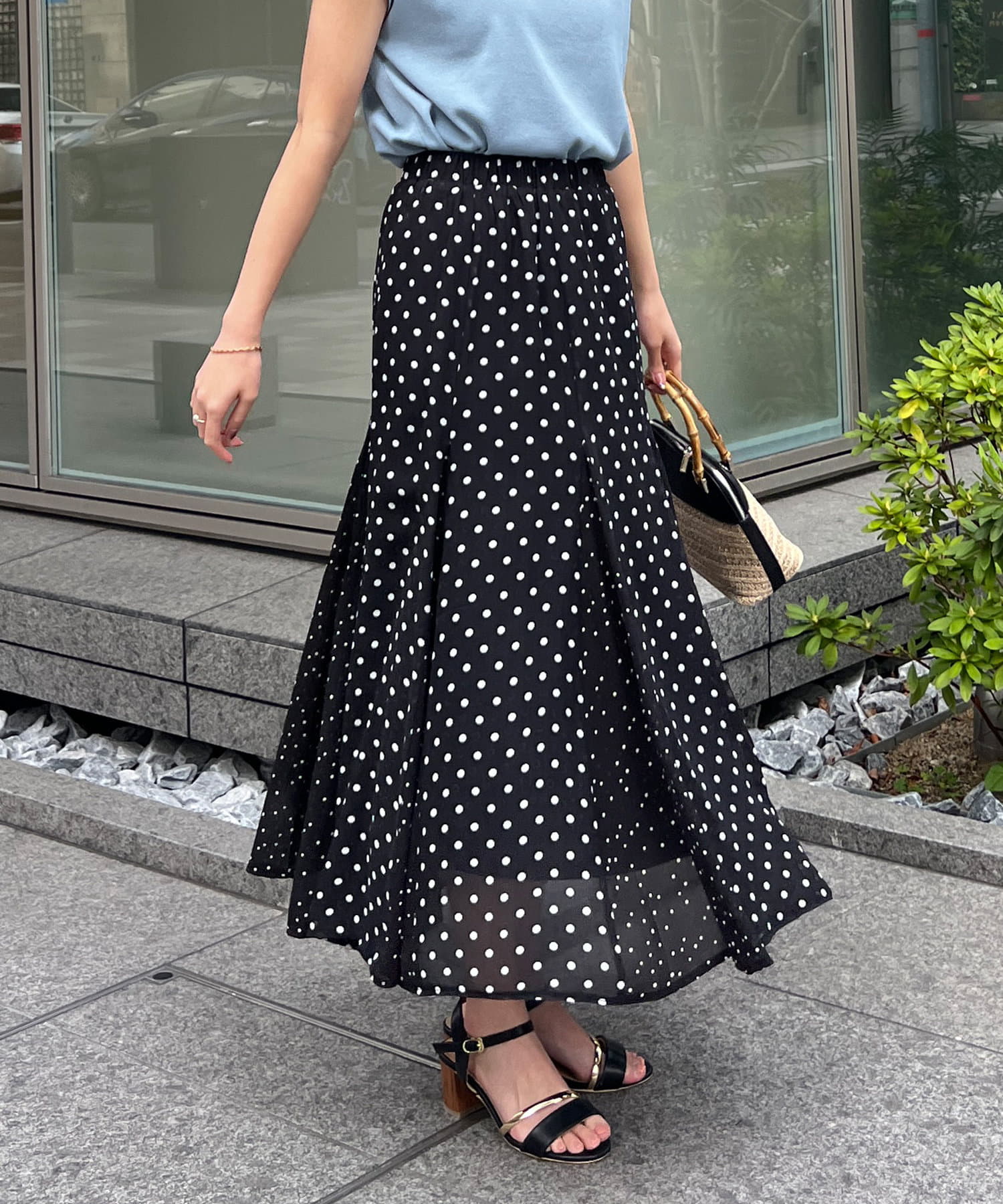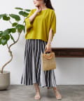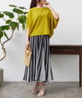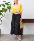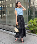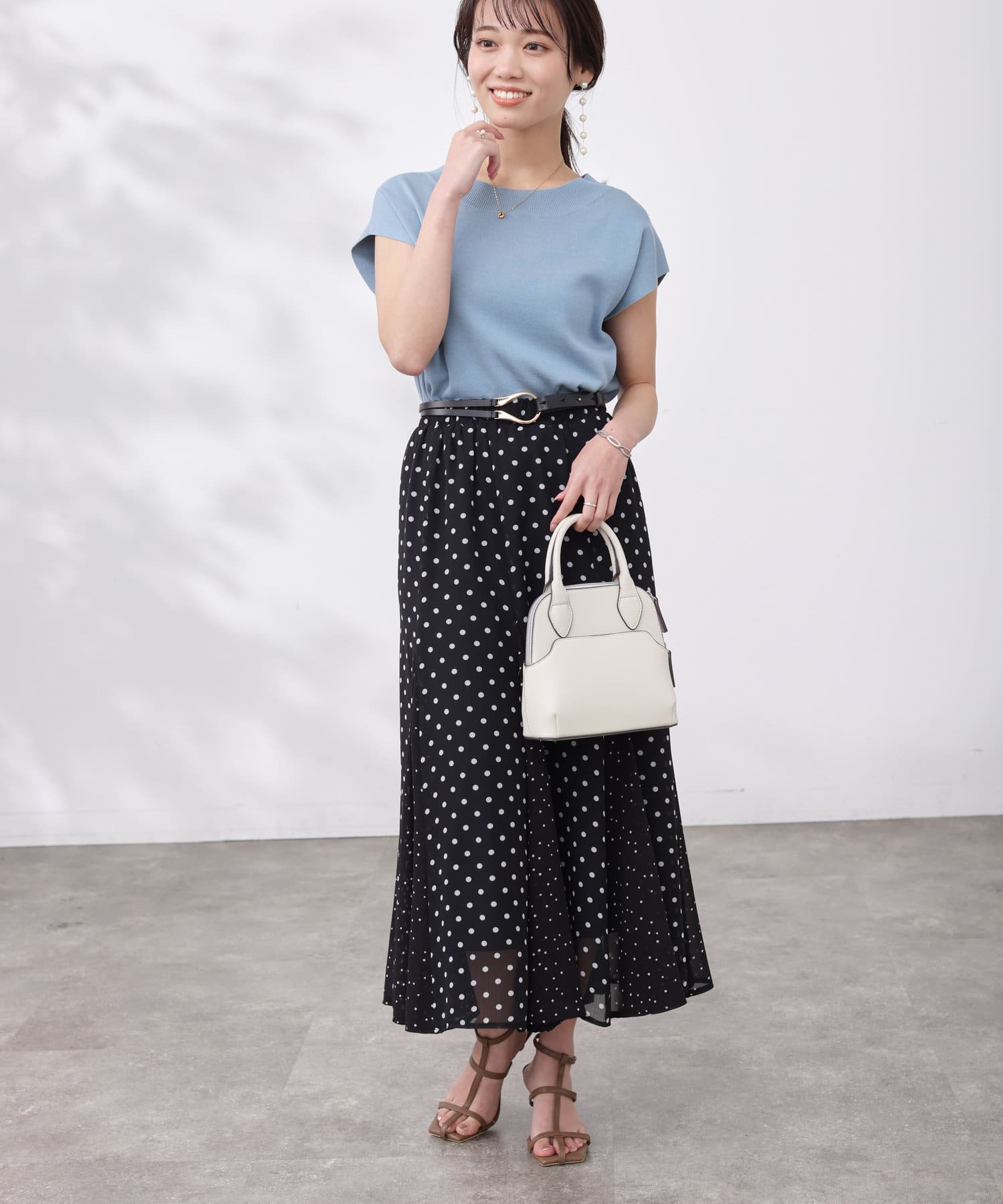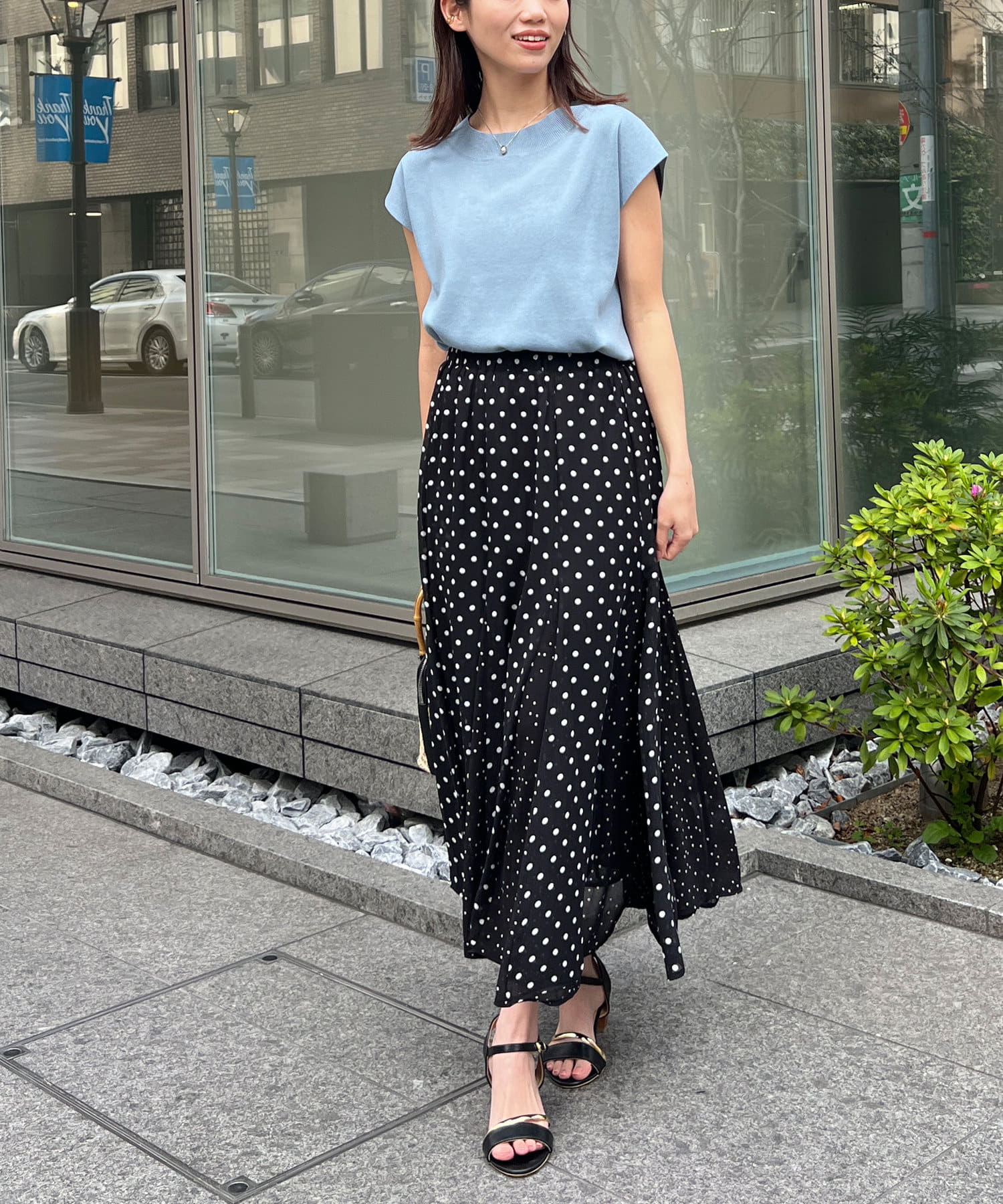 大胆な総柄スカートですが、シルエットはシンプルなのでサマーニットやTシャツ、ブラウスなどどんなアイテムとも好相性◎