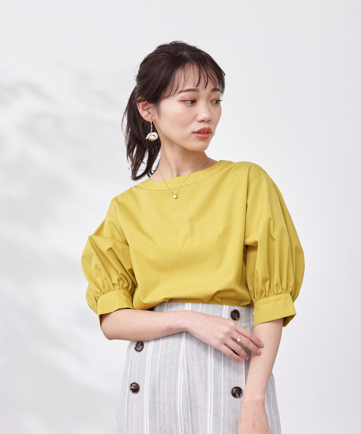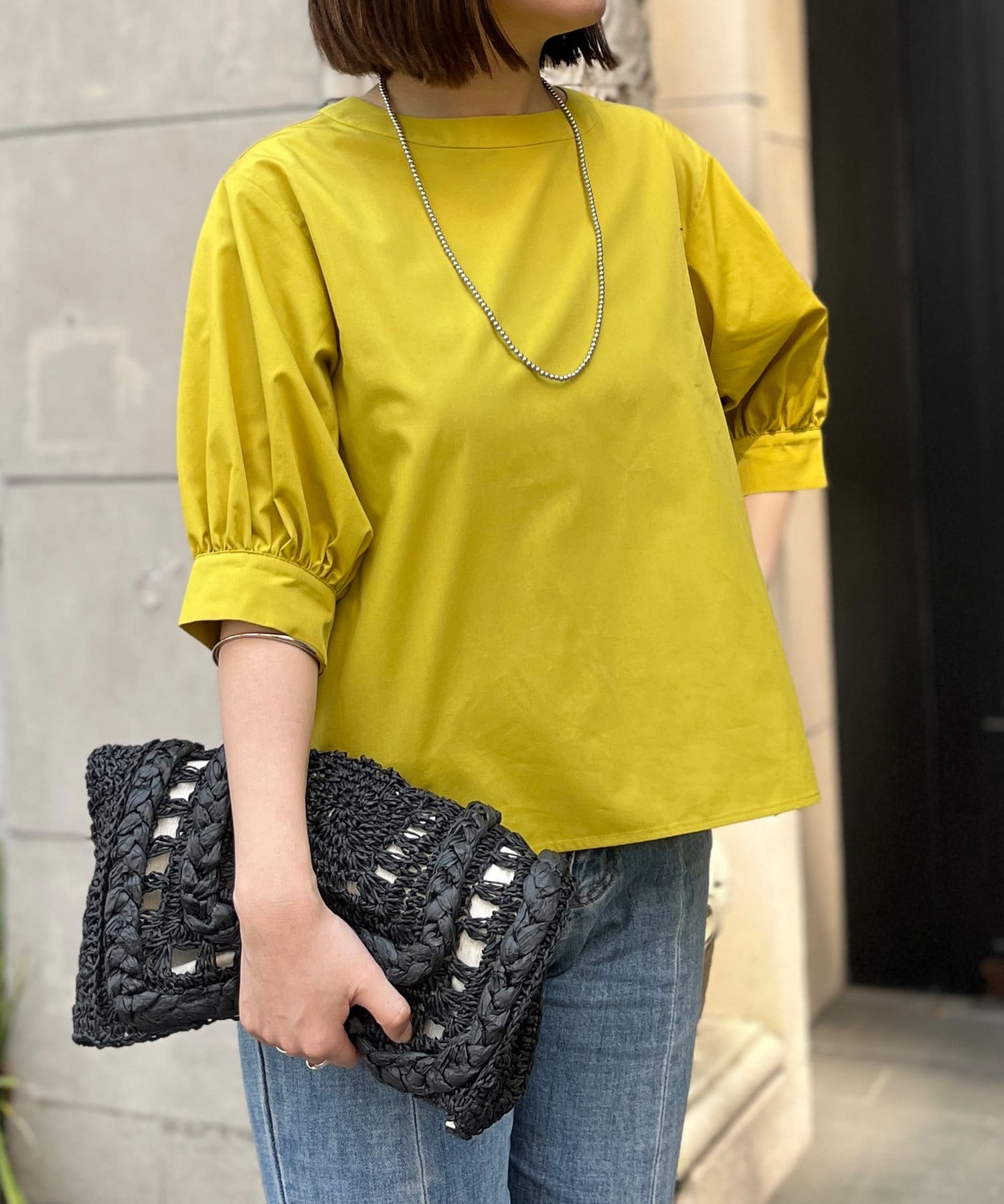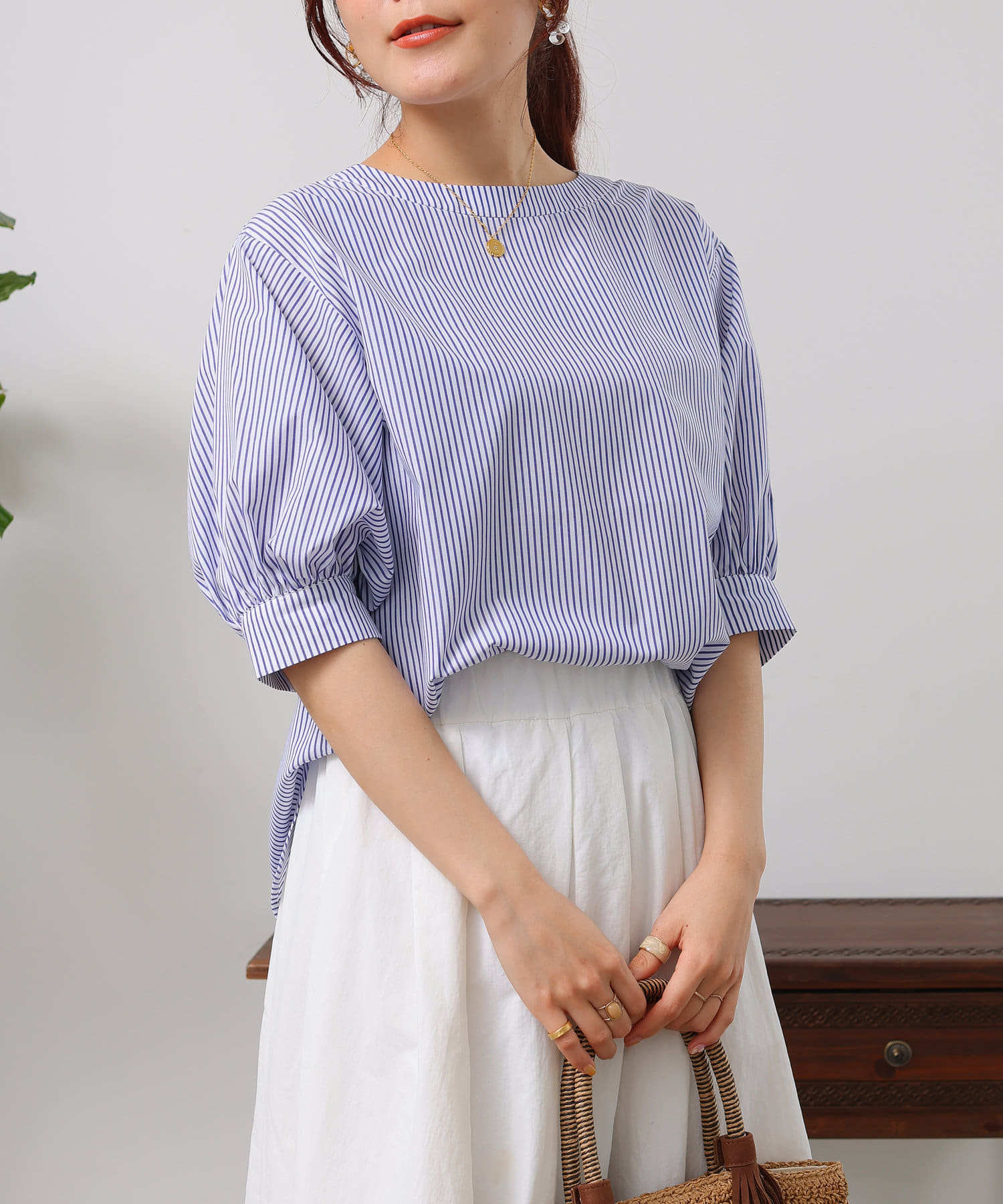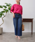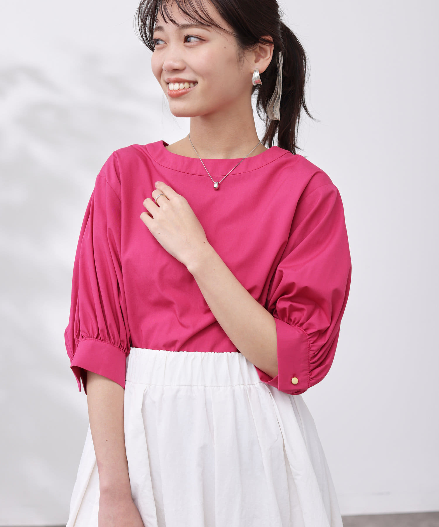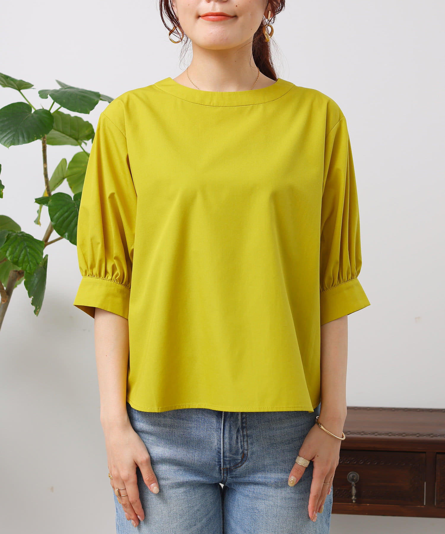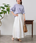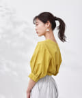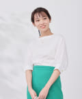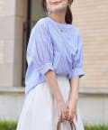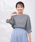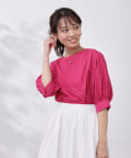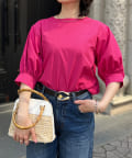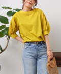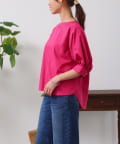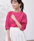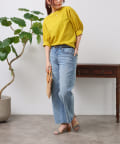 清涼感のある綿素材と5分袖のボリューム感がトレンドライクな1枚