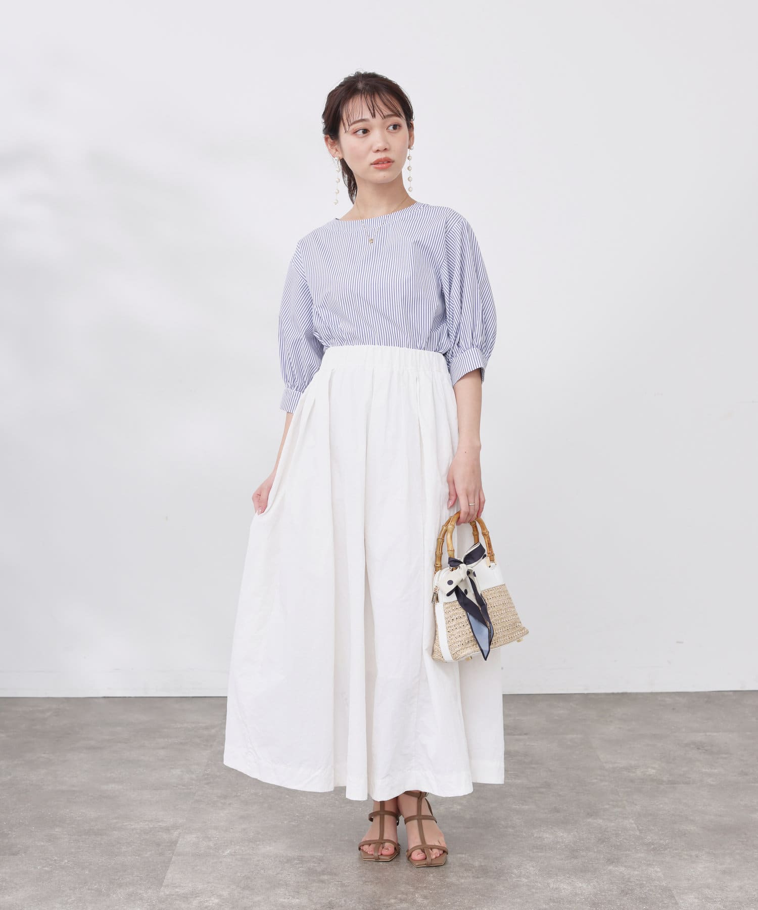 ウエストインして、フレアスカートで女性らしい品のあるコーディネートがぴったり!