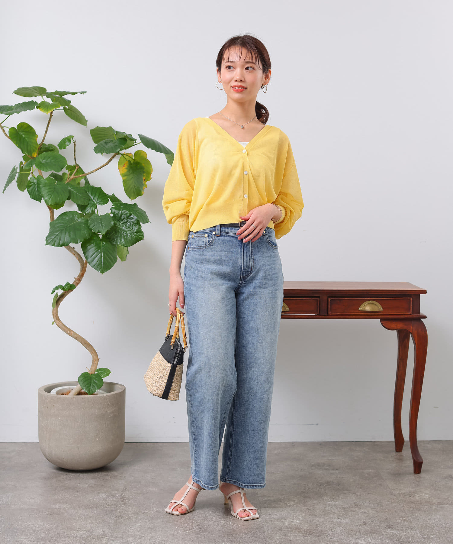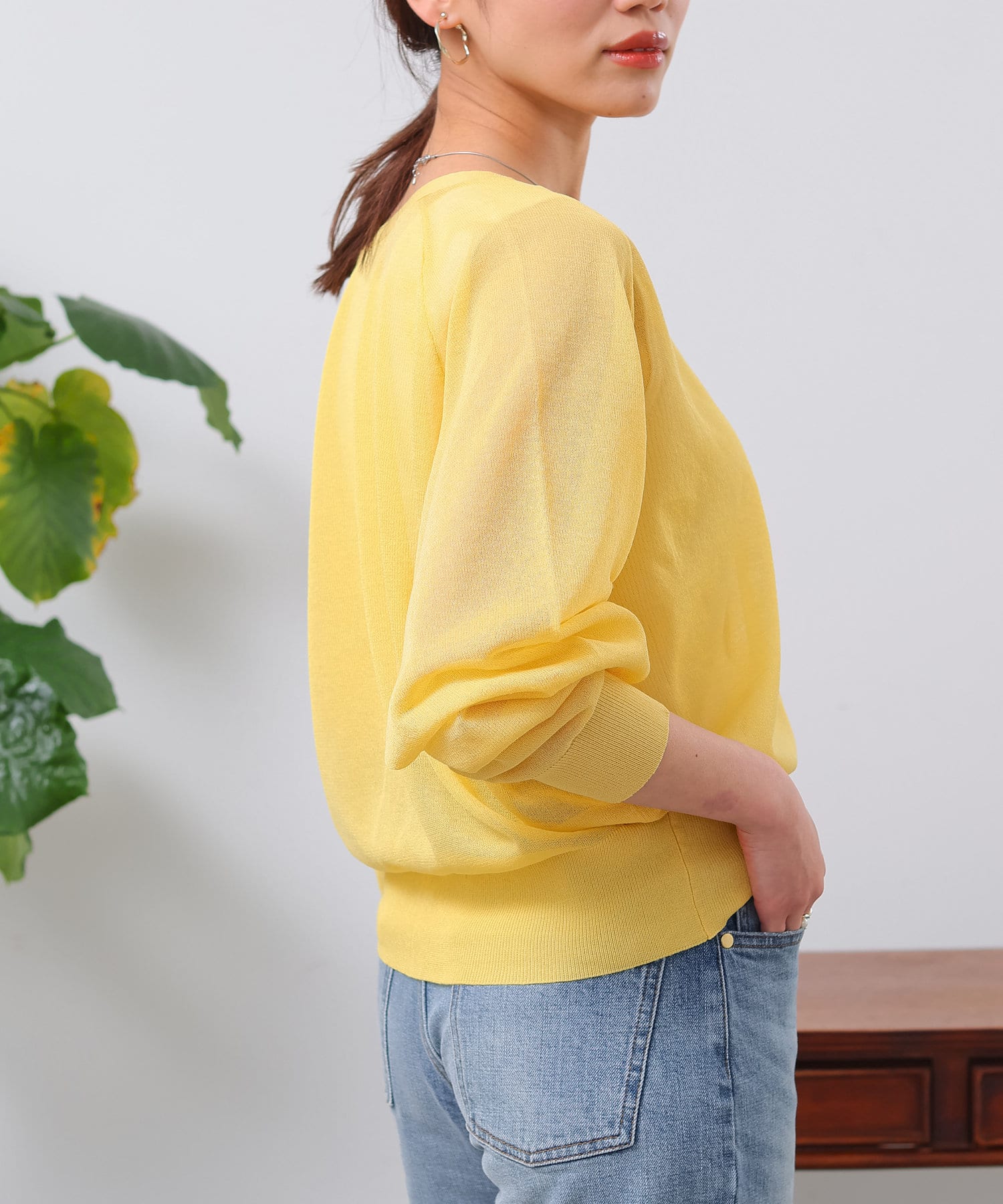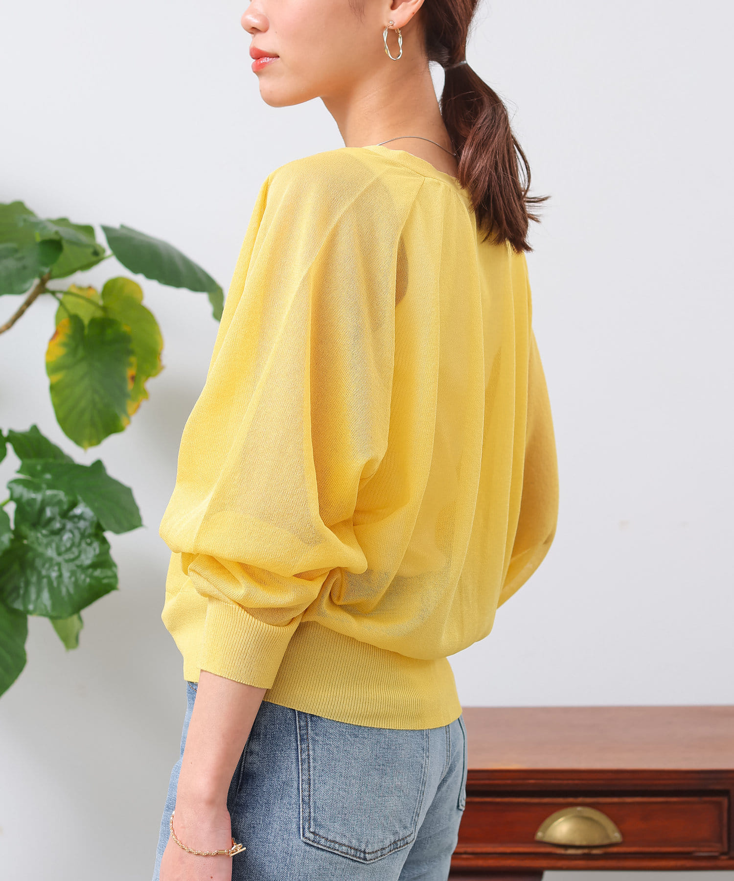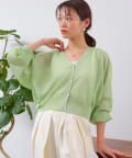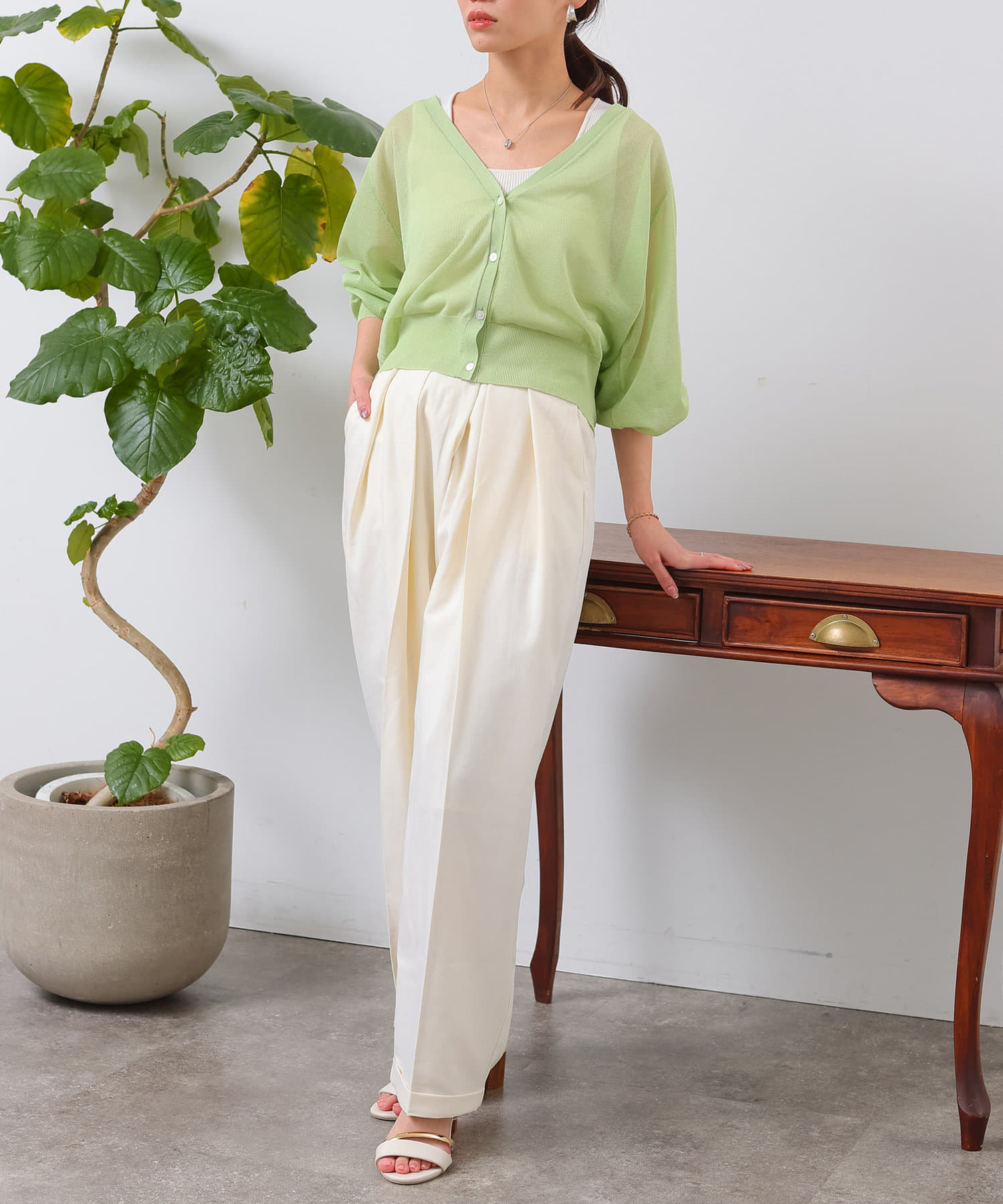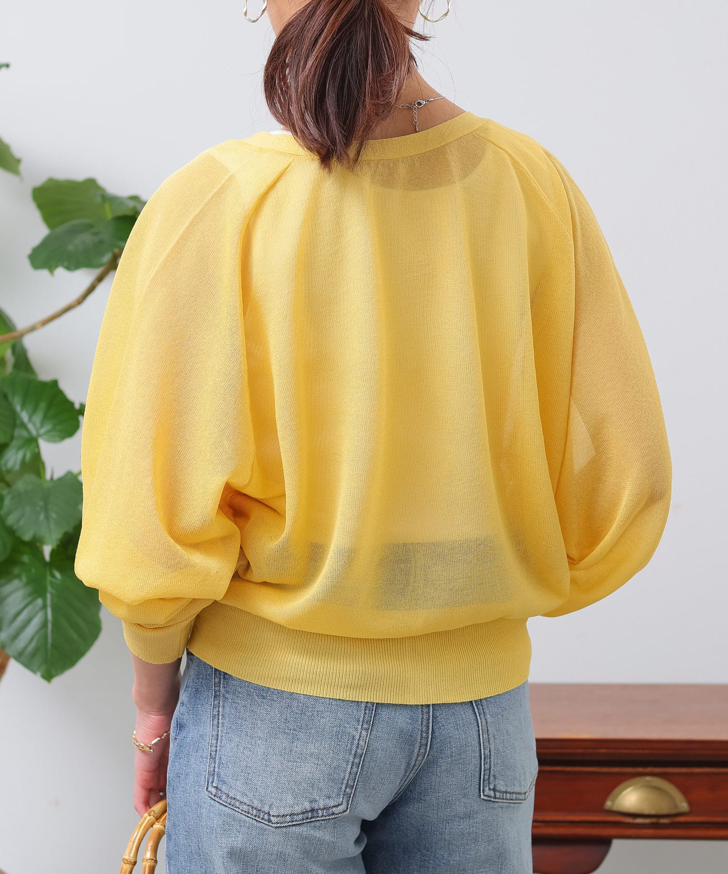 ゆったりとしたサイズ感と鮮やかなカラーが目を惹くシアーカーディガン。